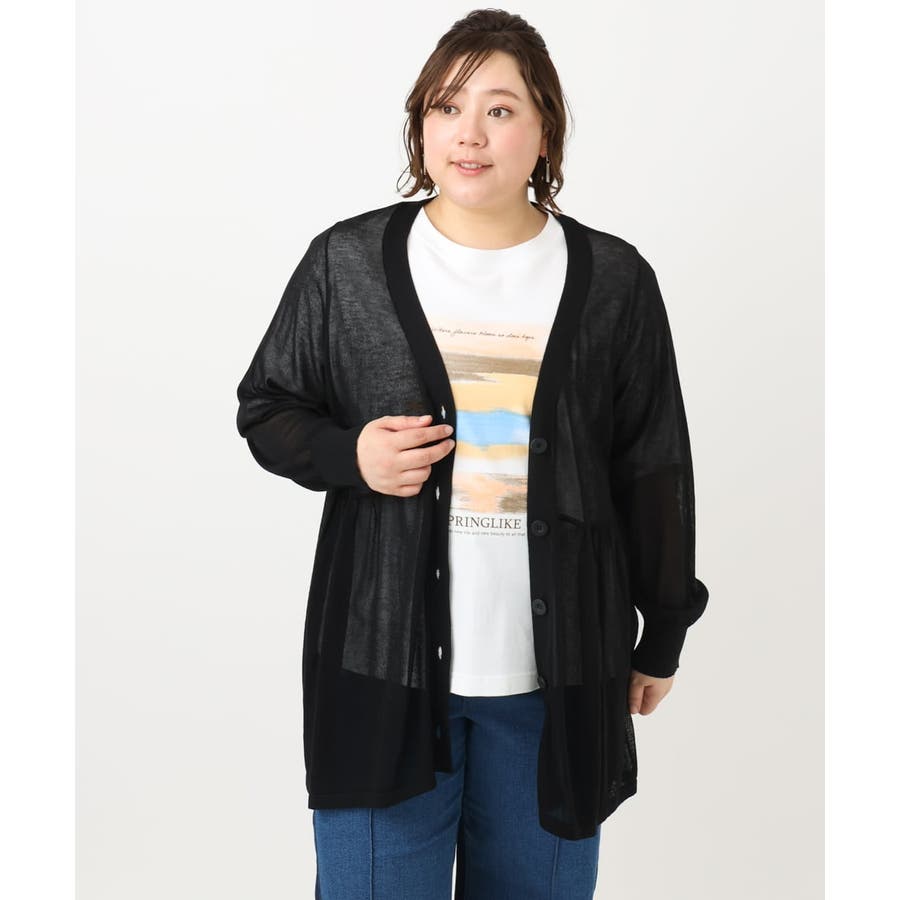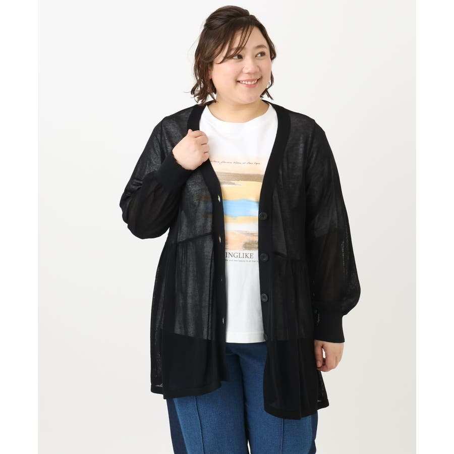 【大きいサイズ】シアーペプラムカーディガン