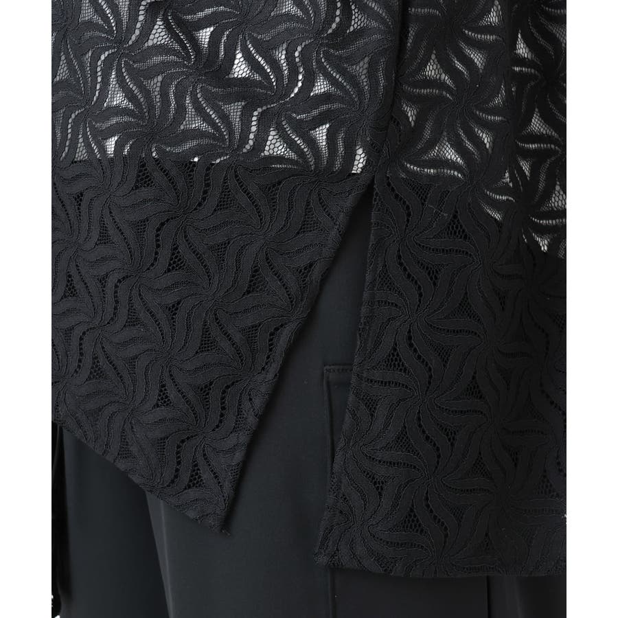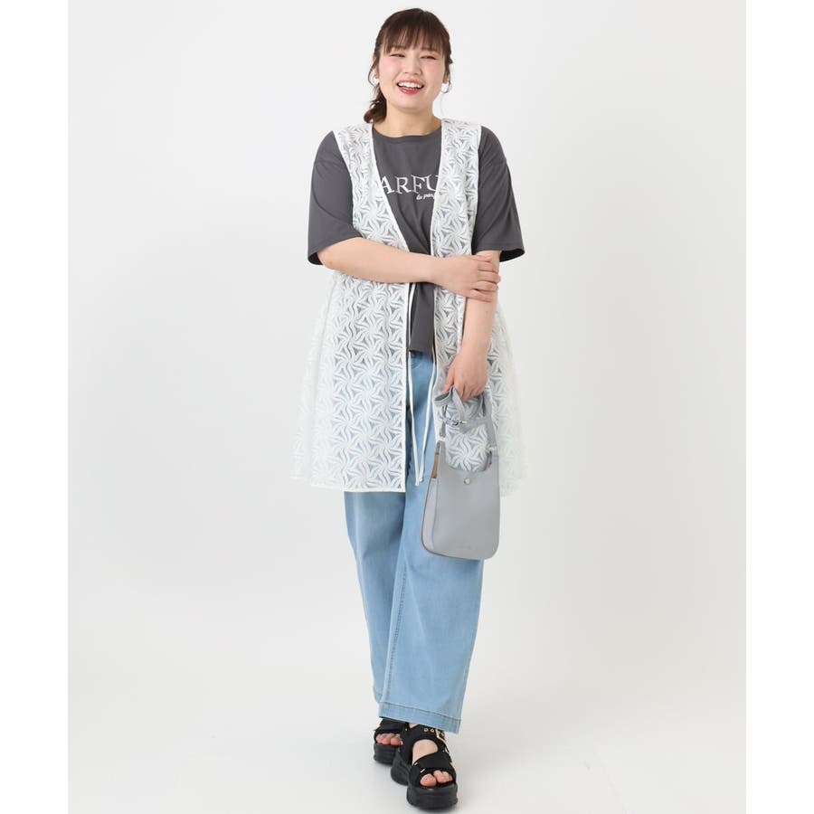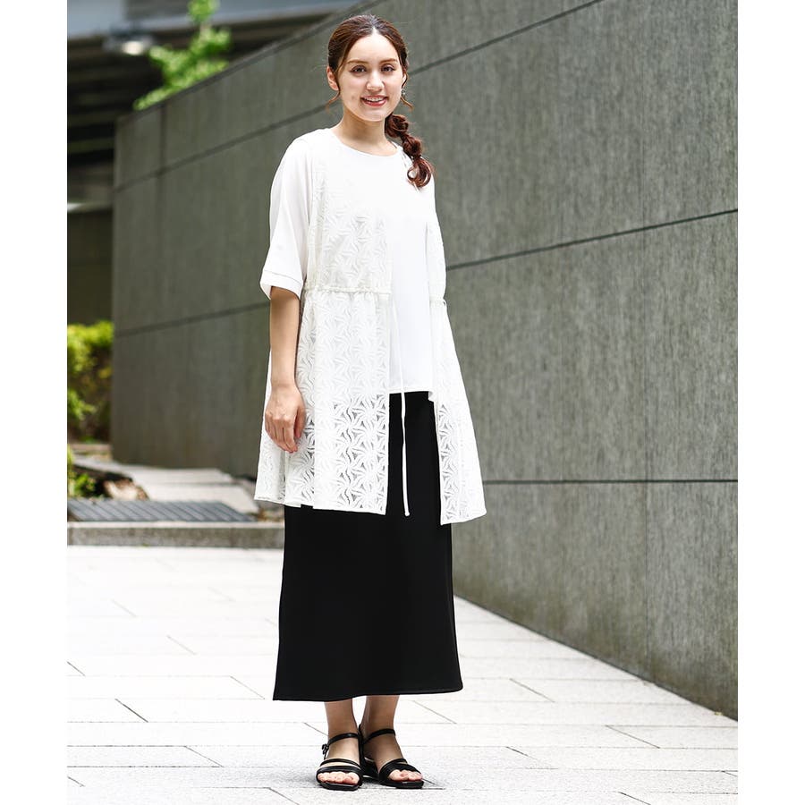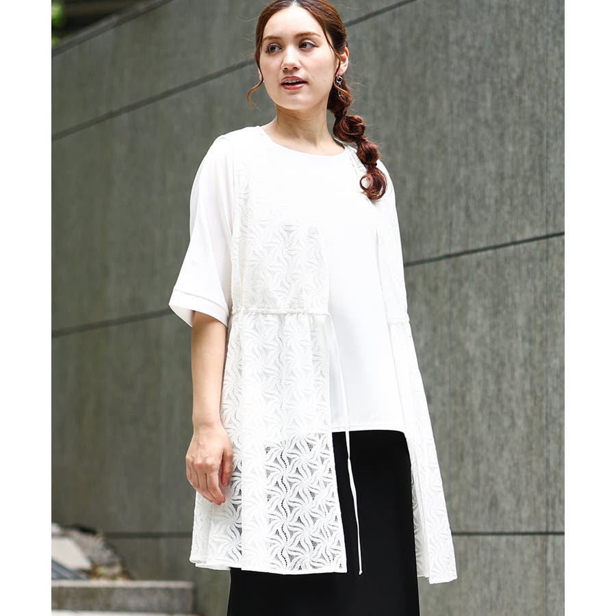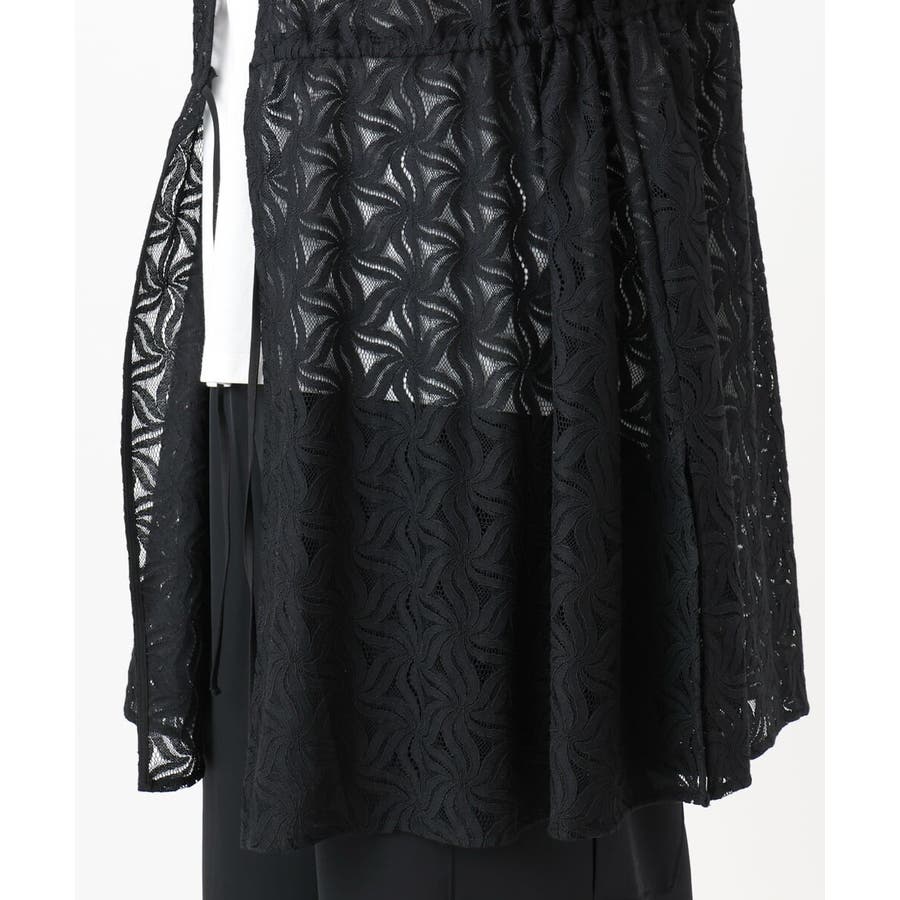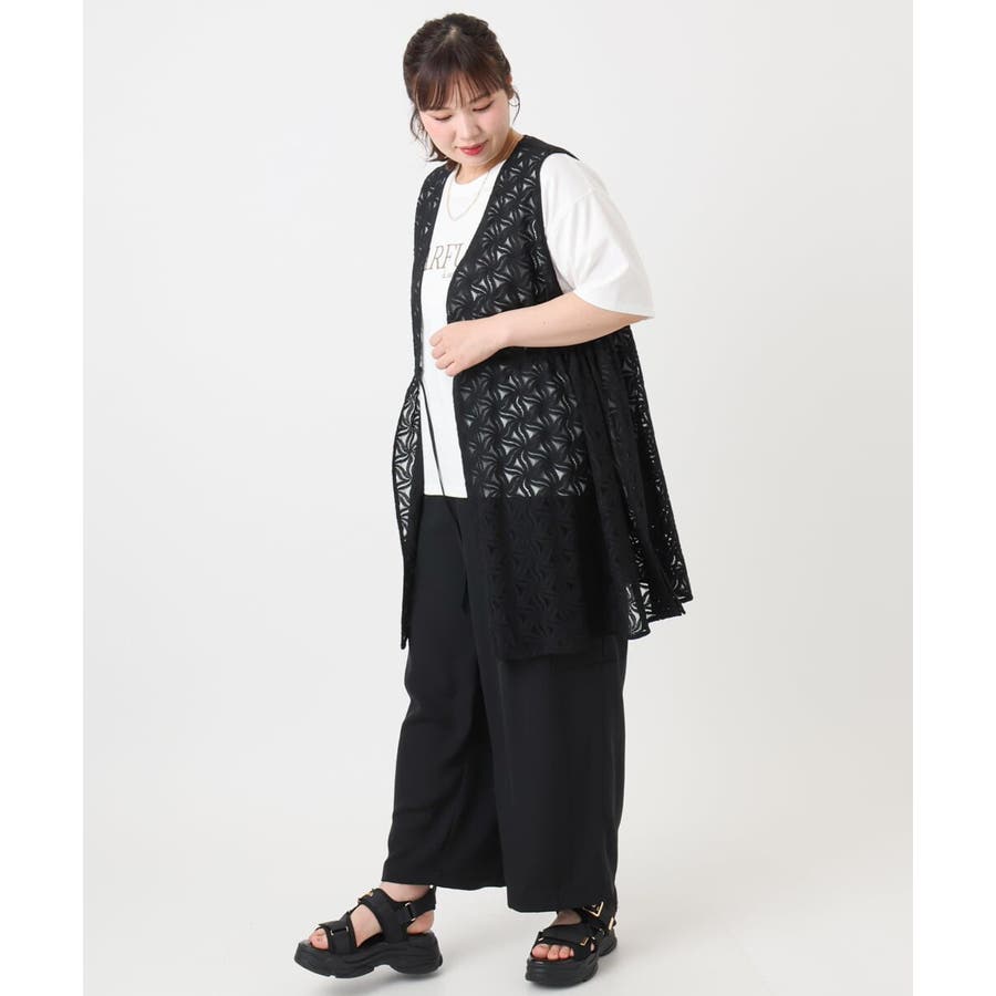 トレンドのレース生地を使用した長め丈のジレ。