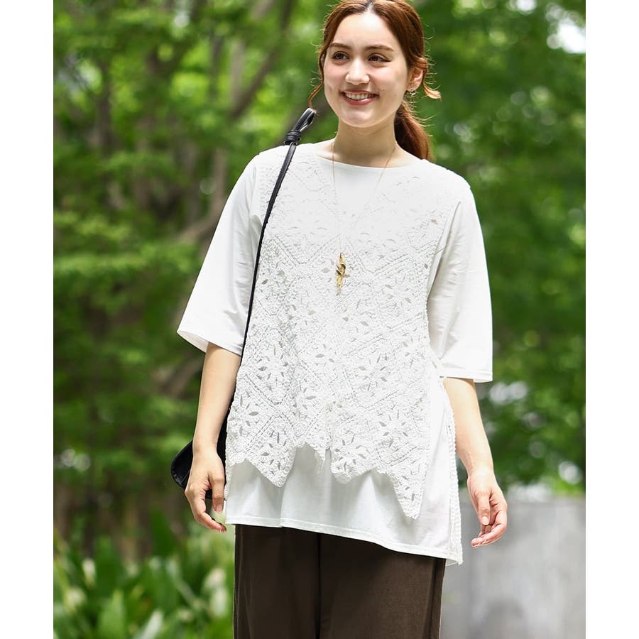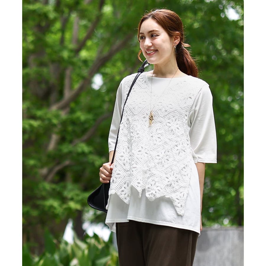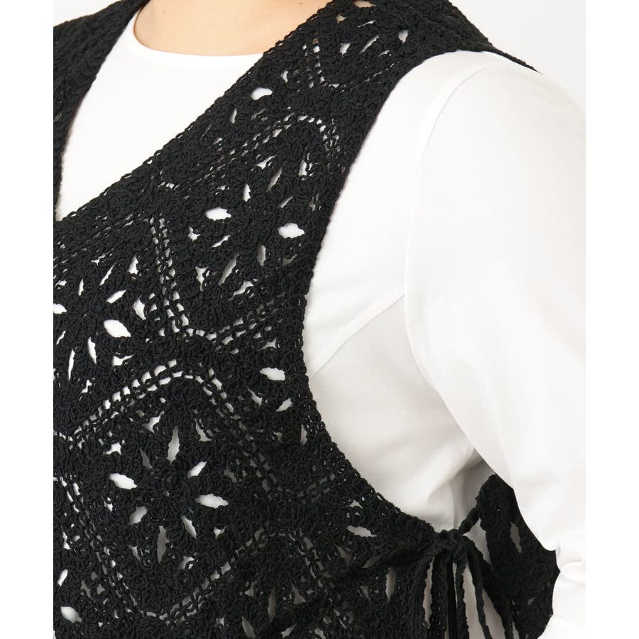 ハンドクラフトなテクニックがかわいいクロシェ風のベスト。