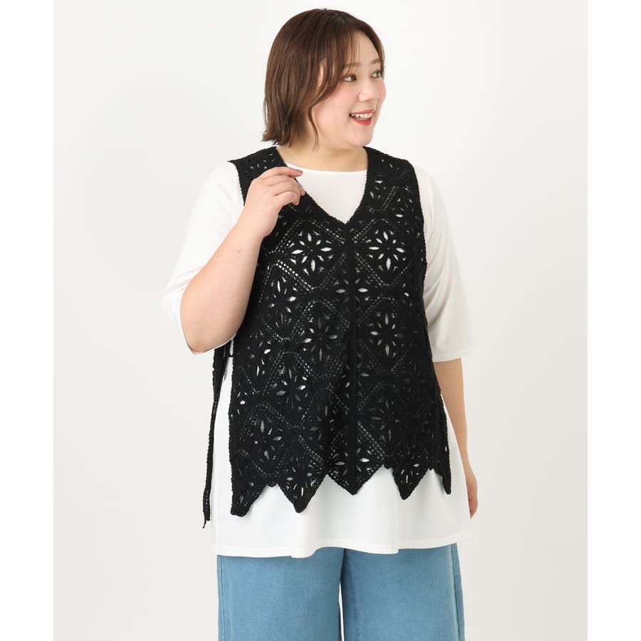 【大きいサイズ】クロシェ風ベスト