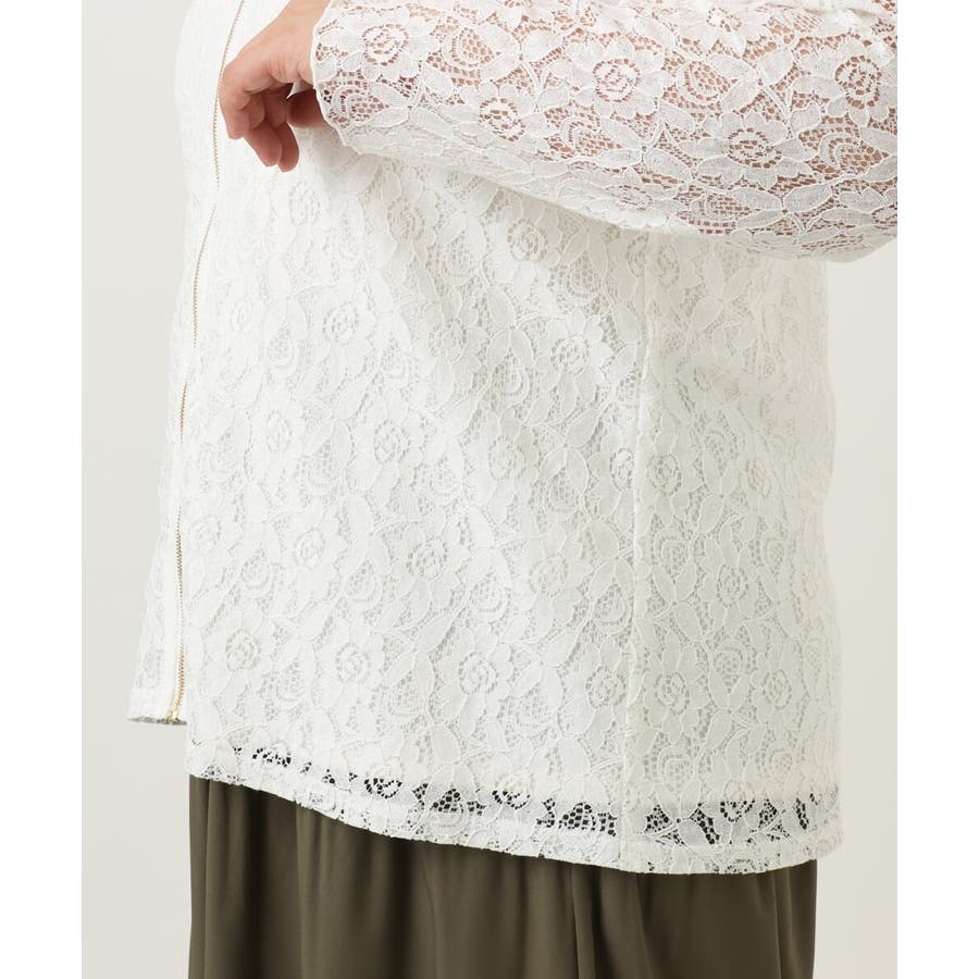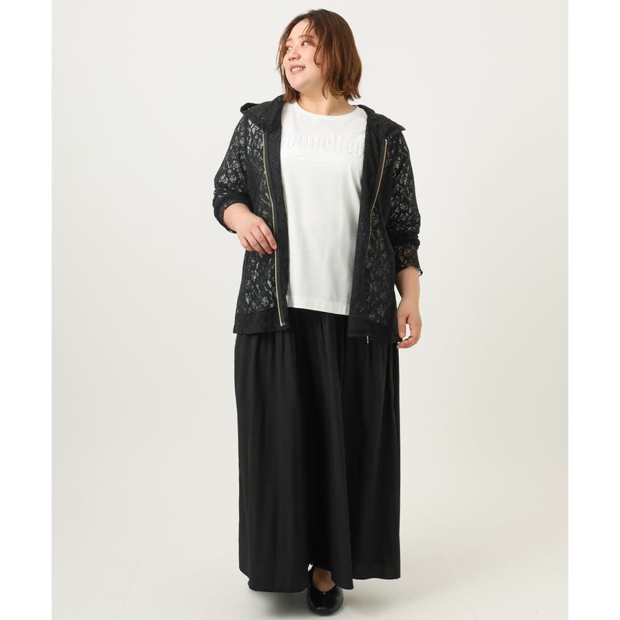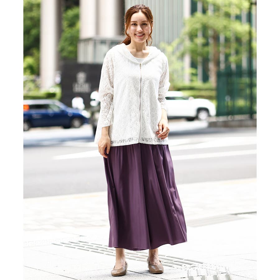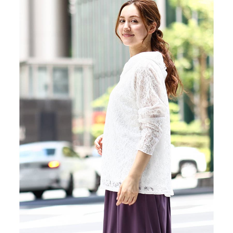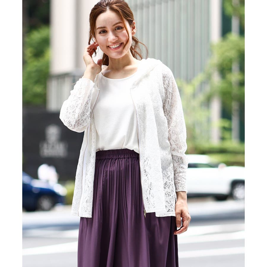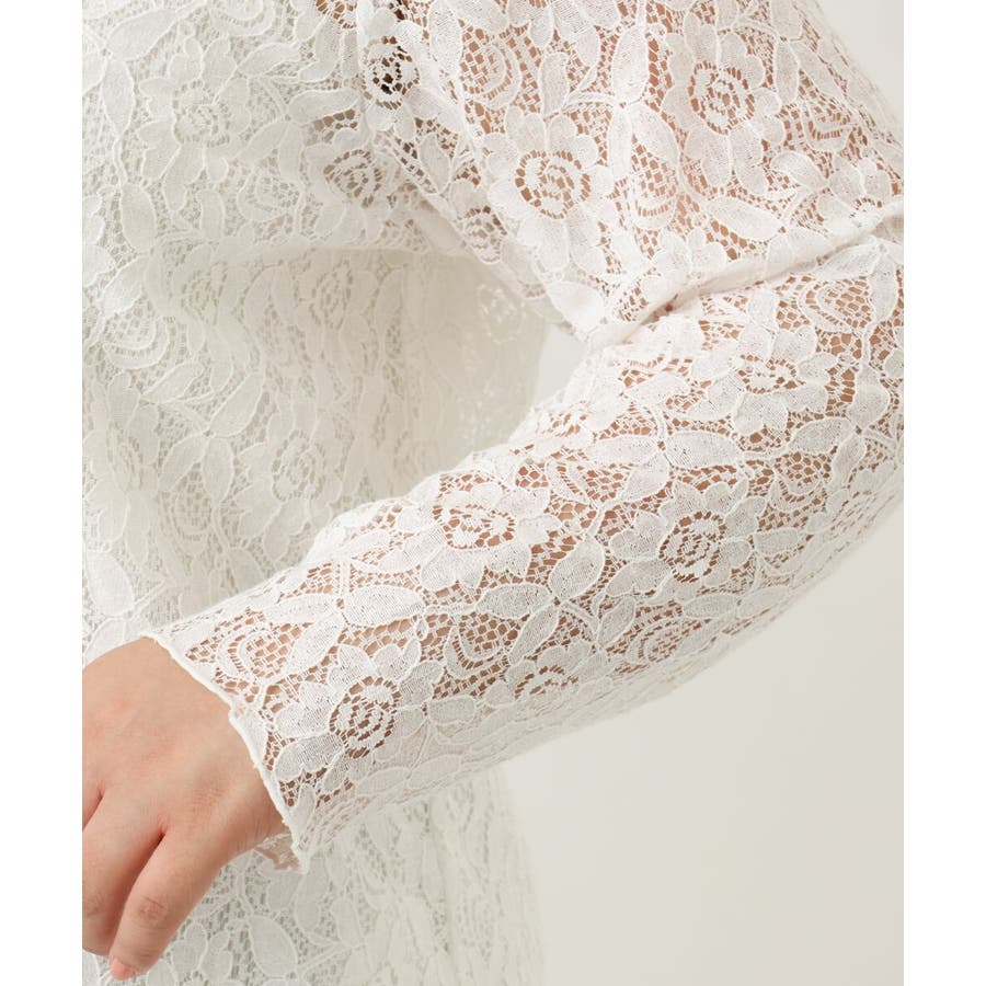 フラワーモチーフのレースが大人可愛いく、袖口がメロウ仕様になっているのもカジュアルになりすぎないポイント。