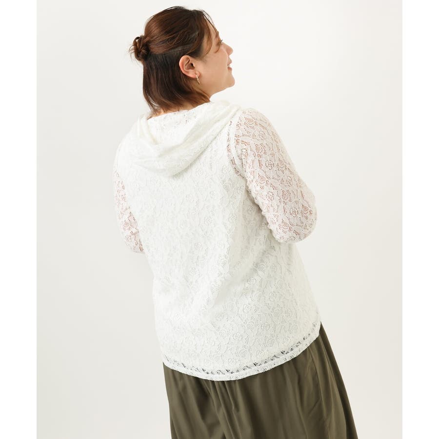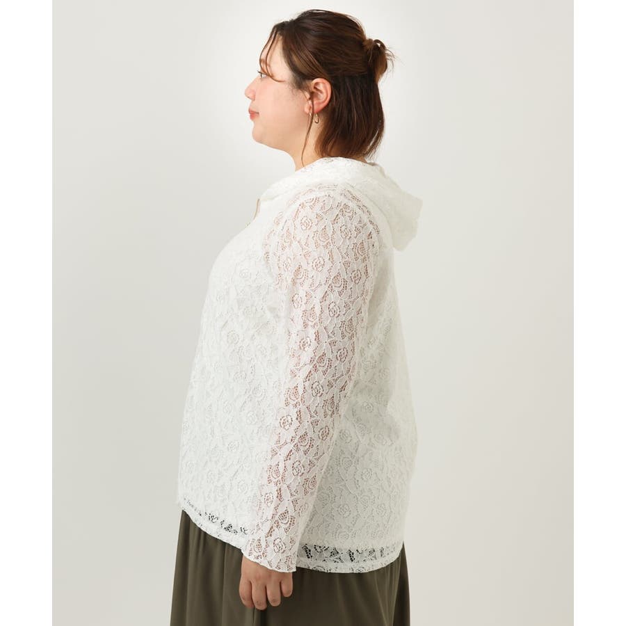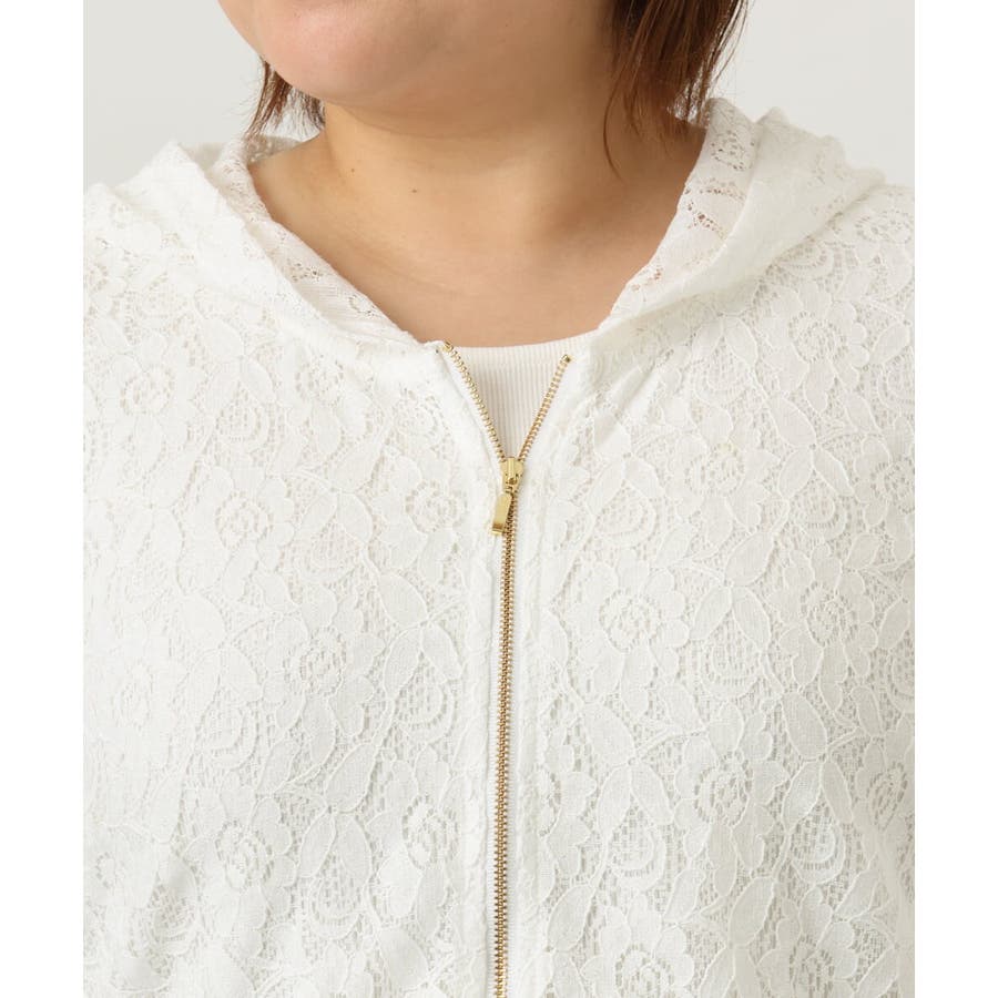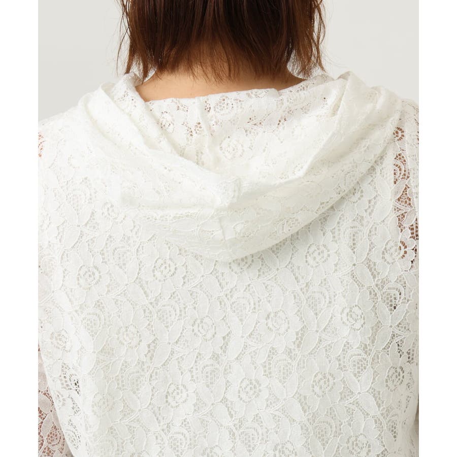 柔らかな綿混素材のレースを使用したフード付き羽織。