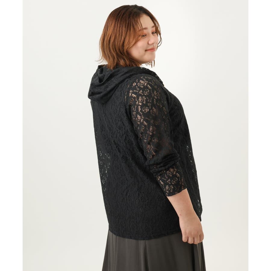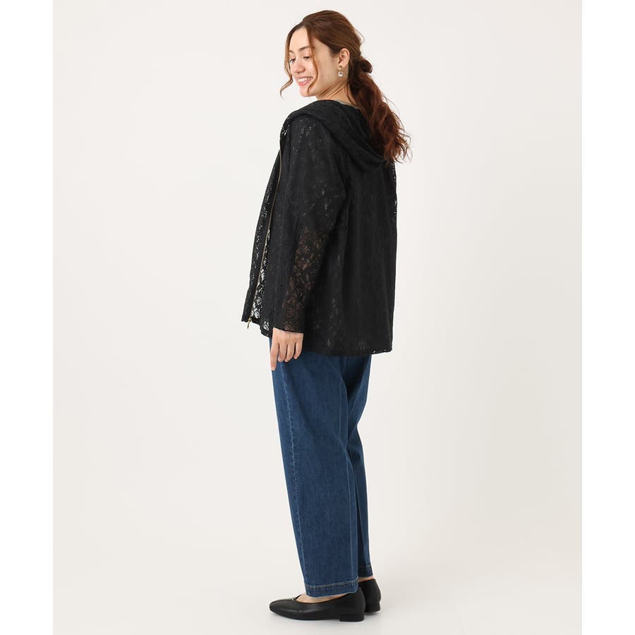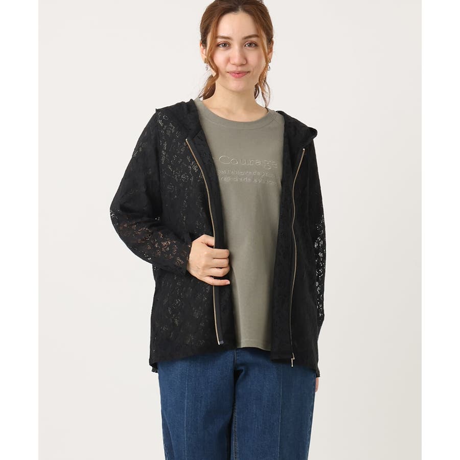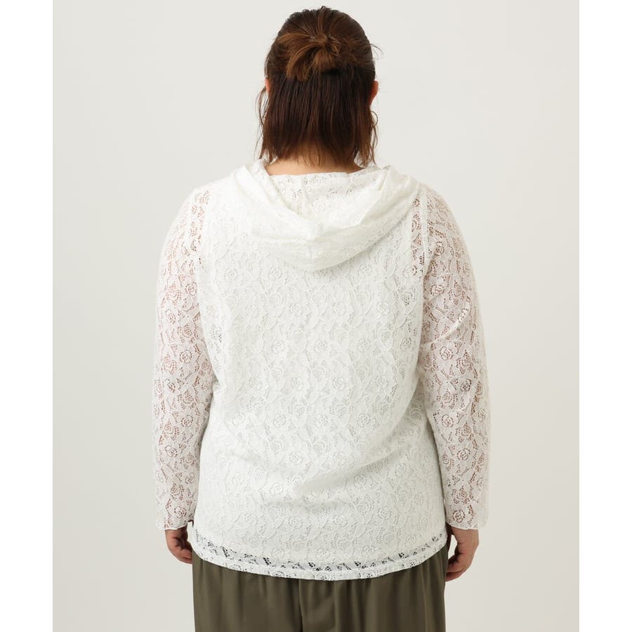 柔らかな綿混素材のレースを使用したフード付き羽織。