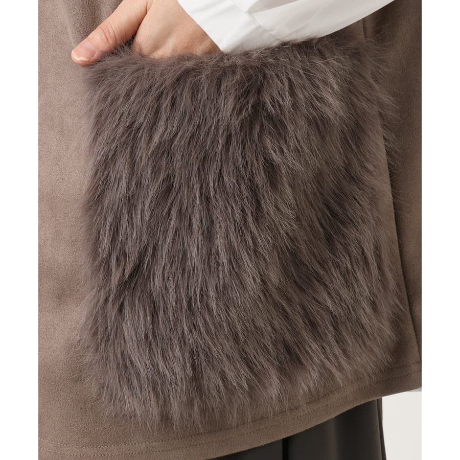 毛足の長いフェイクファーをポケットに使用しています。