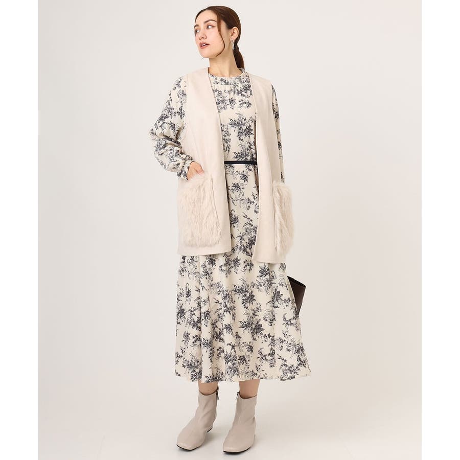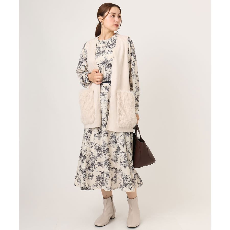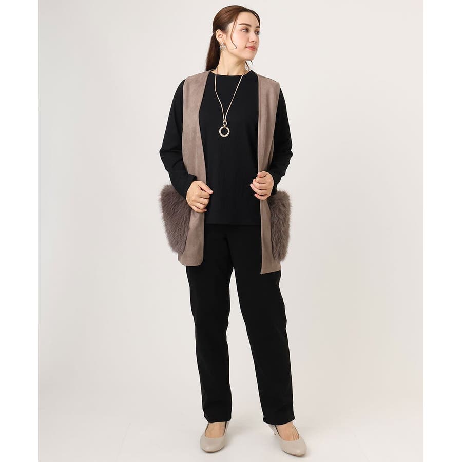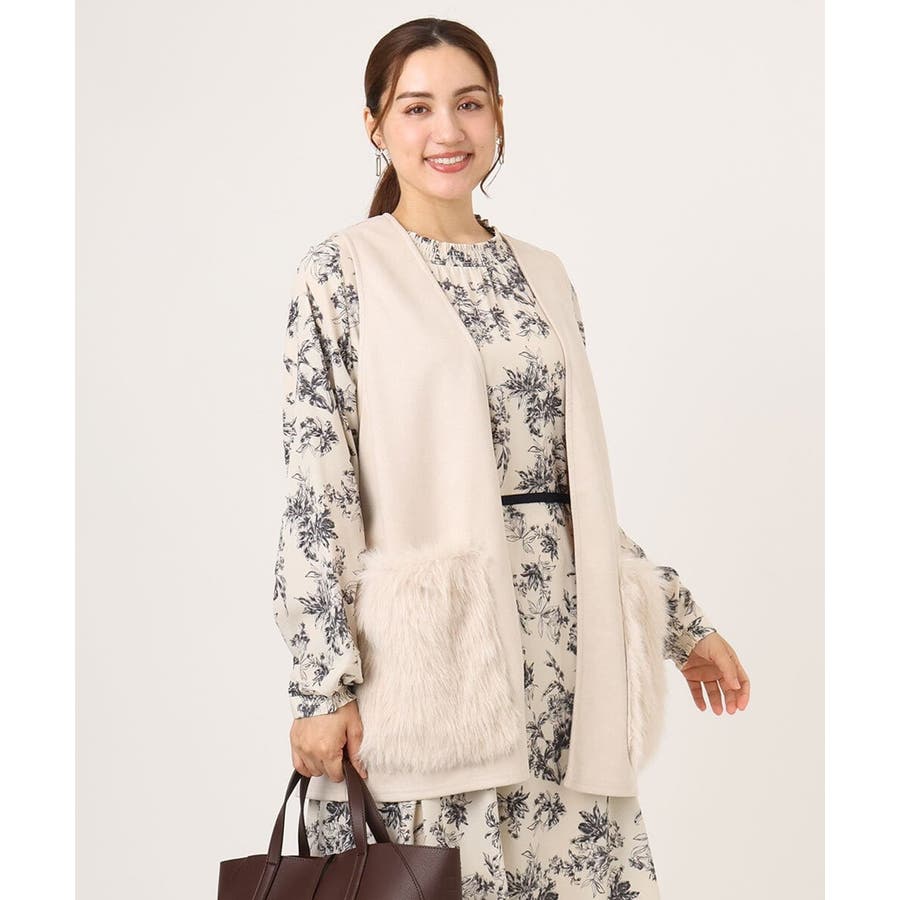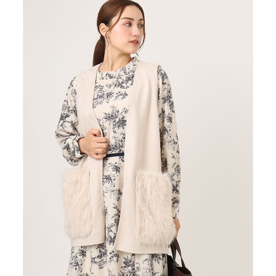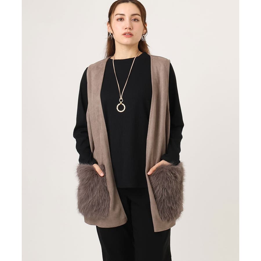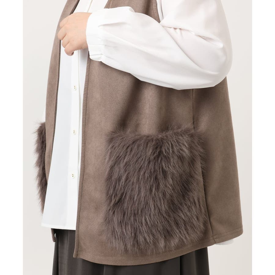 トレンドのファー生地を部分使いしたベスト。