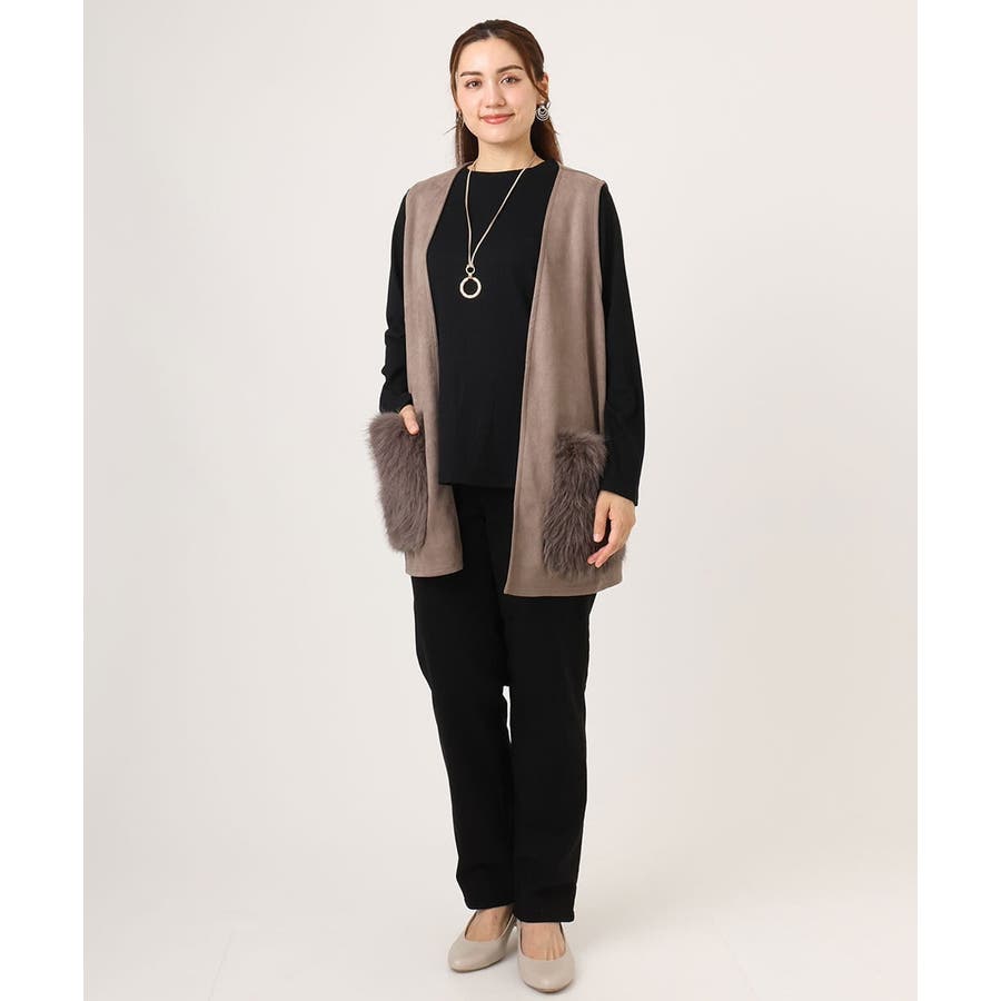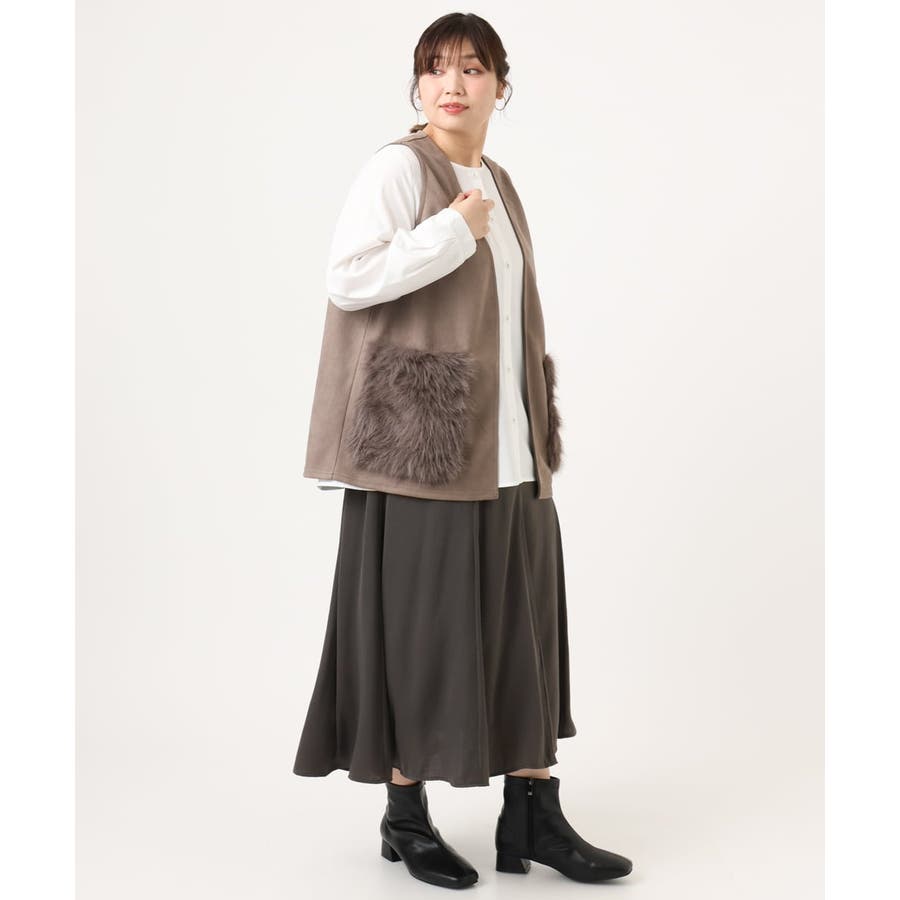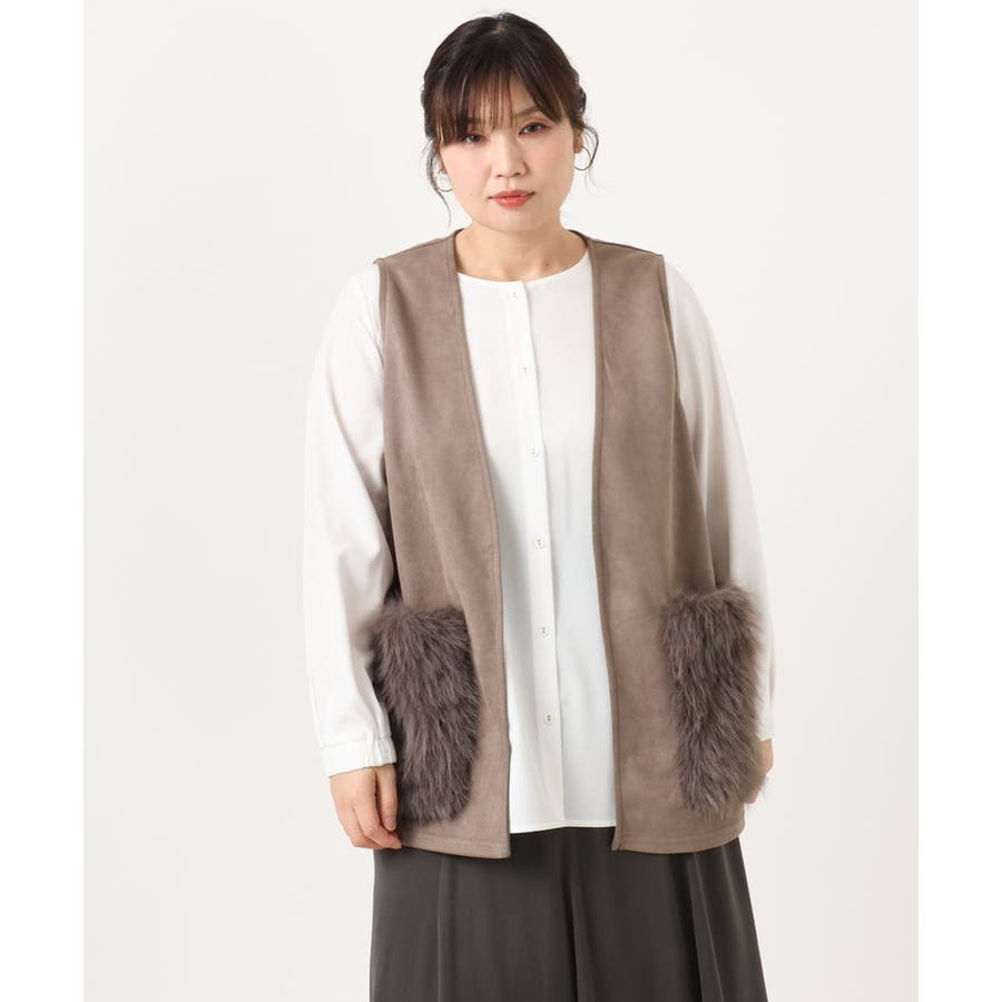 【大きいサイズ】ファーポケットベスト