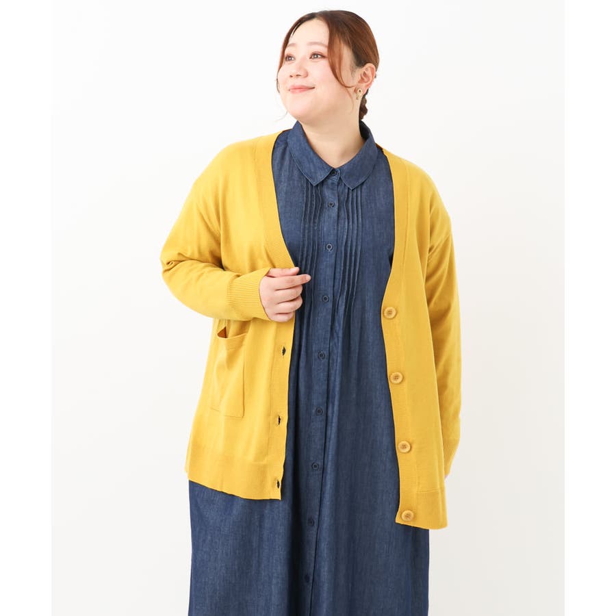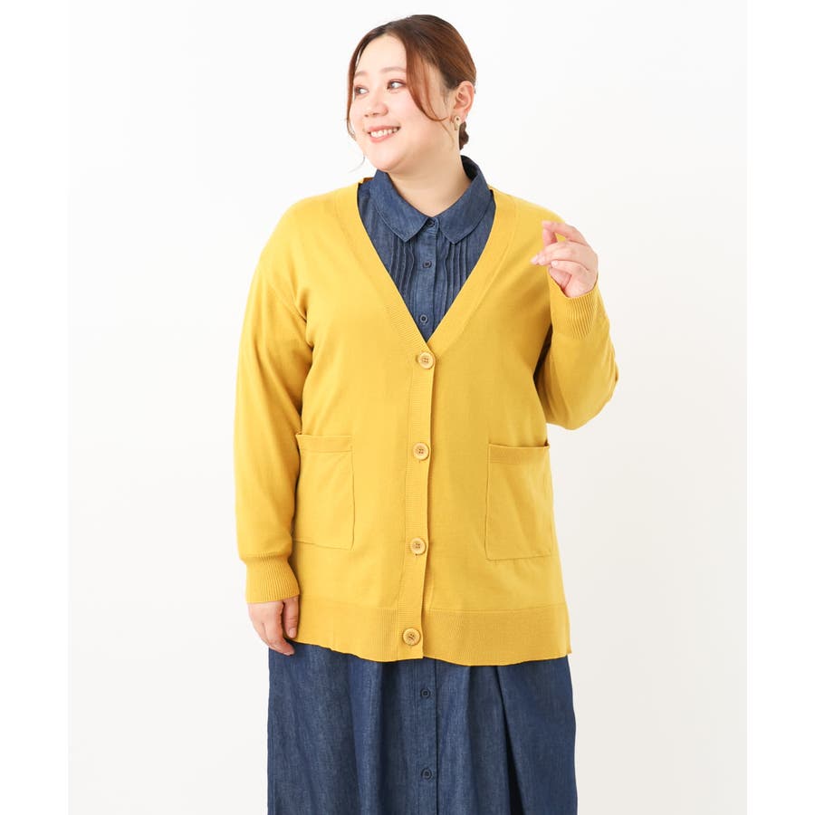 【大きいサイズ】Vネックドロップショルダーカーディガン