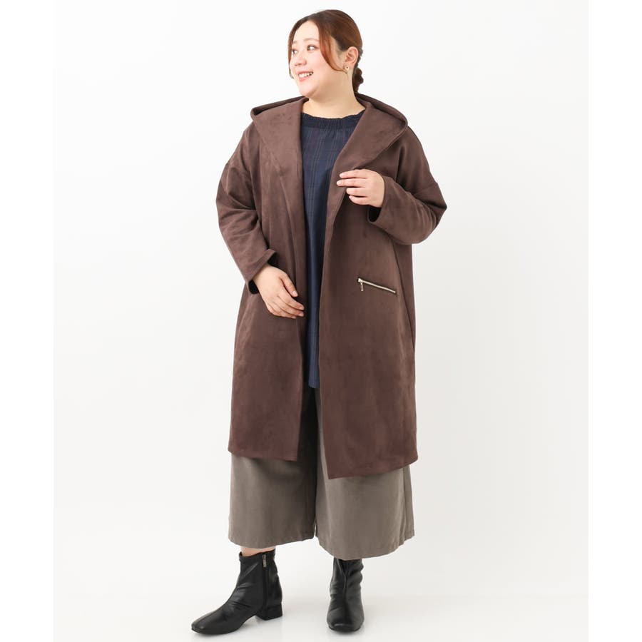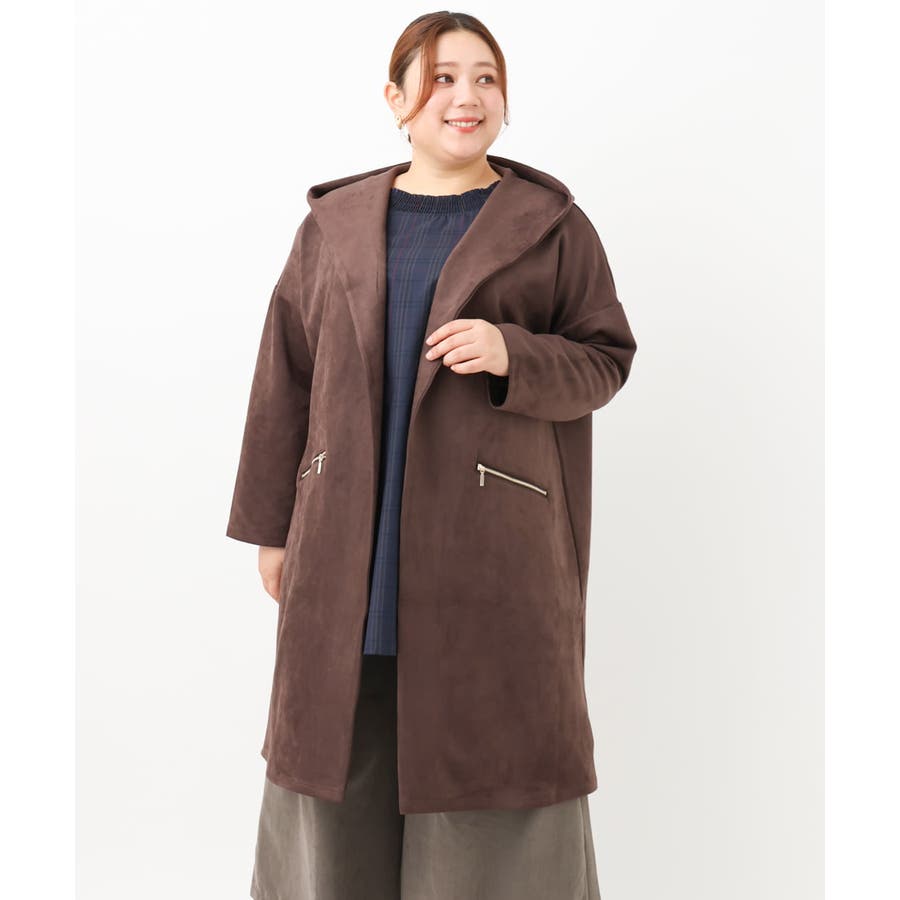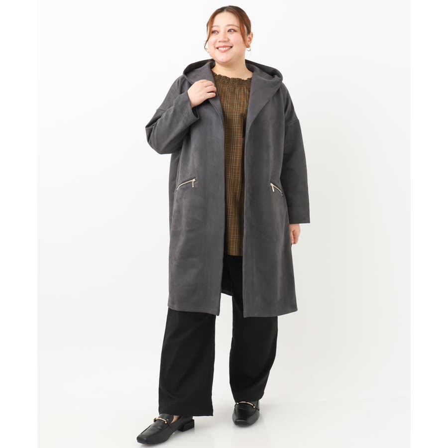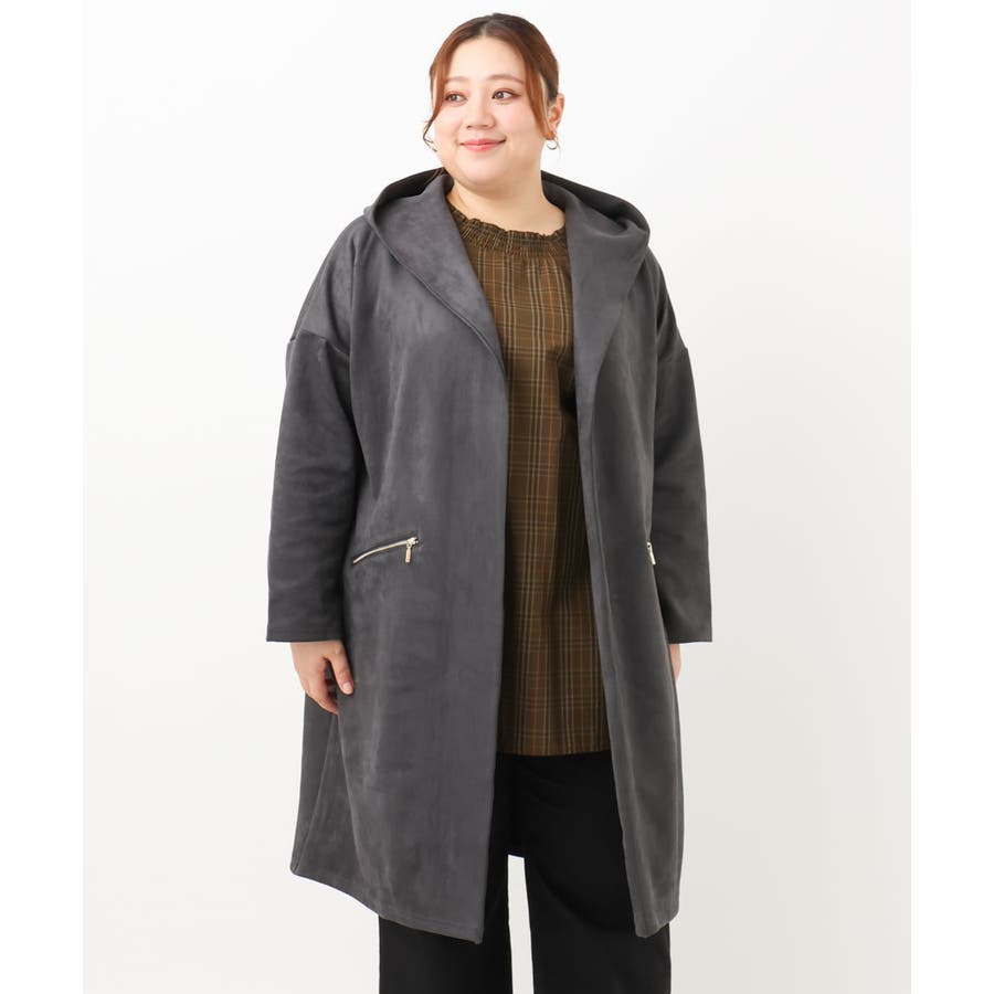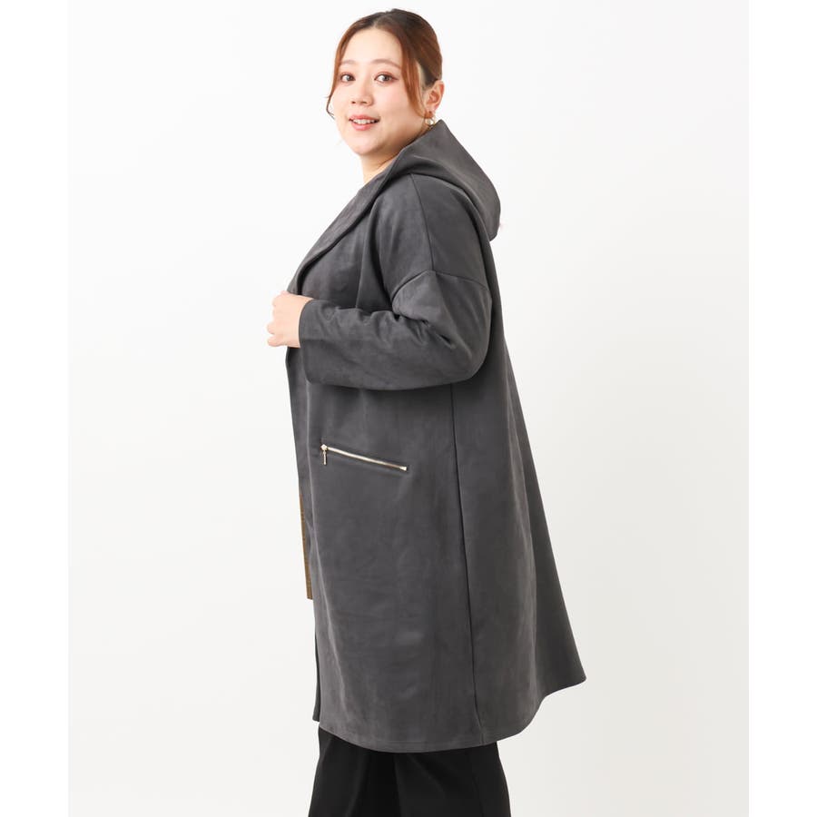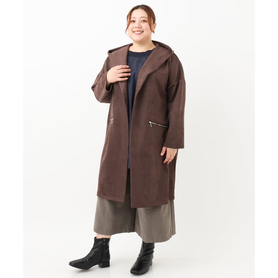 【大きいサイズ】スウェードポンチフーディーロングアウター