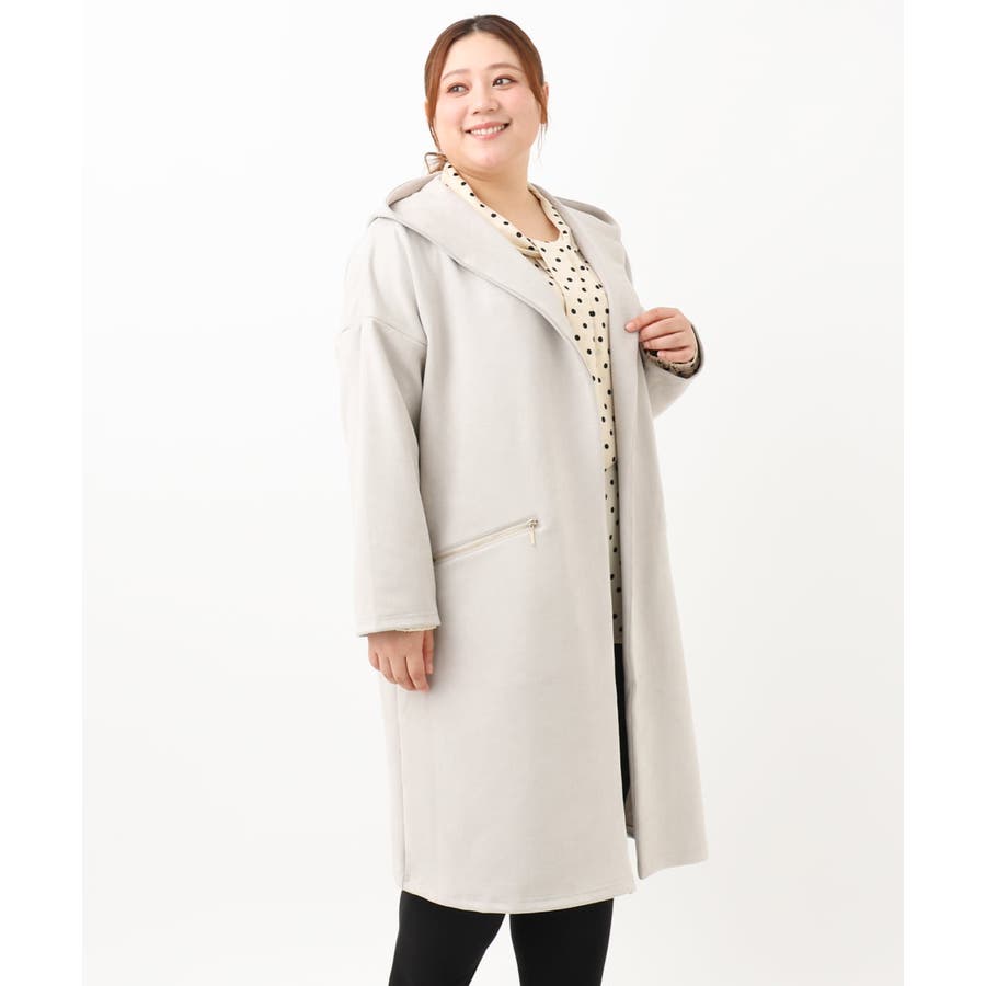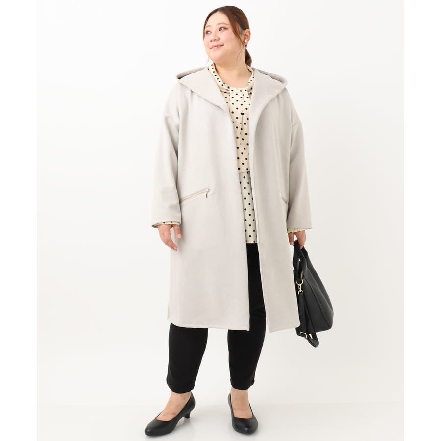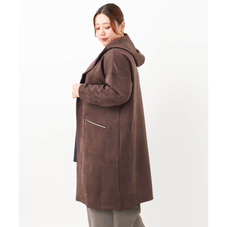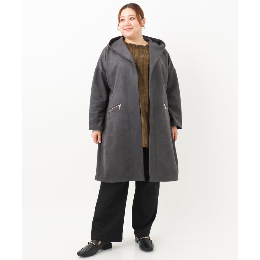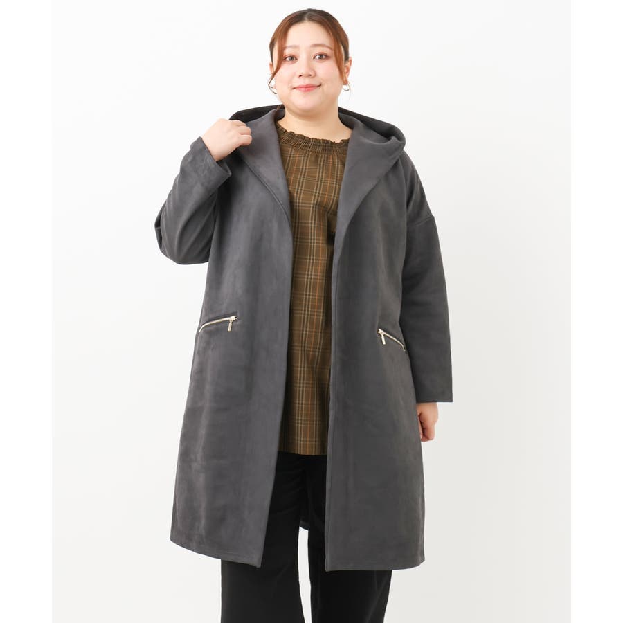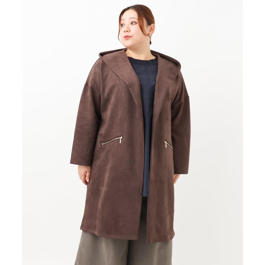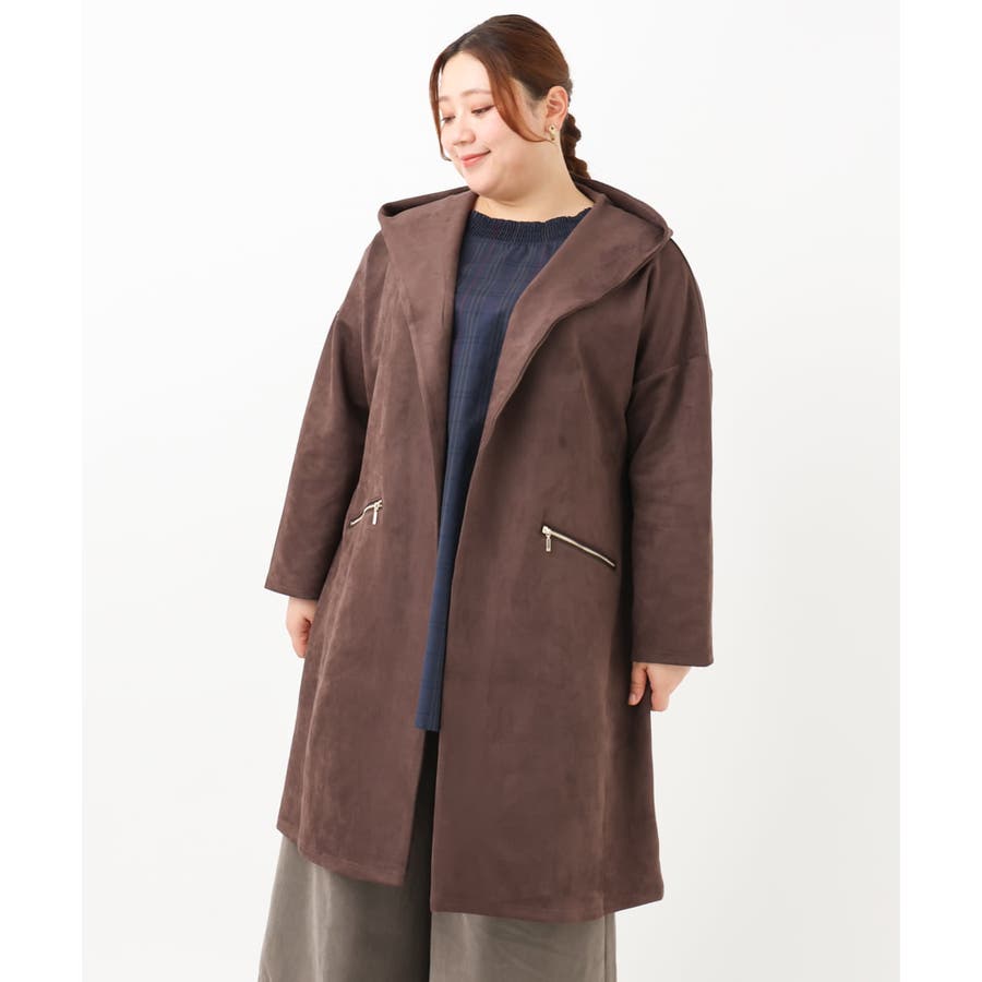 【大きいサイズ】スウェードポンチフーディーロングアウター