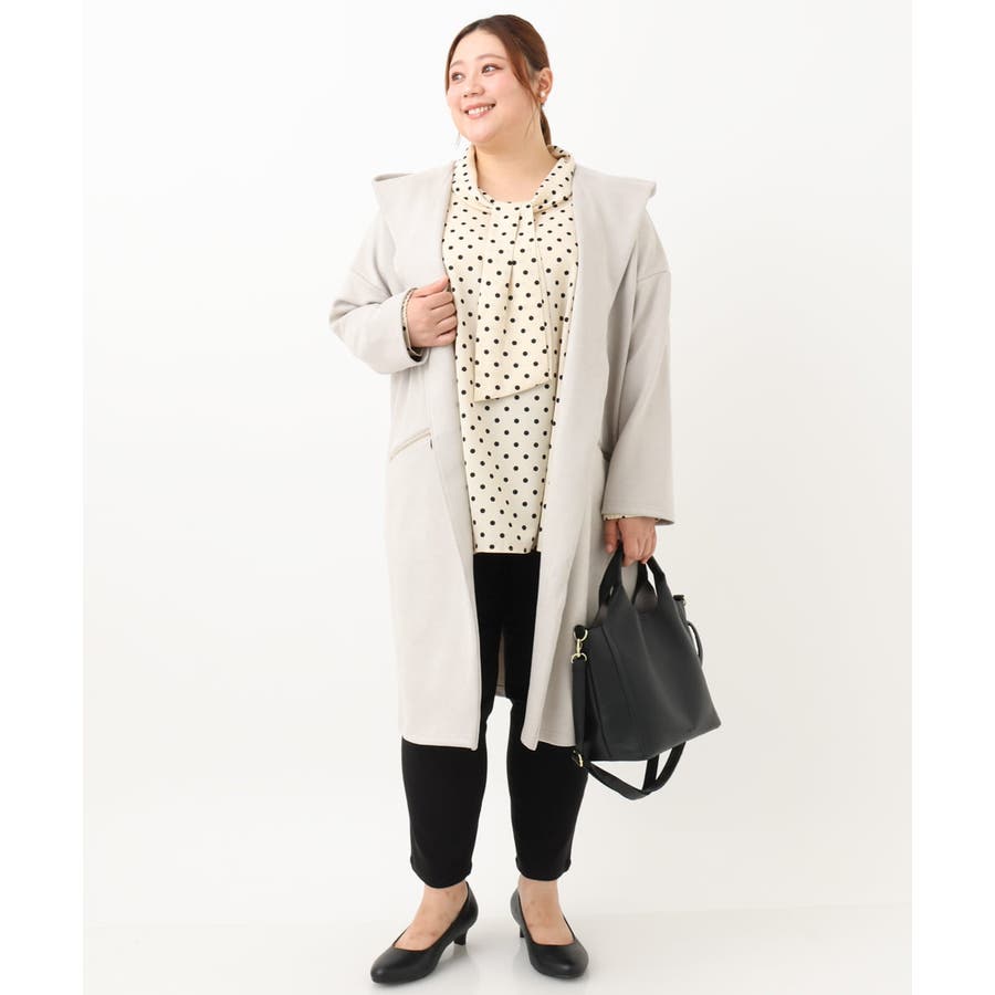 毎年大人気のフードデザインのきれいめな印象のロング羽織。