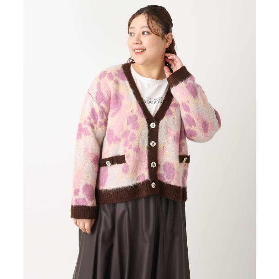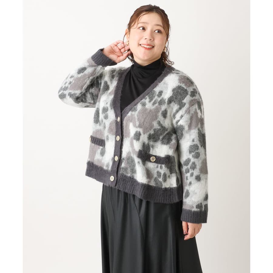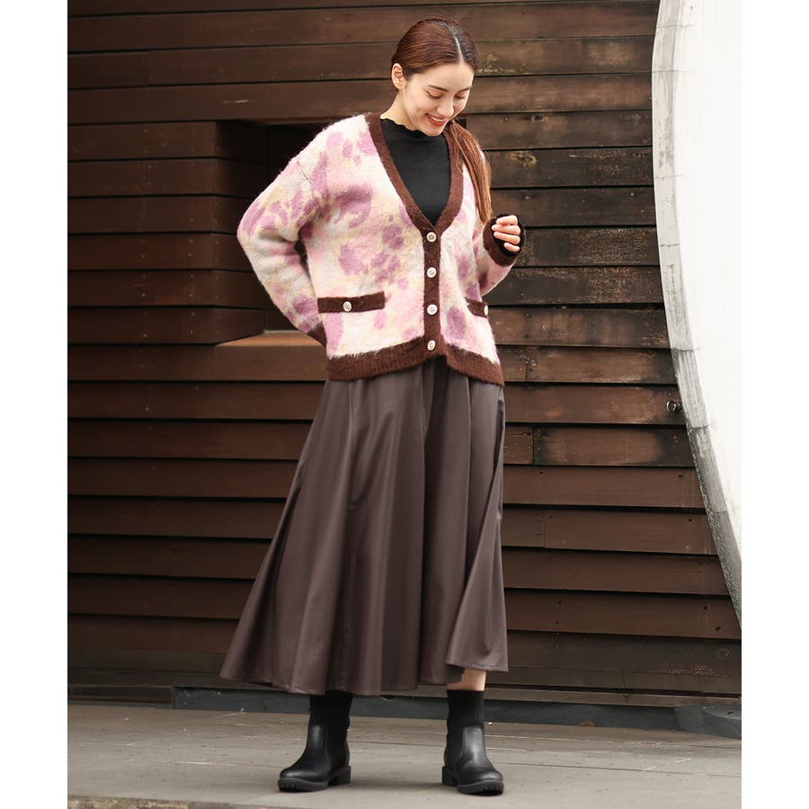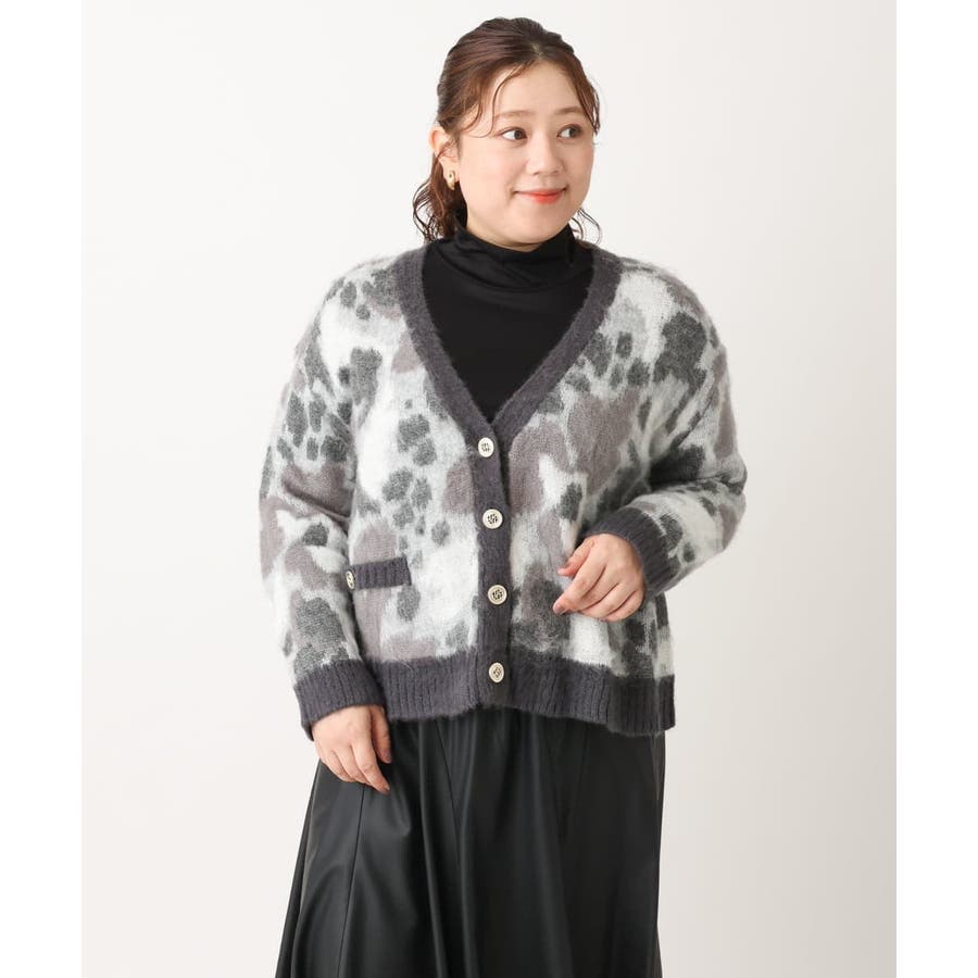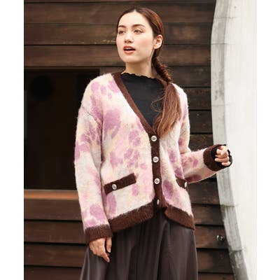 ・ふわふわで暖かくニュアンス柄が華やかなニットカーディガン