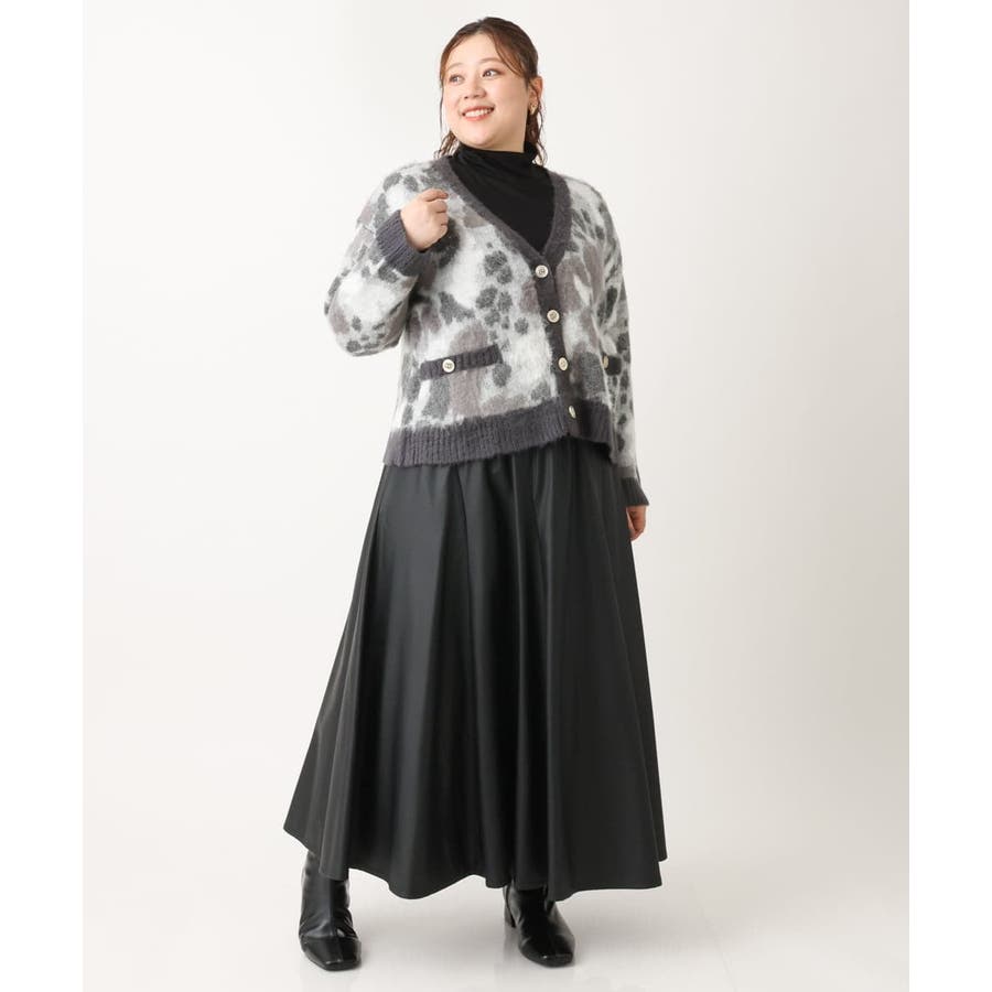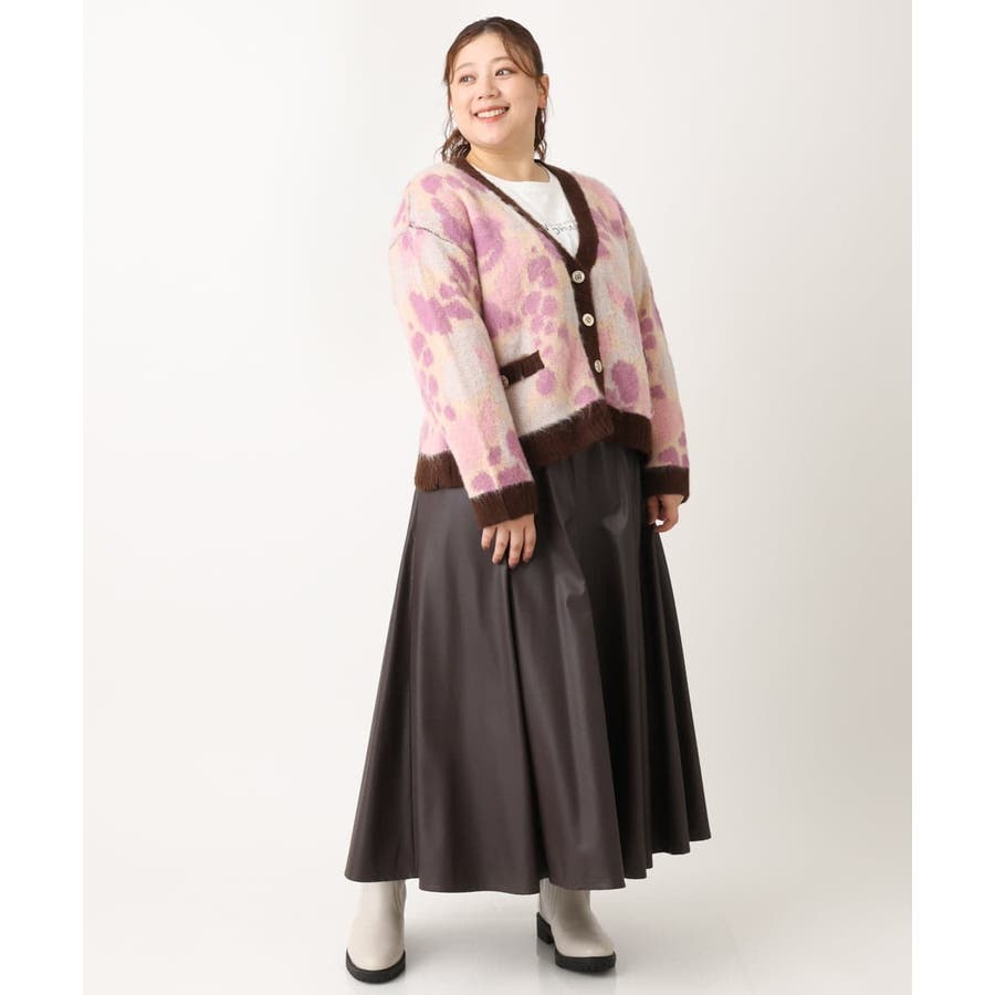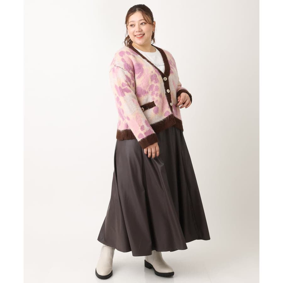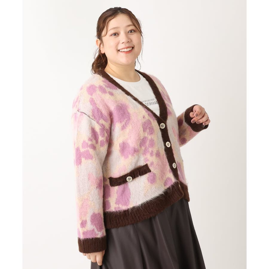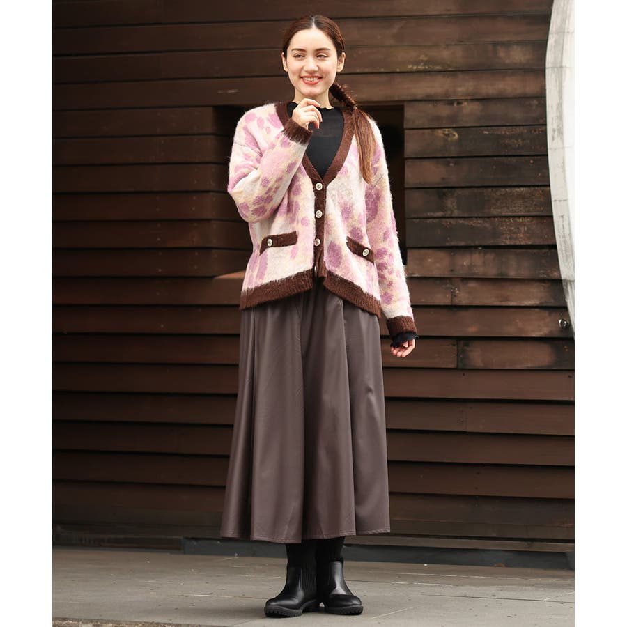 ・ふわふわで暖かくニュアンス柄が華やかなニットカーディガン