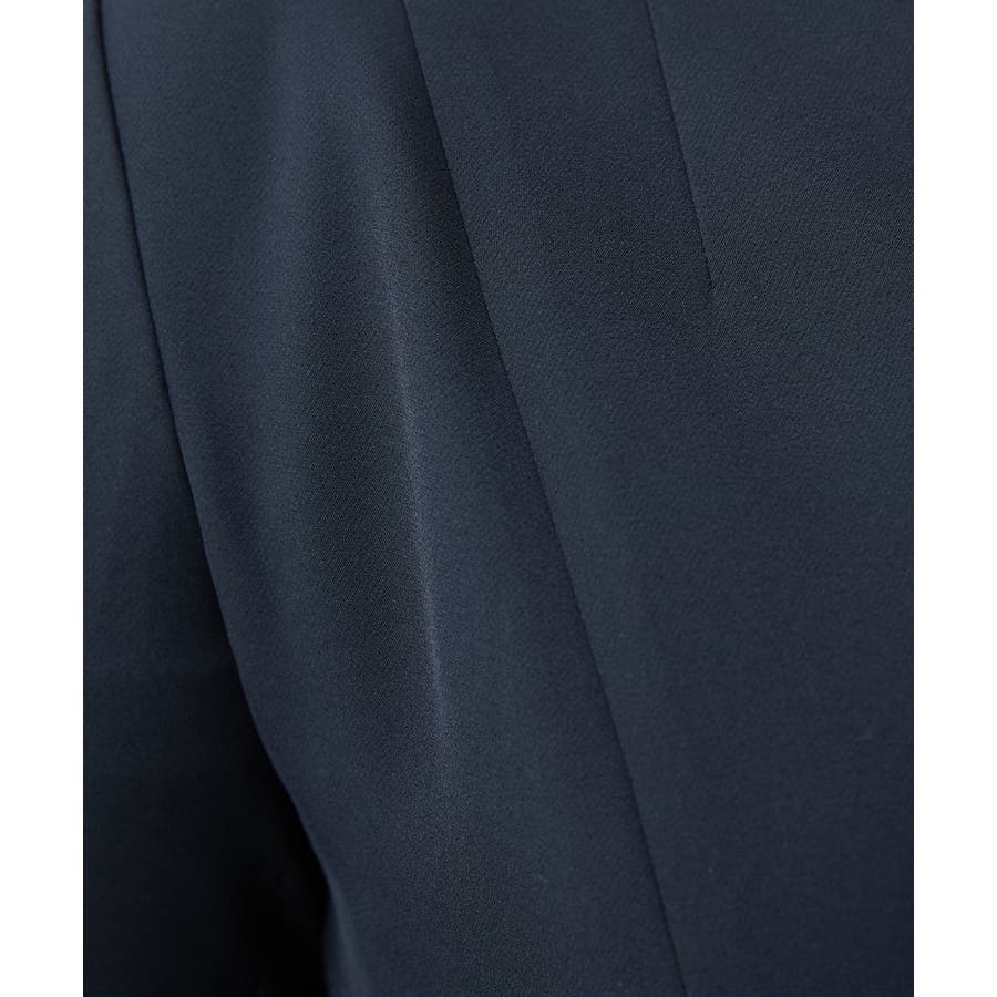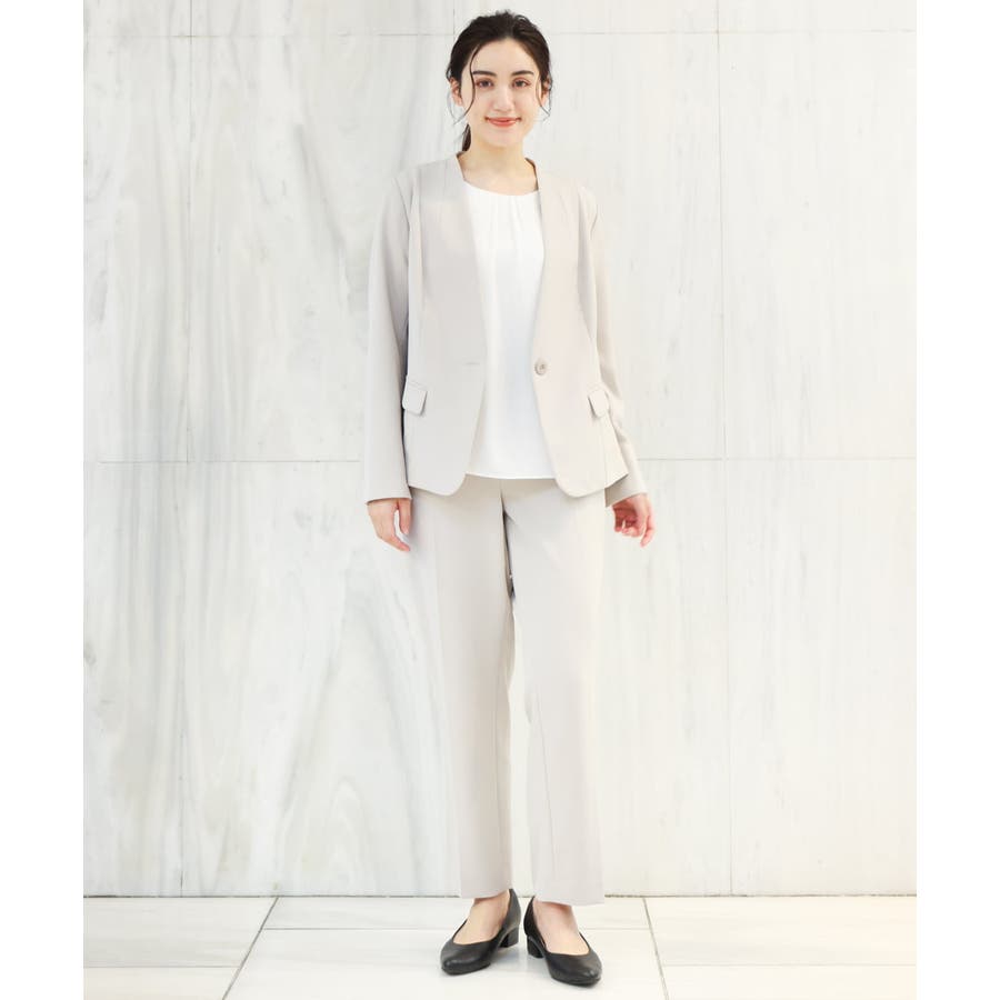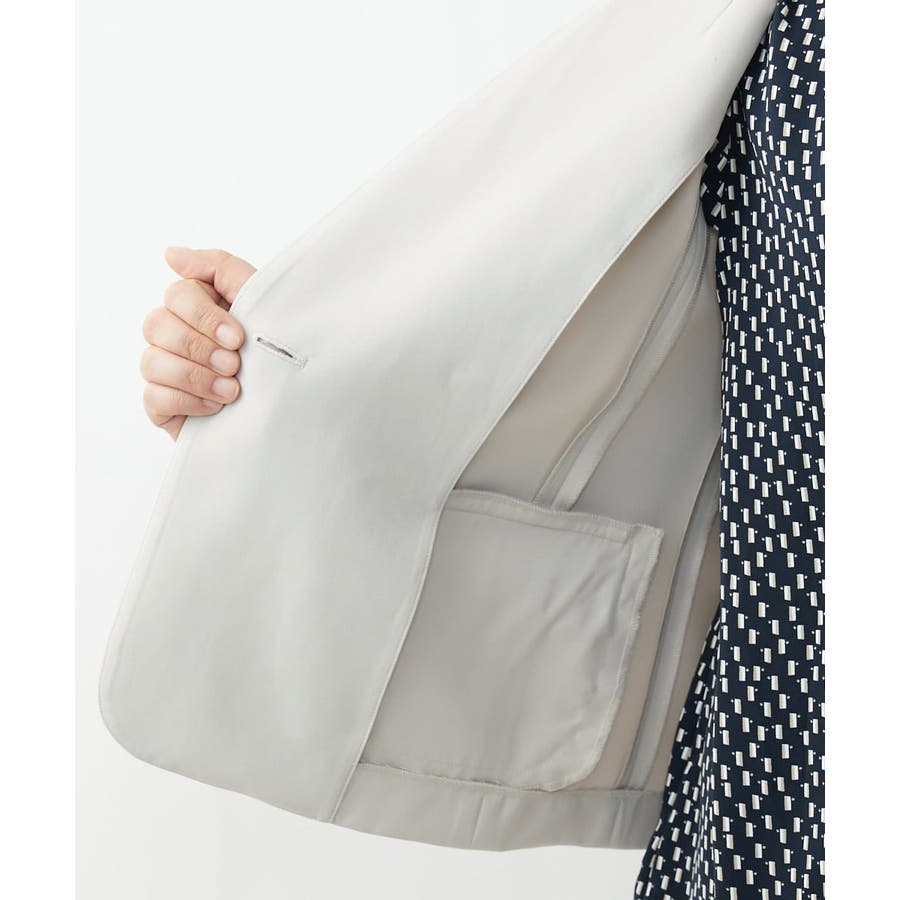 後ろ衿を少し立ち上げブイネックラインに胸元をすっきり見せるノーカラーデザイン。