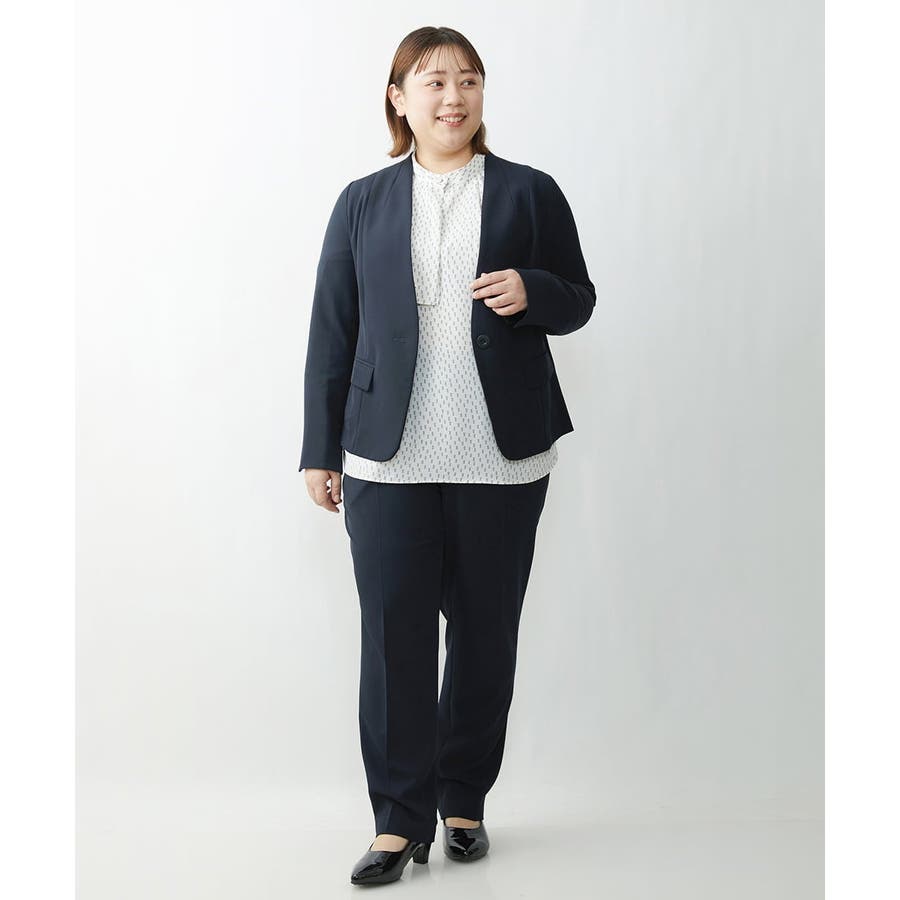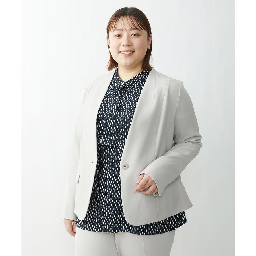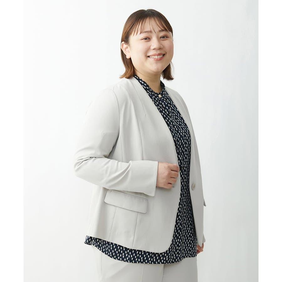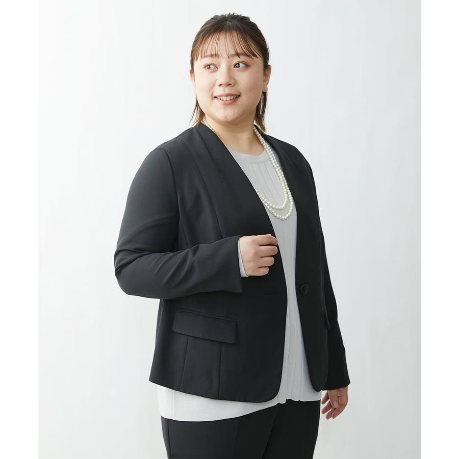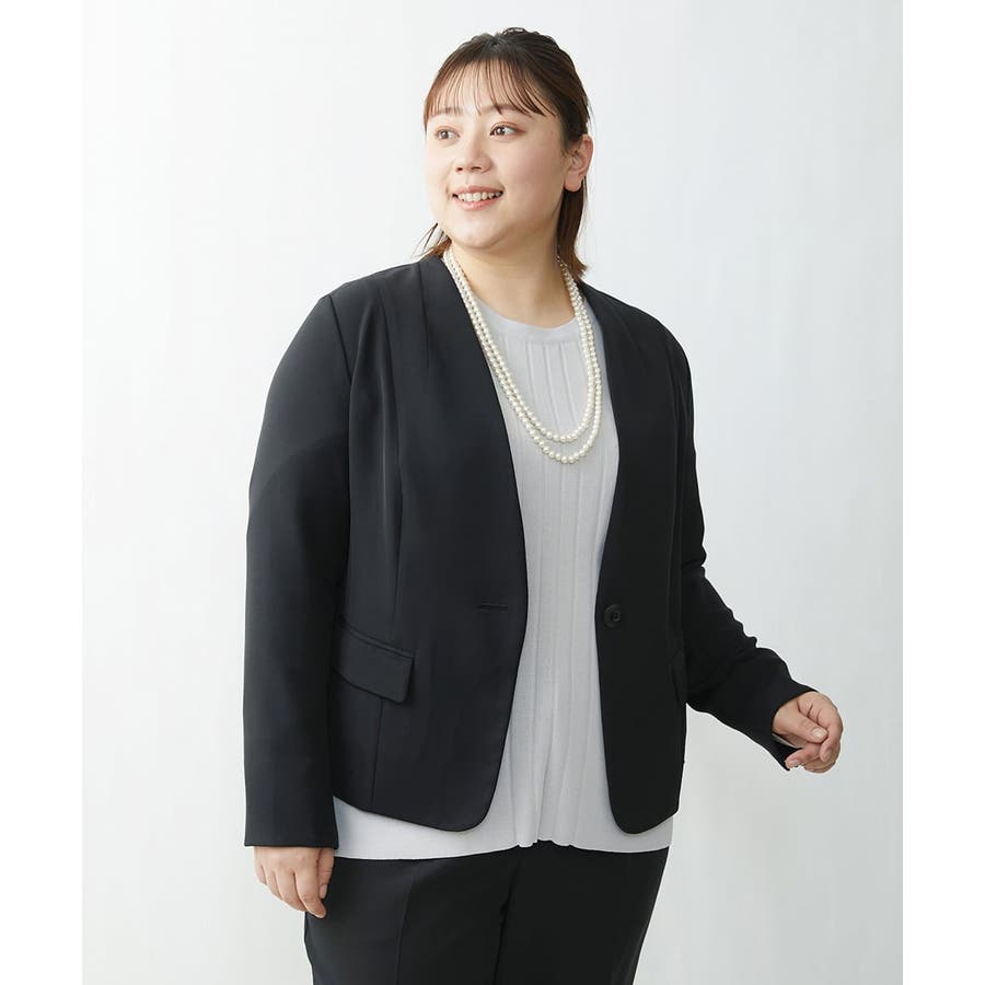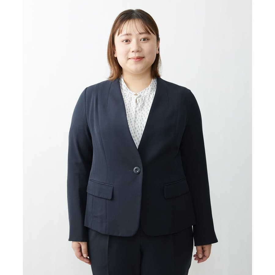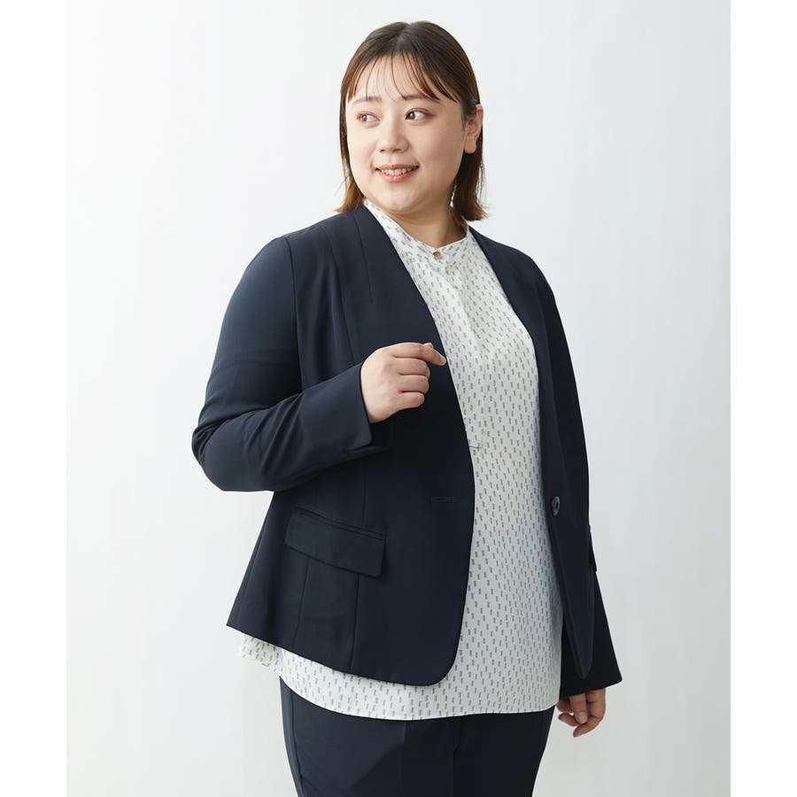 【大きいサイズ/11号サイズあり】Wクロスストレッチノーカラージャケット