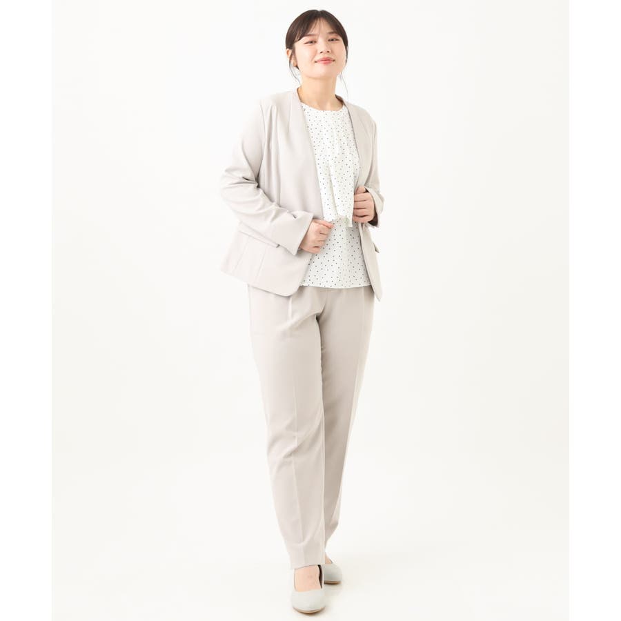 同素材のWクロスストレッチスクエアネックワンピース(品番OLEDV04169)、Wクロスストレッチテーパードパンツ(品番OLLDV06139)とセットアップで着用できます。
