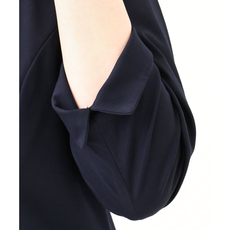 すっきりとしたVネックに体に沿いすぎないシルエット。