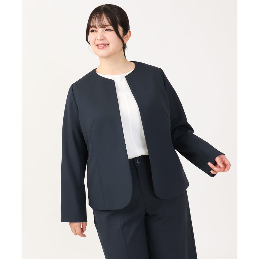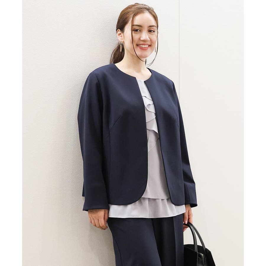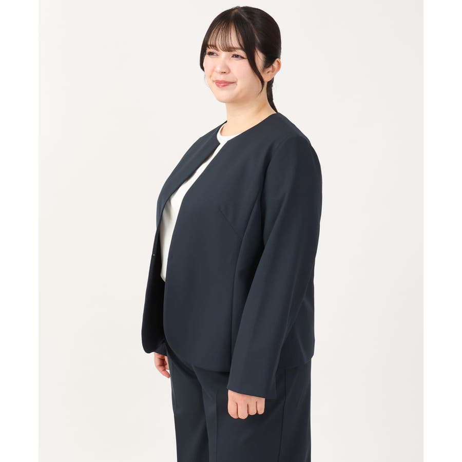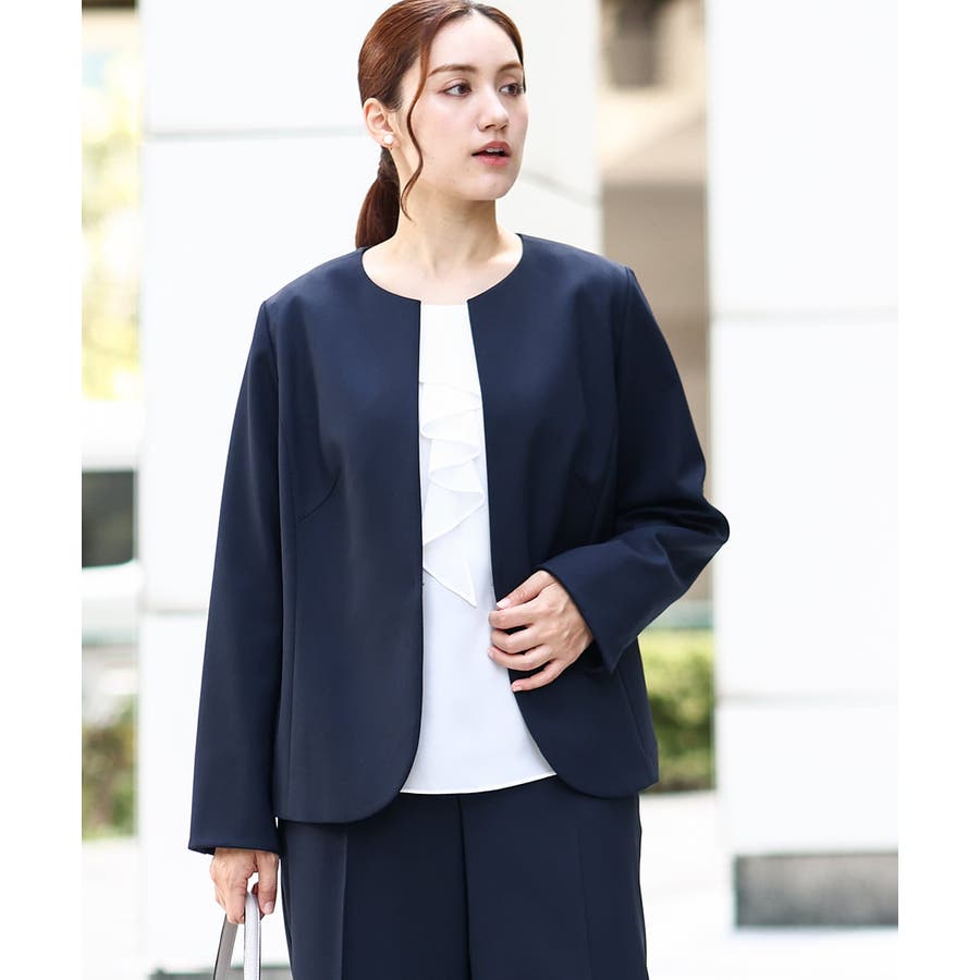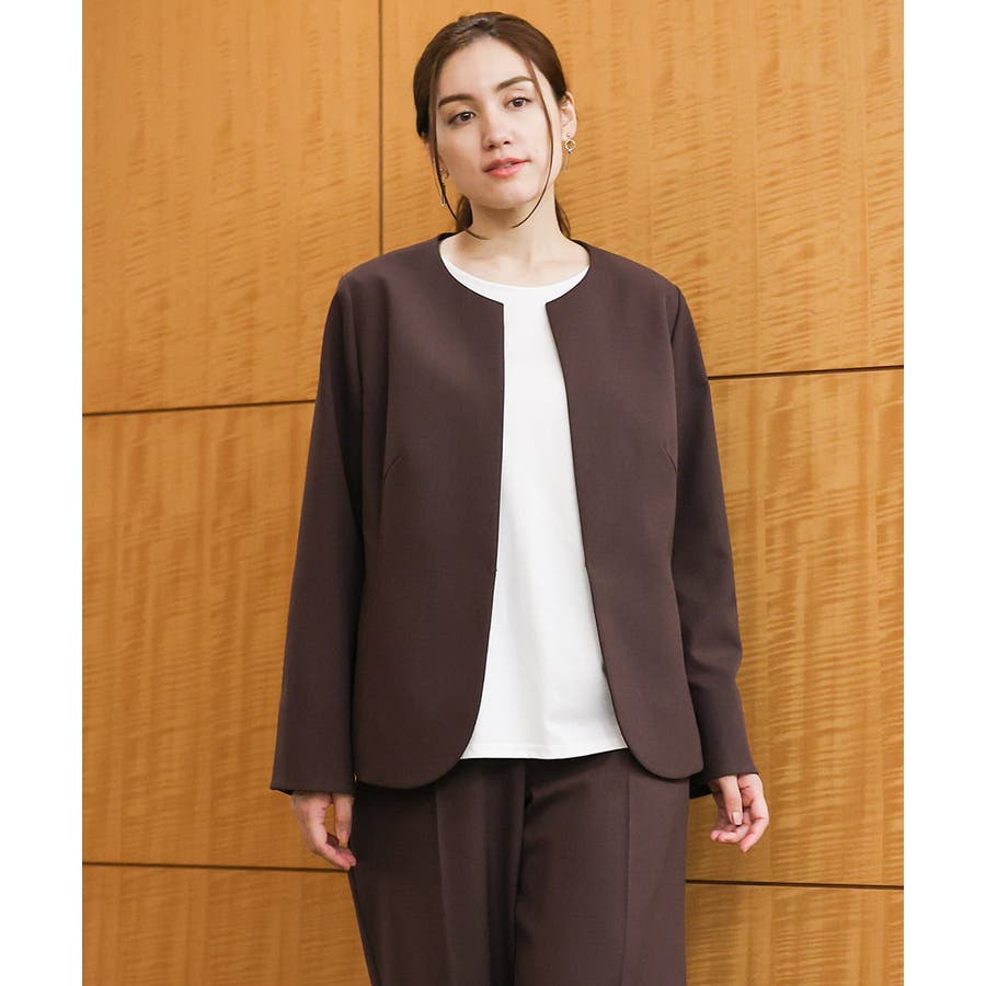 ◆通勤シーンにもおすすめのすっきりノーカラージャケット◆