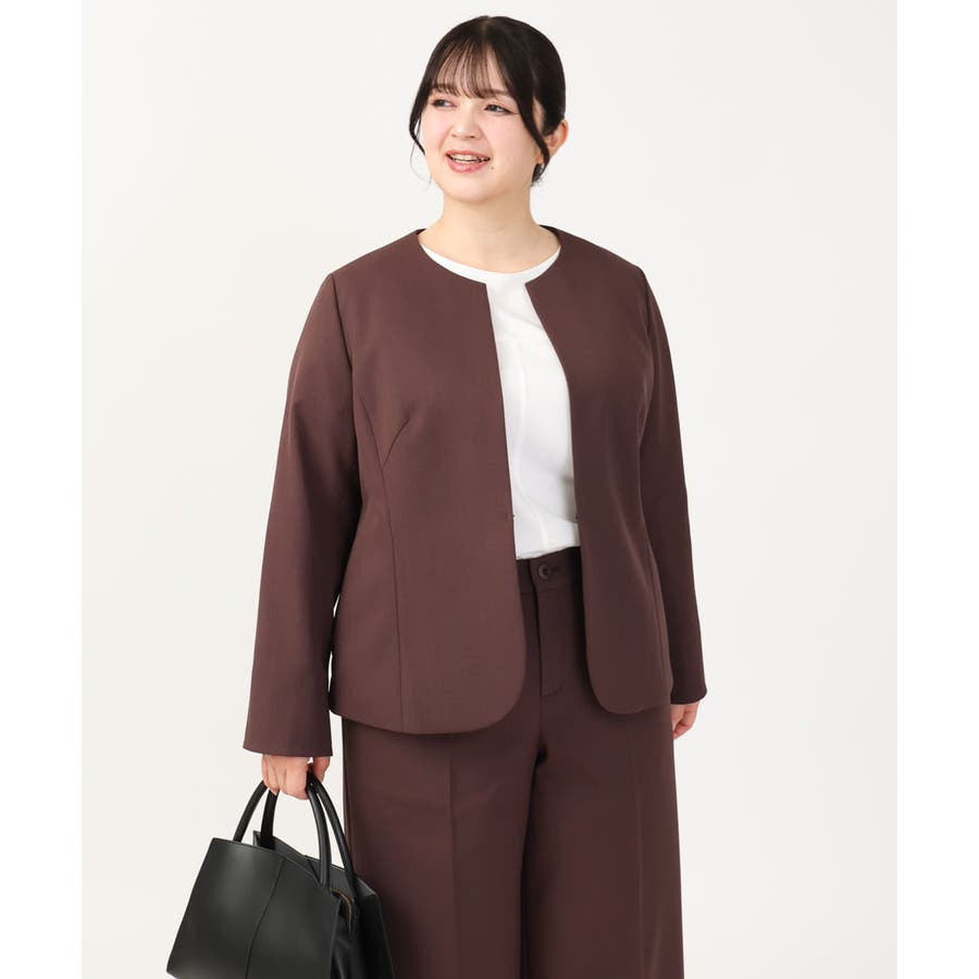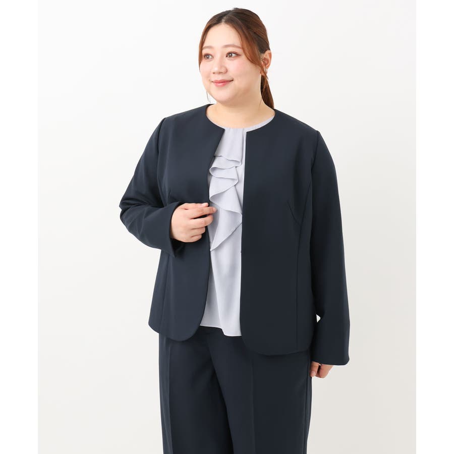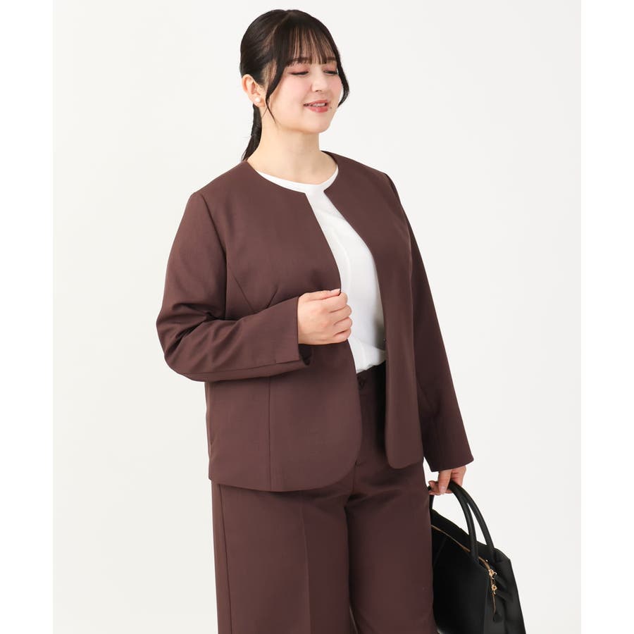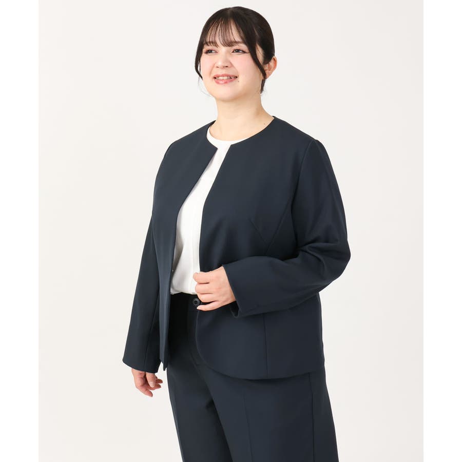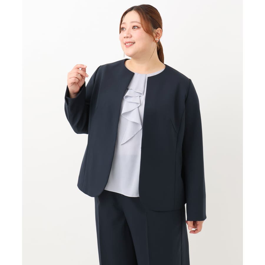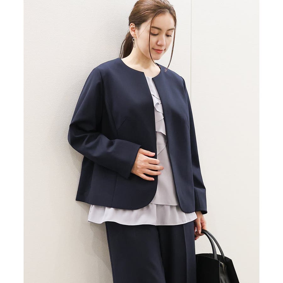 ◆通勤シーンにもおすすめのすっきりノーカラージャケット◆