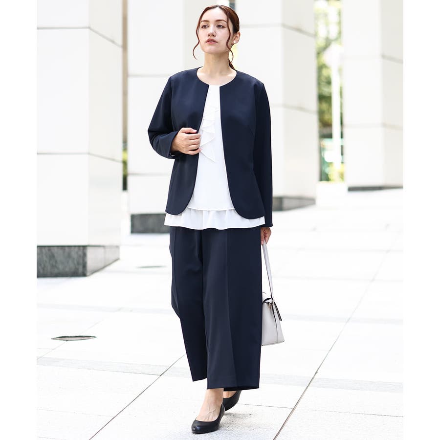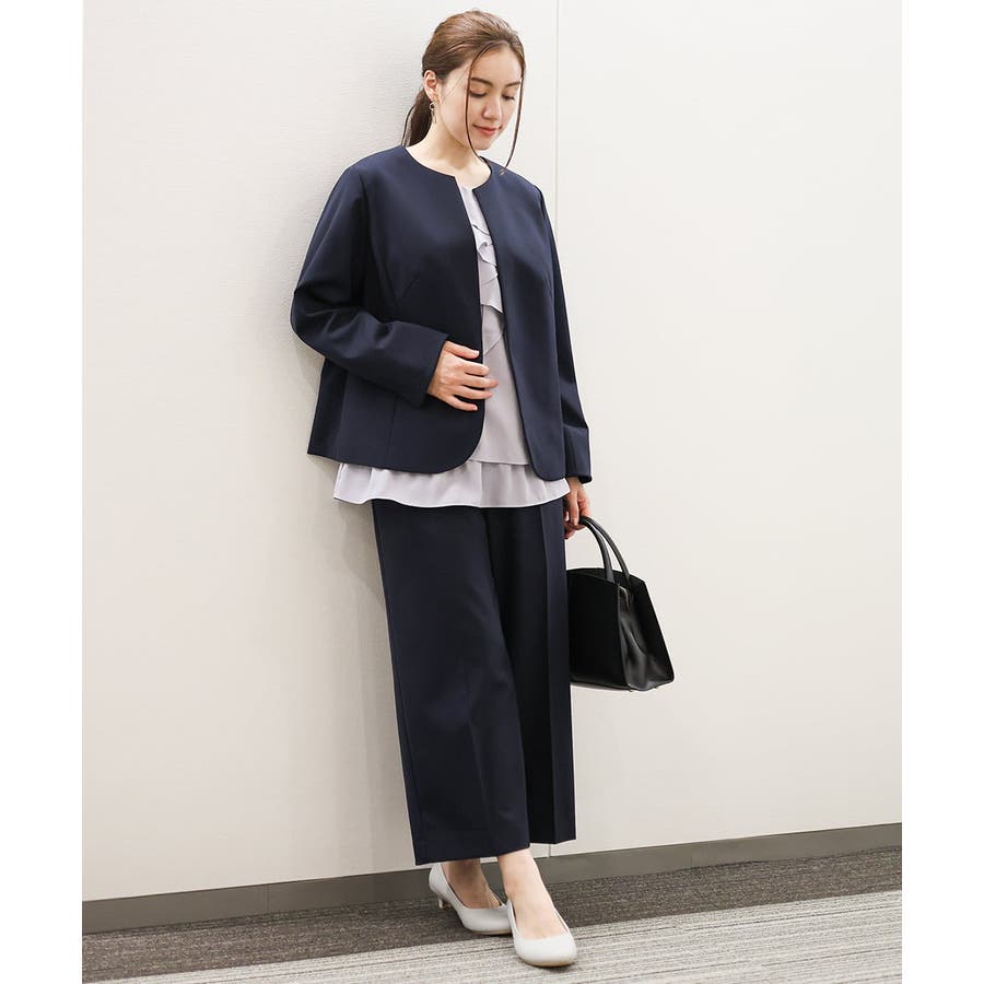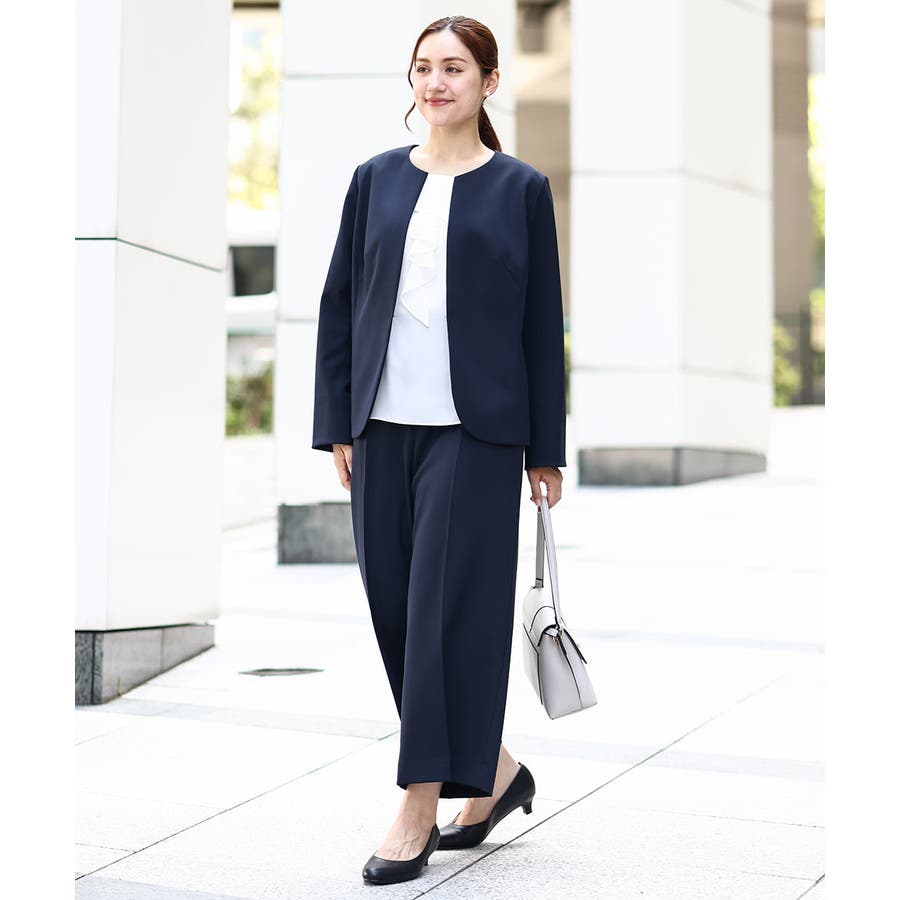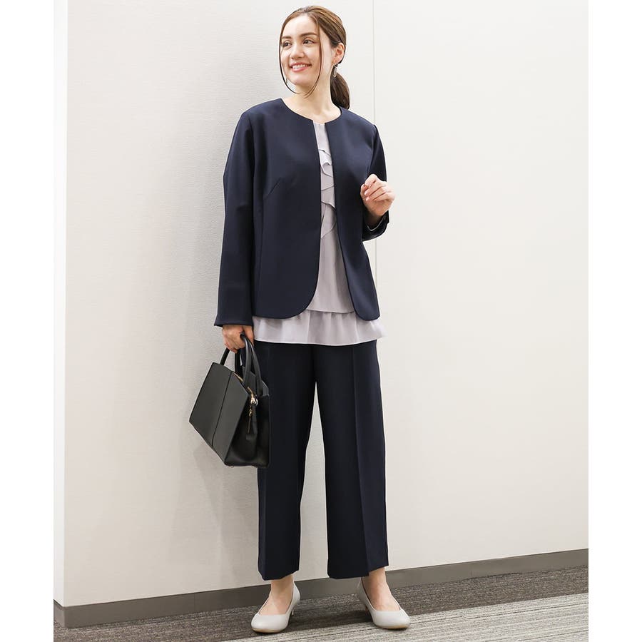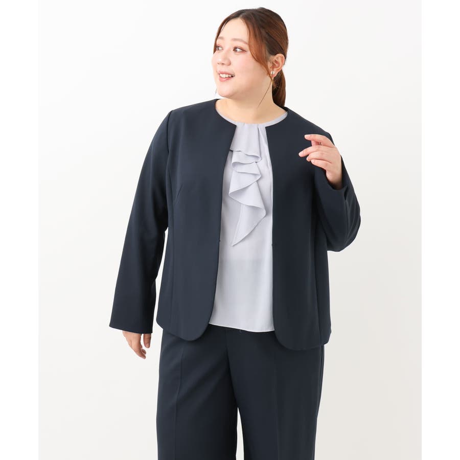 ◆通勤シーンにもおすすめのすっきりノーカラージャケット◆