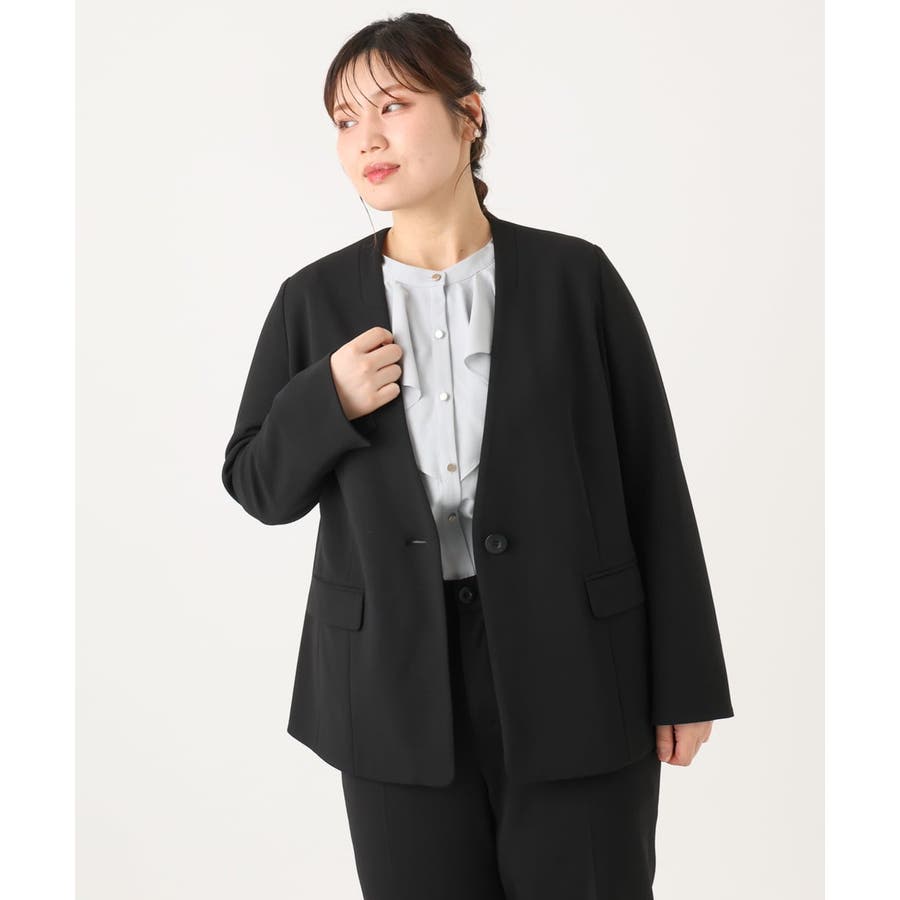 【大きいサイズ/11号サイズあり】カットジョーゼットノーカラージャケット