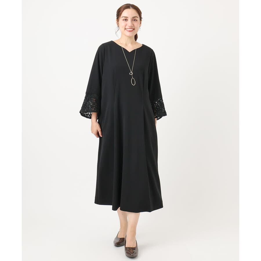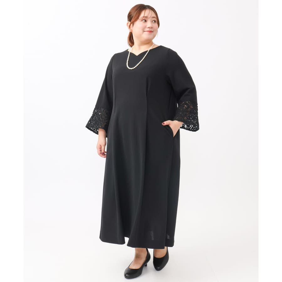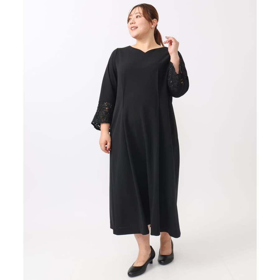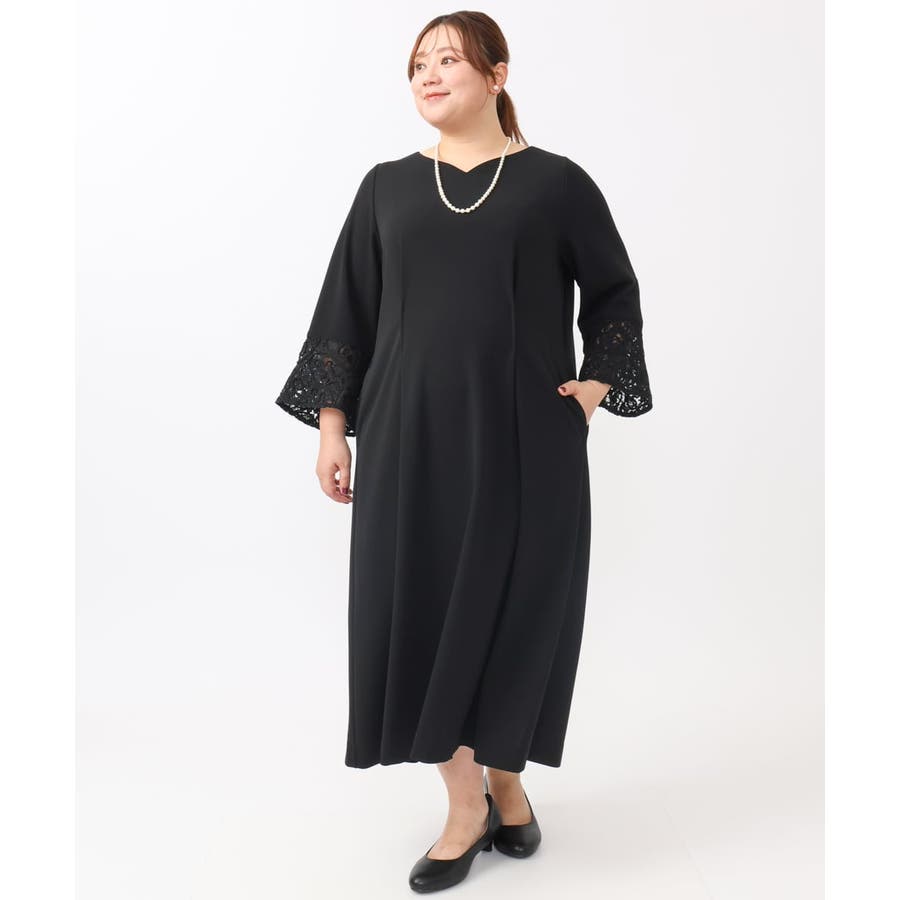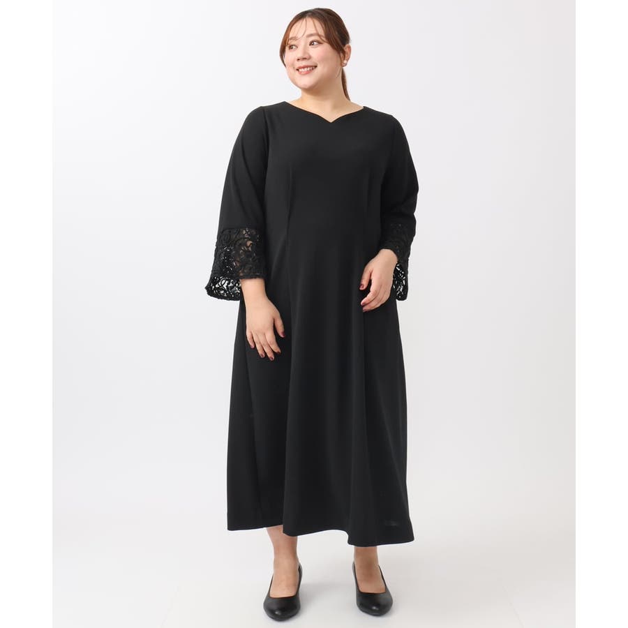 【大きいサイズ/11号サイズあり】レーススリーブドレス