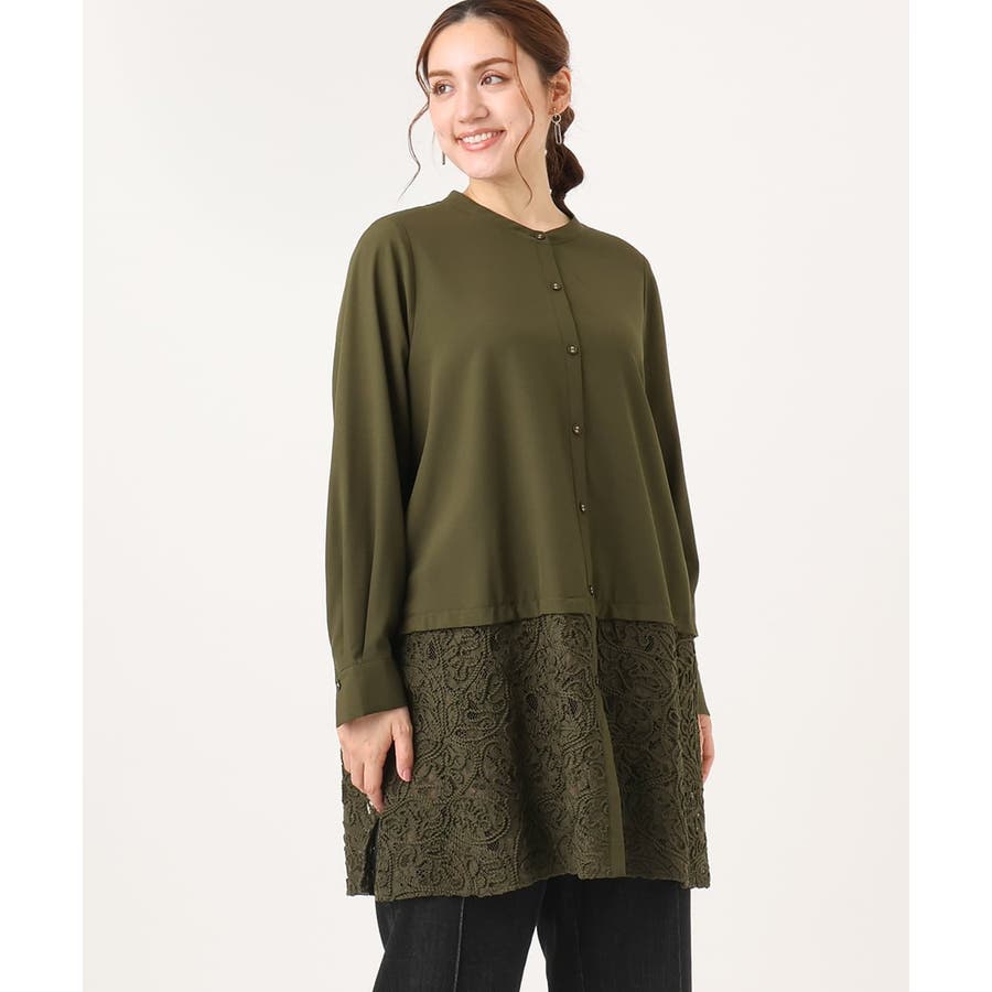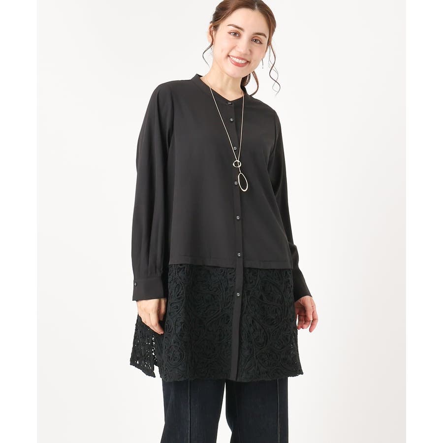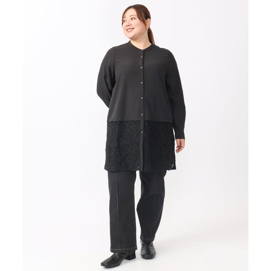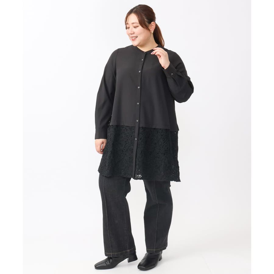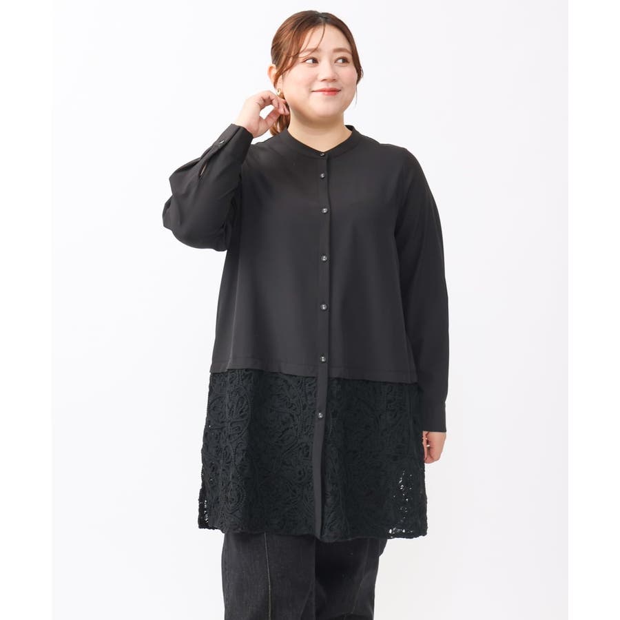 【大きいサイズ】レースコンビシャツチュニック
