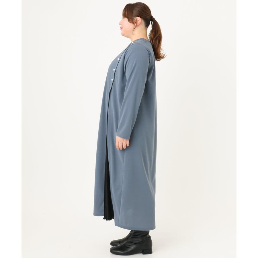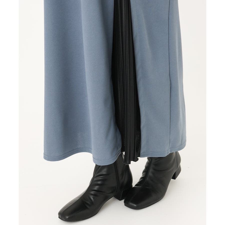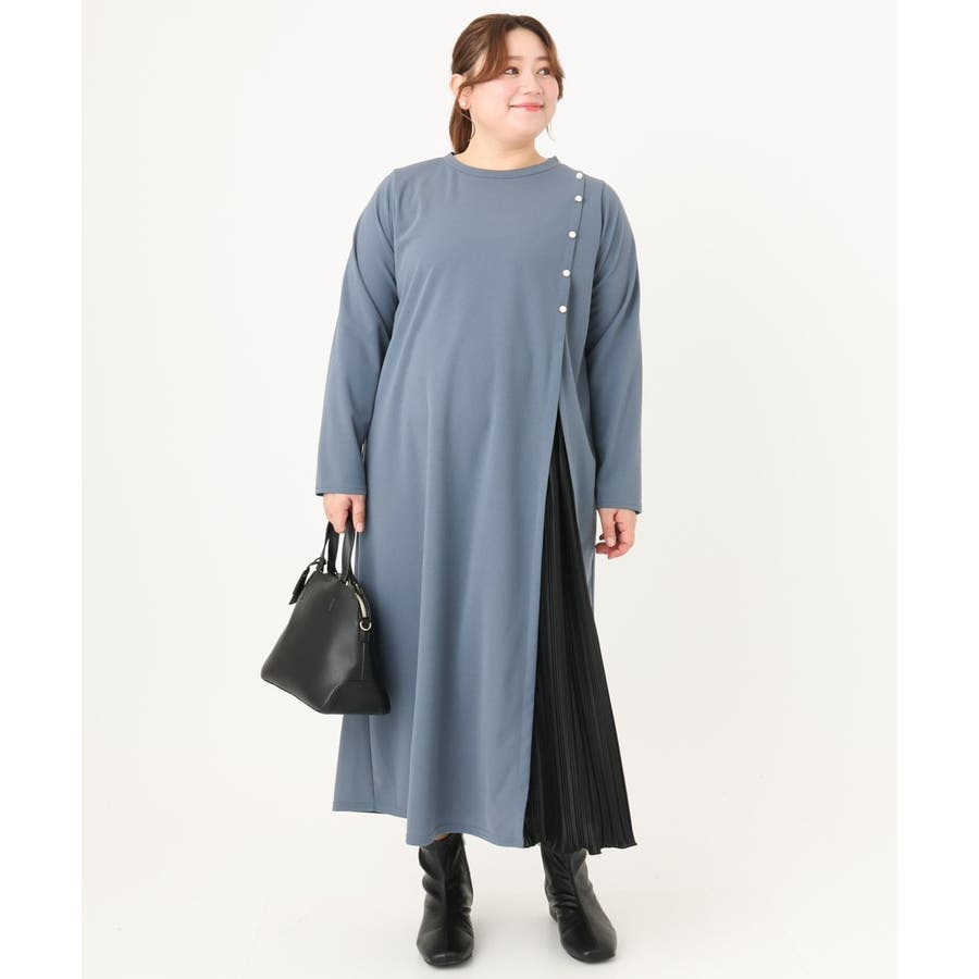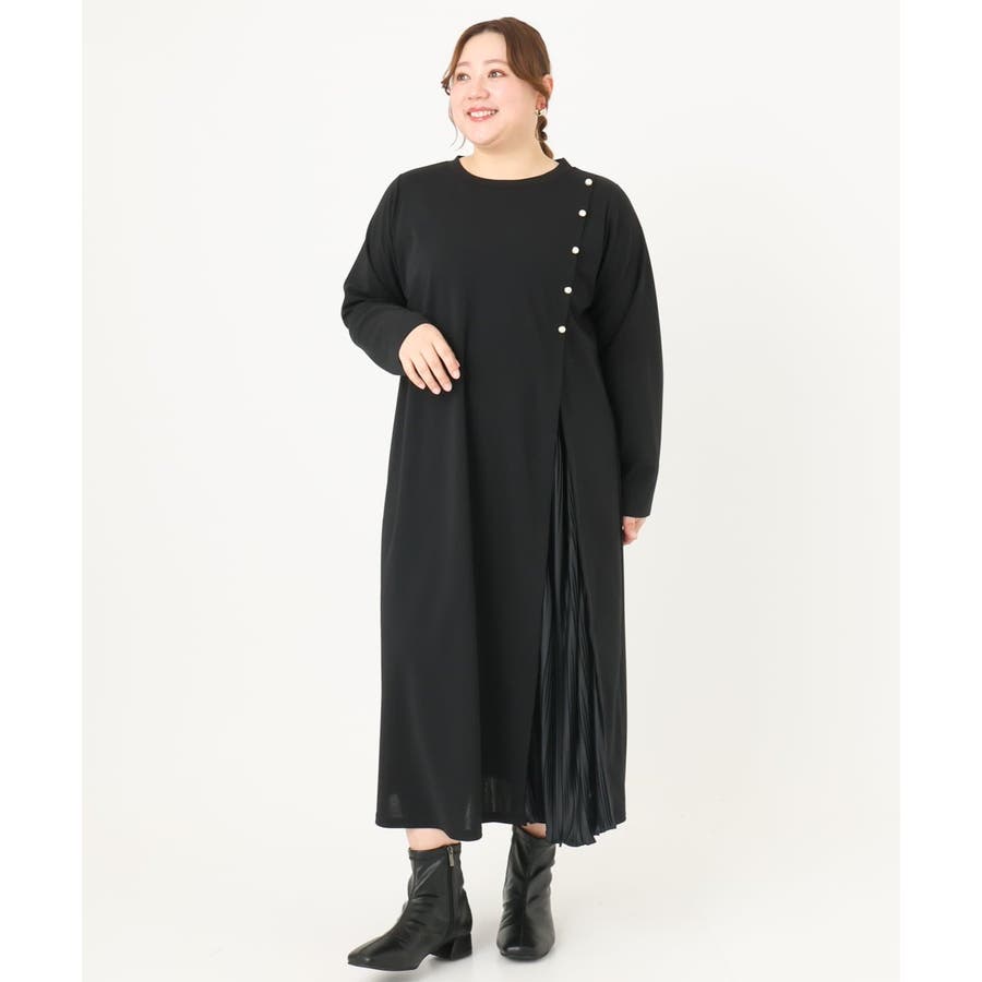 アシンメトリーにとった切替からプリーツがのぞくデザインワンピース。