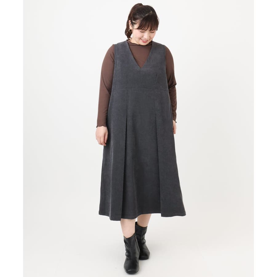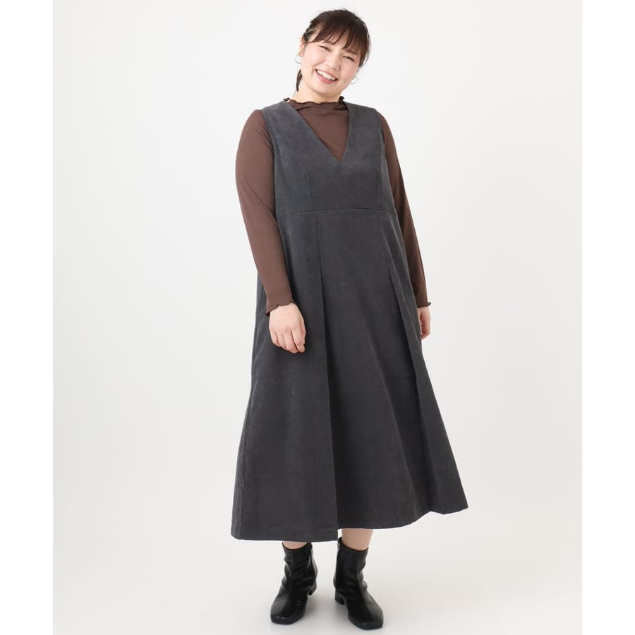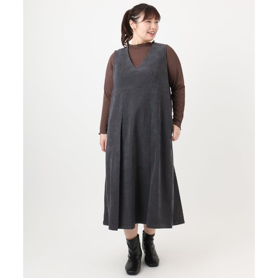 細コールがカジュアルで大人可愛いジャンパースカート。