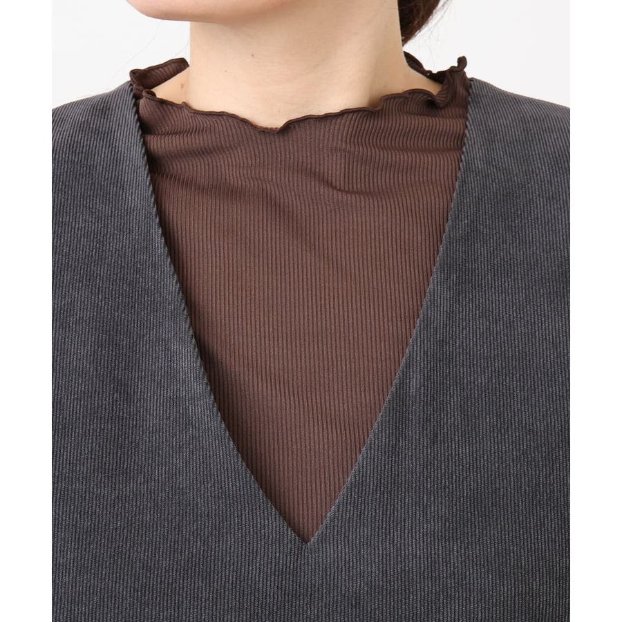 深めのVネックと落ち着きカラーで子供っぽくならないのも大人女性におすすめのポイントです。