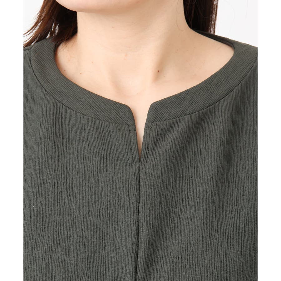 襟ぐりはヘンリー切り替え襟にVにスリットの入ったネック回りもきれいに見せるデザインです。