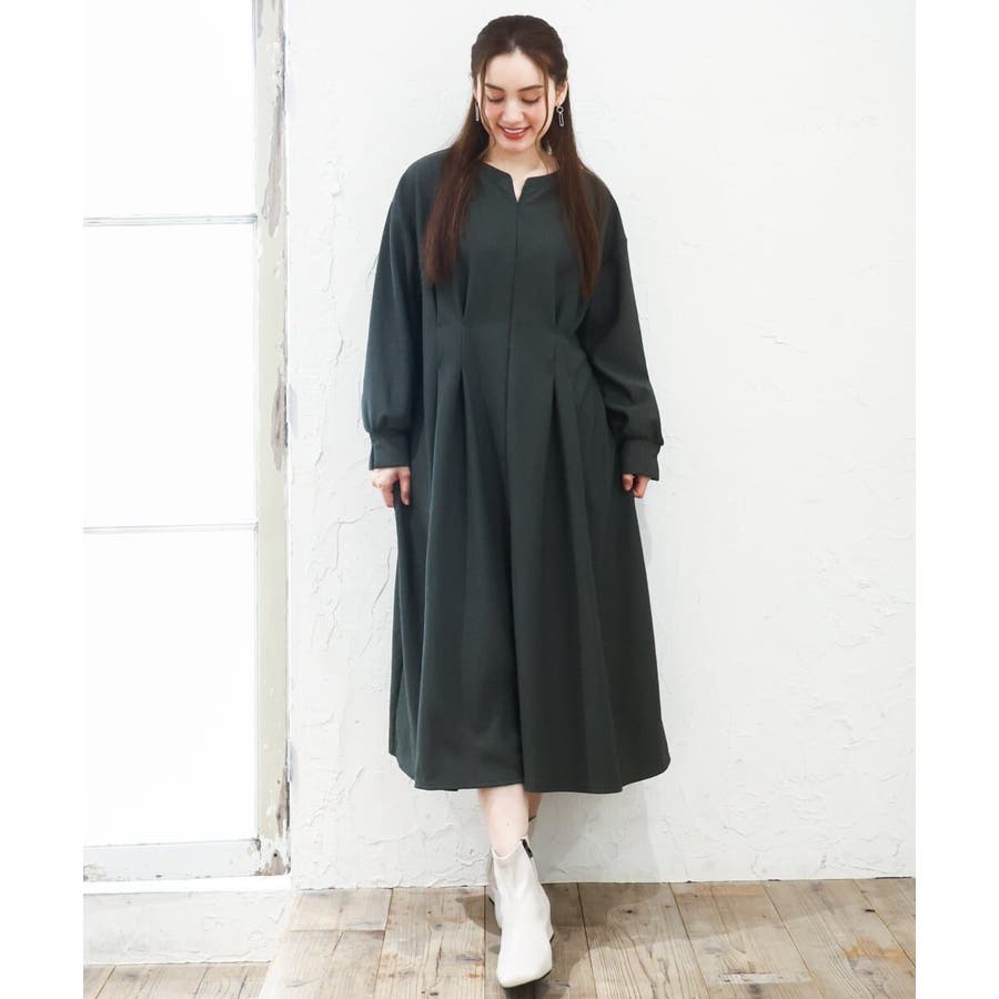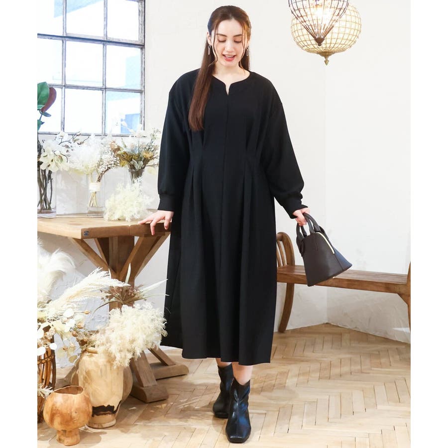 【大きいサイズ/LAVEANGE×eur3】タックジャージーワンピース