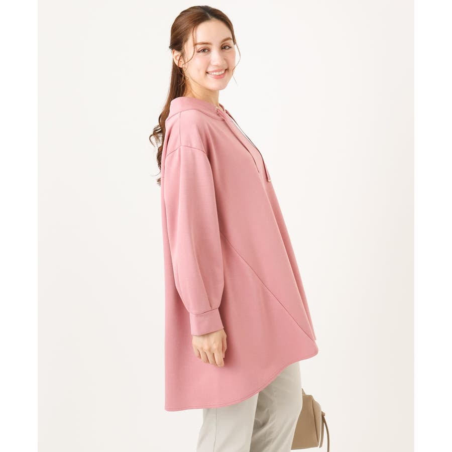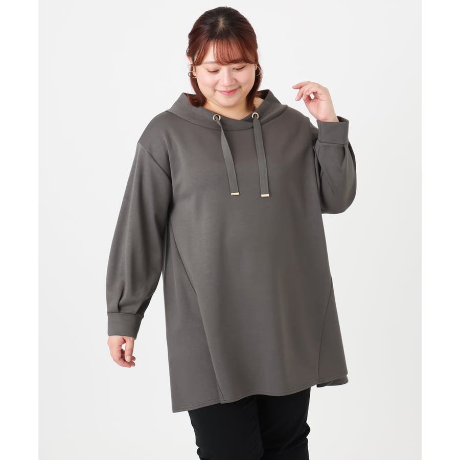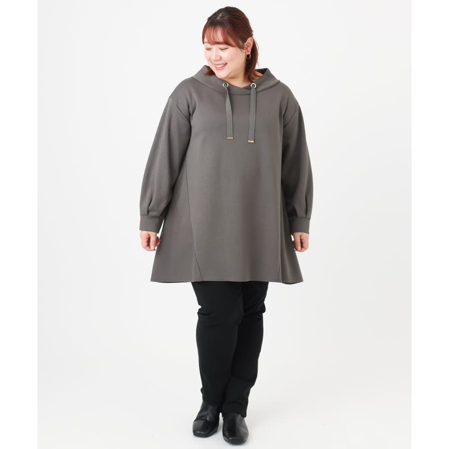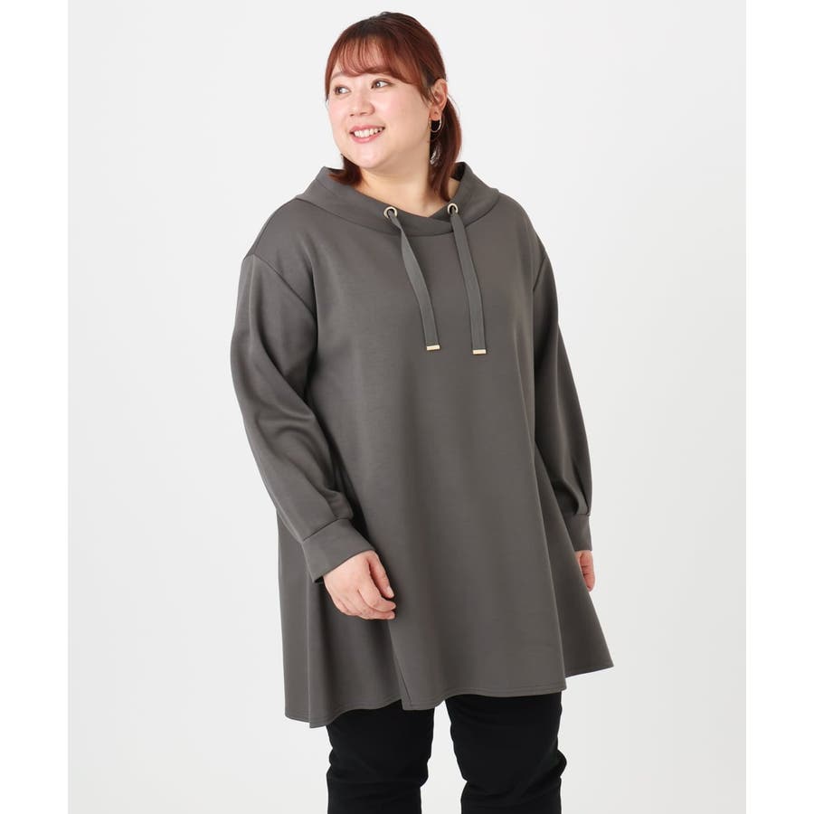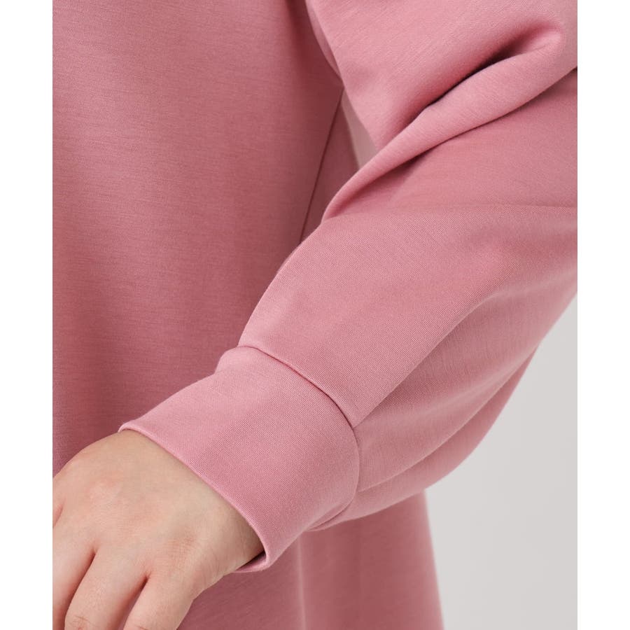 フーディー風に切り替え&スピンドルの入ったネックデザインはアウターを羽織ってもかさばらずご着用いただけます。