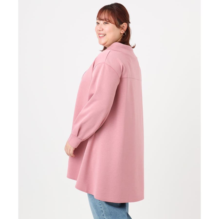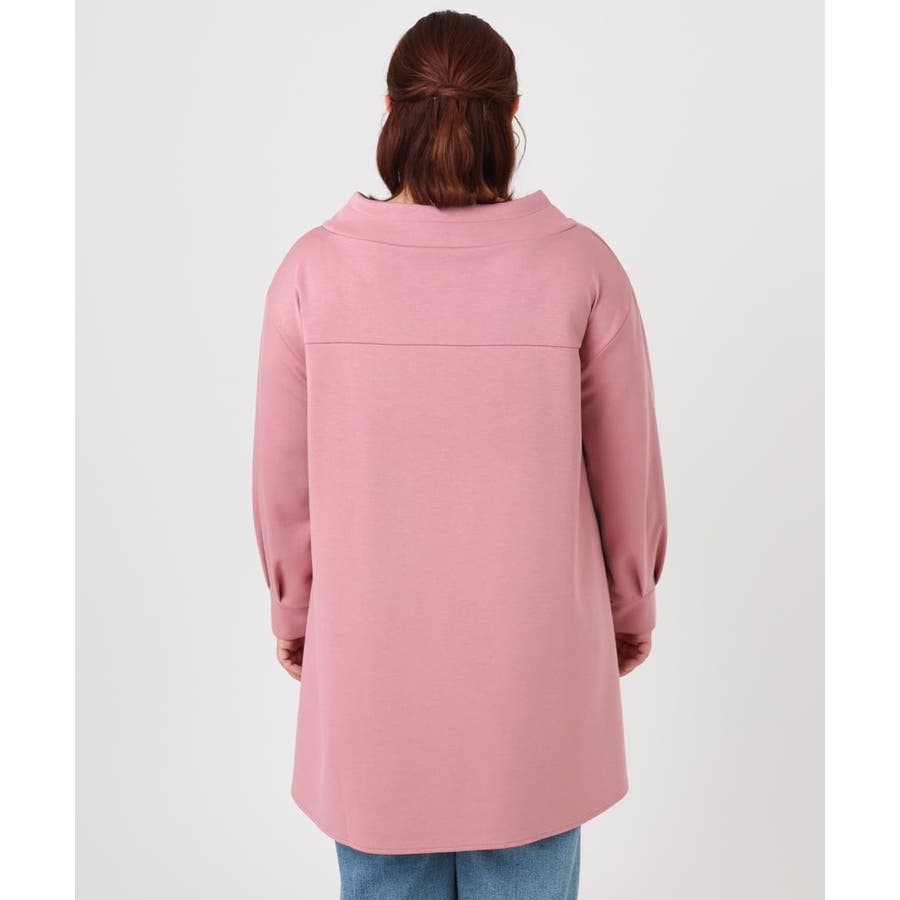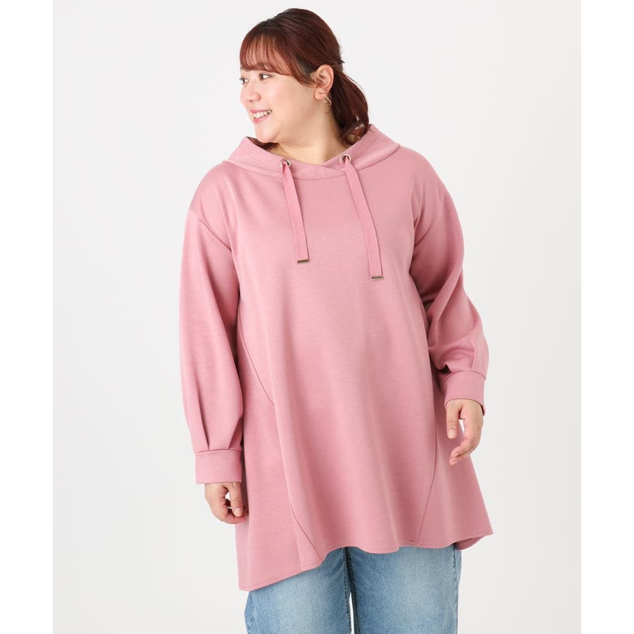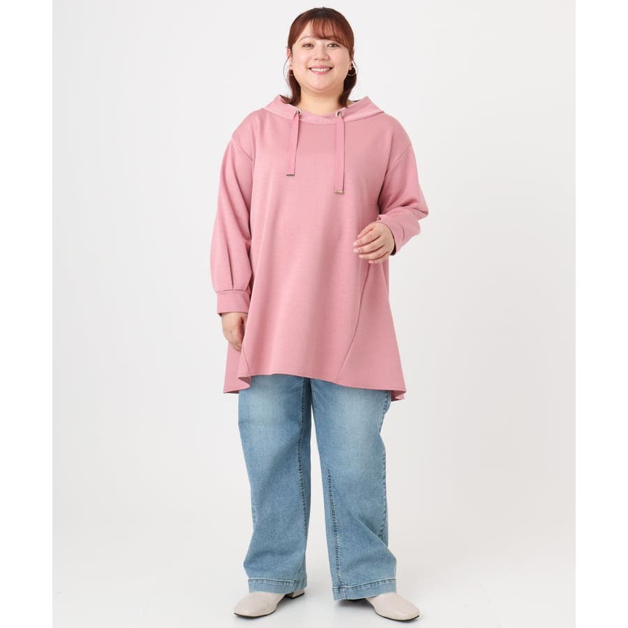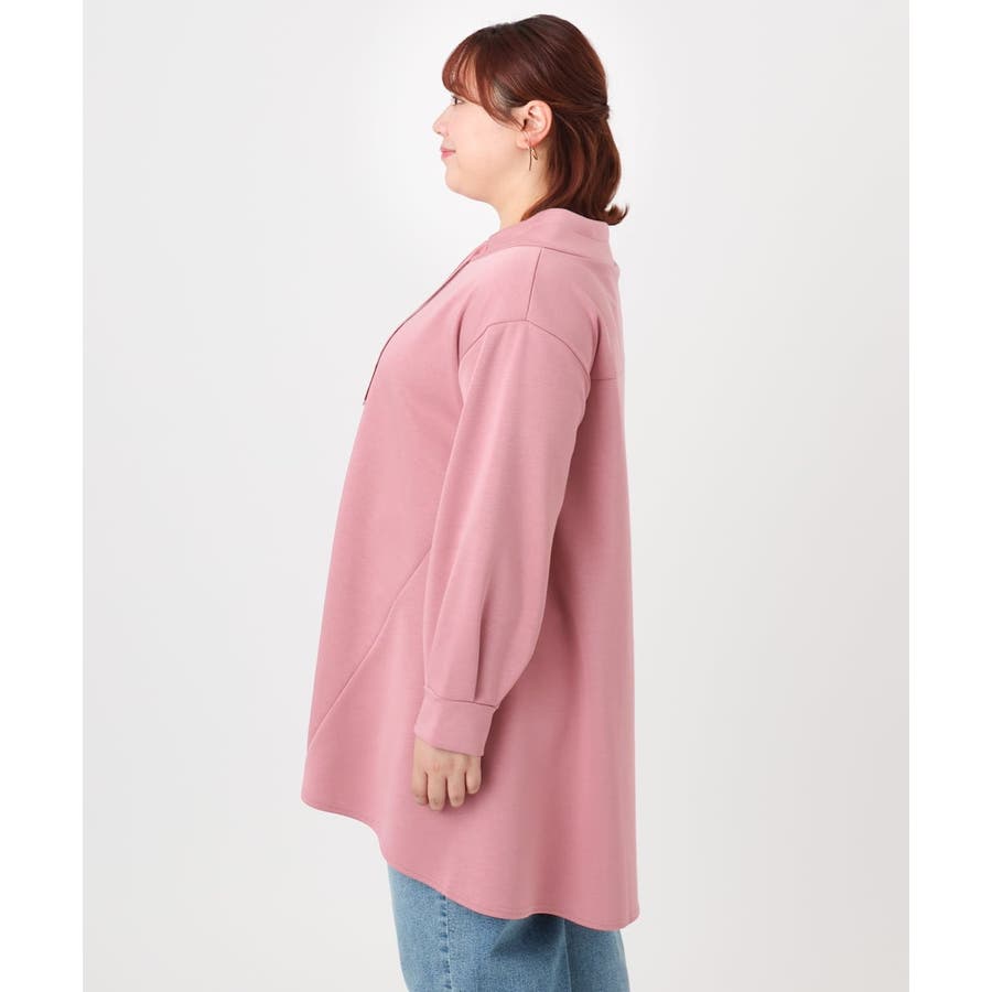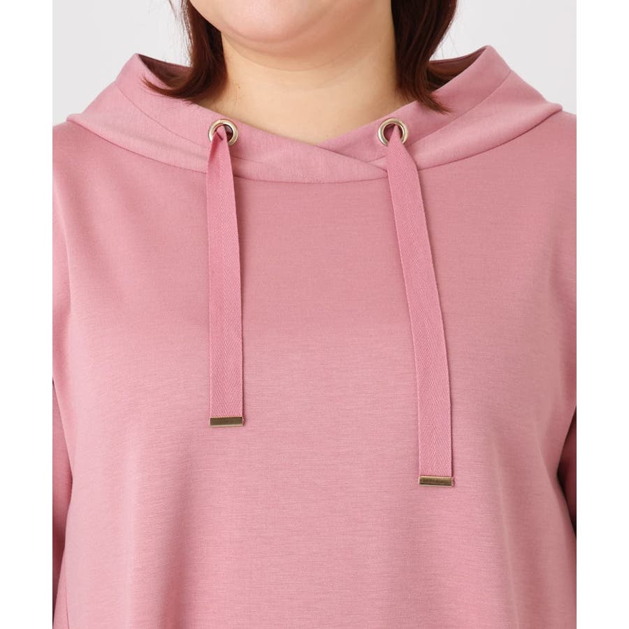 フーディー風に切り替え&スピンドルの入ったネックデザインはアウターを羽織ってもかさばらずご着用いただけます。