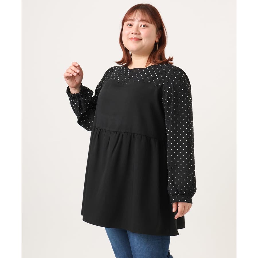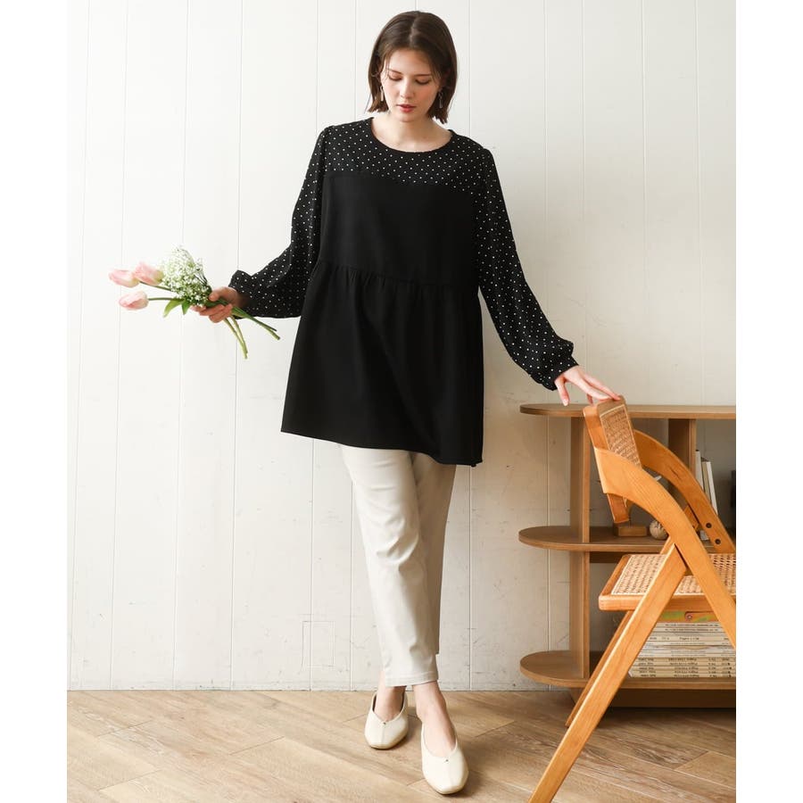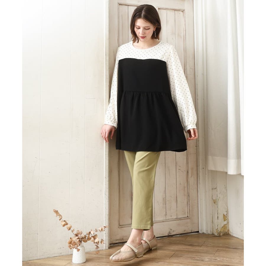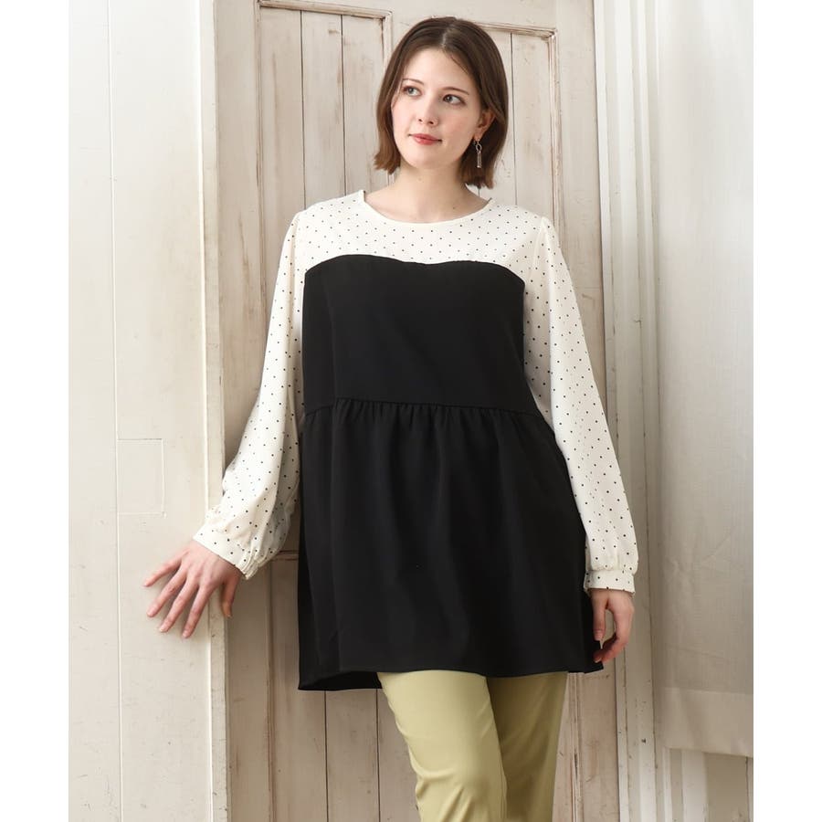 1枚でトレンド感ある着こなしが完成するドッキングチュニックブラウス。