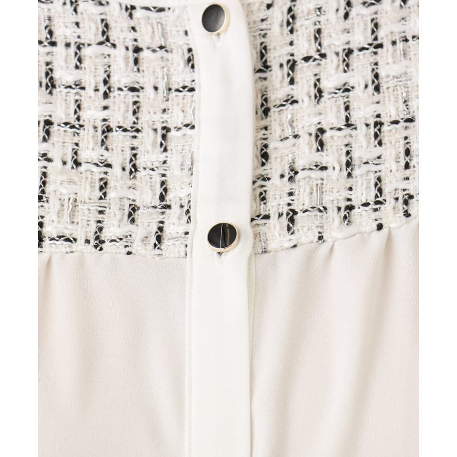 凹凸感あるざっくりとした見た目が特徴のツイード生地とさらりと軽やかでドレープ感のあるジョーゼット素材を使用。