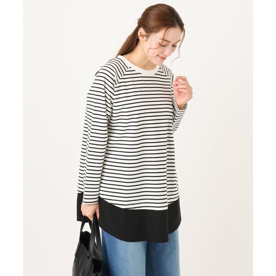 裾にブラウス生地をドッキングしたプルオーバー。