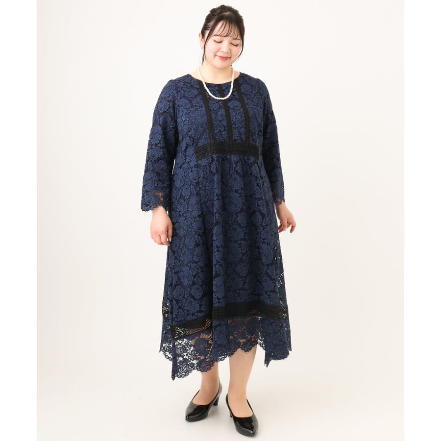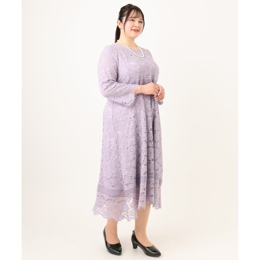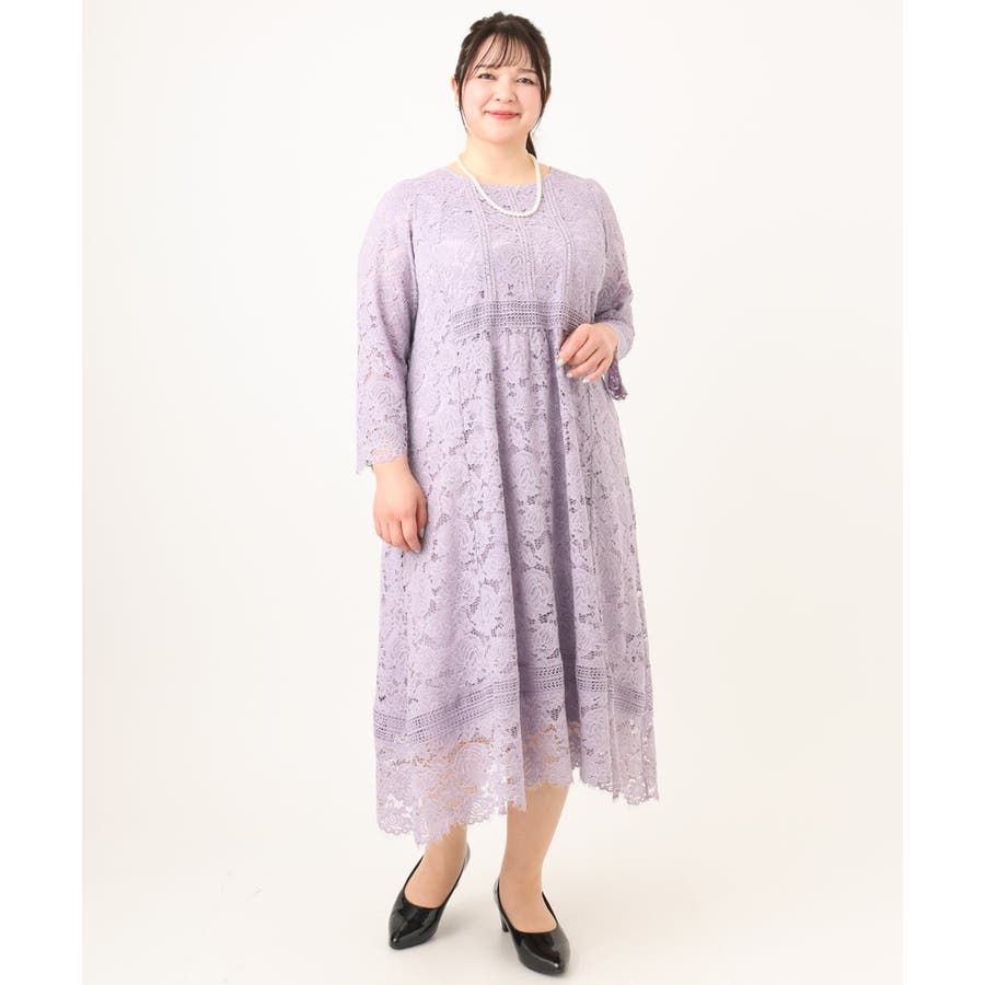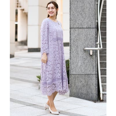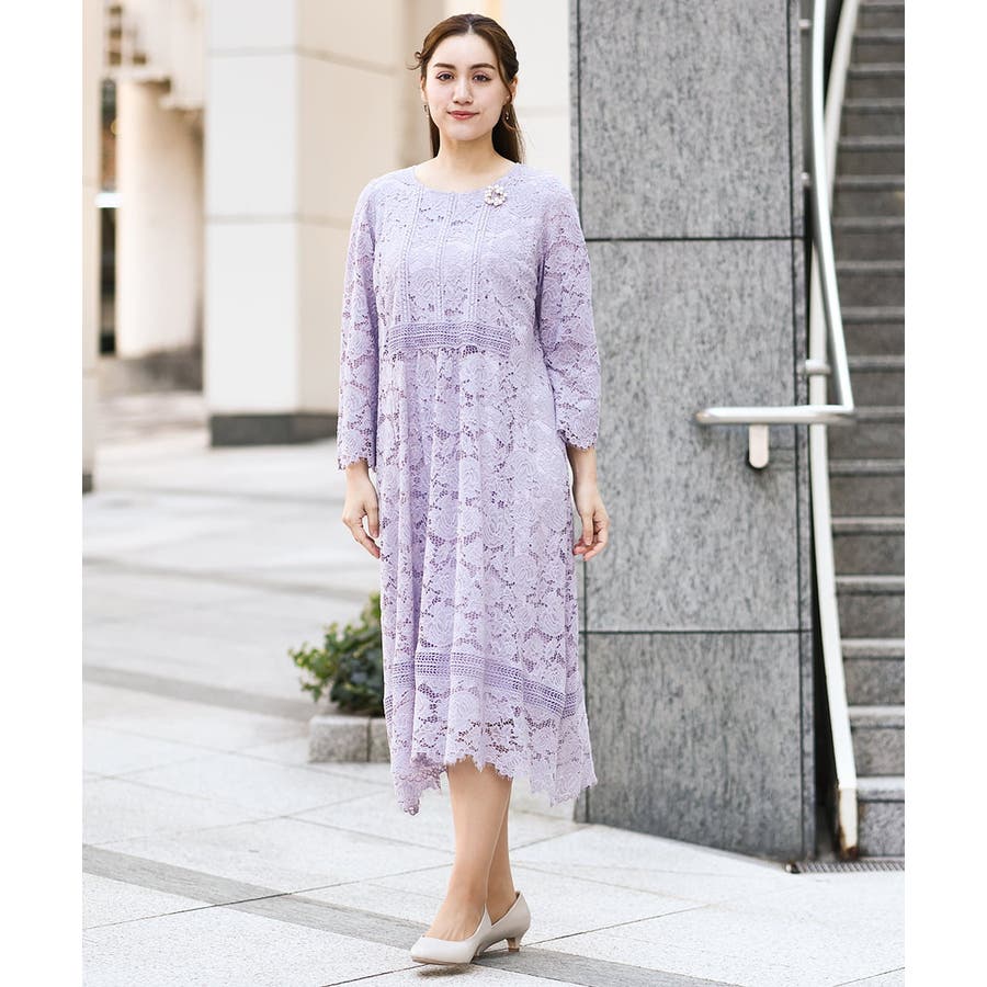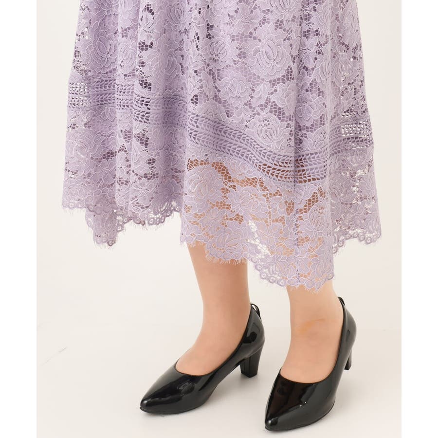 緩やかなイレヘムが大人かわいいレースのオケージョンドレス。