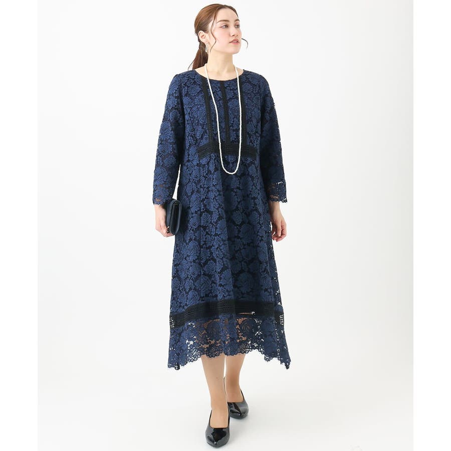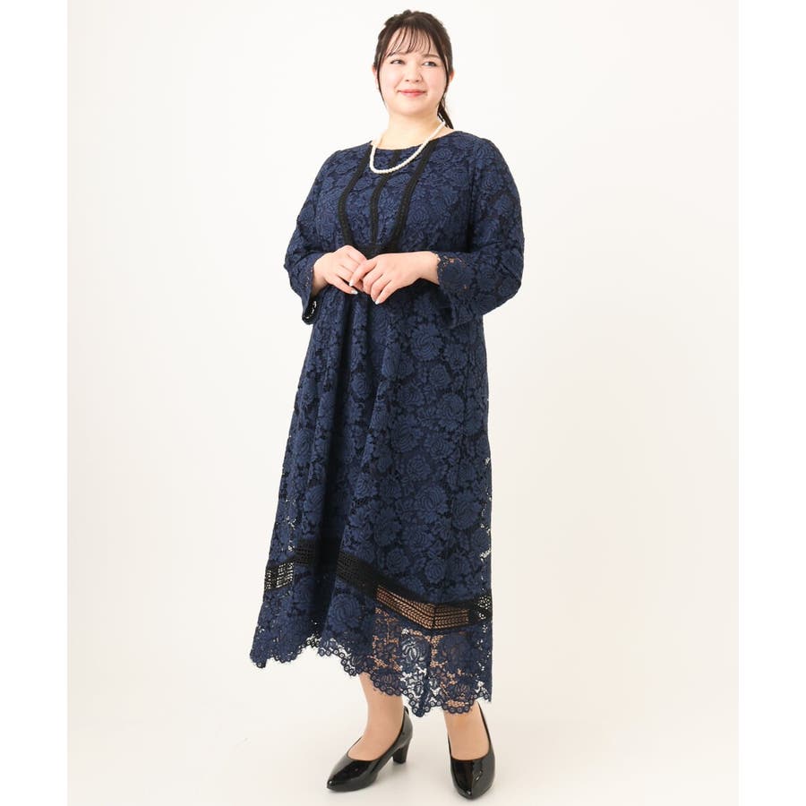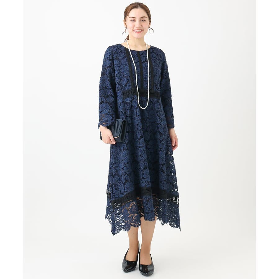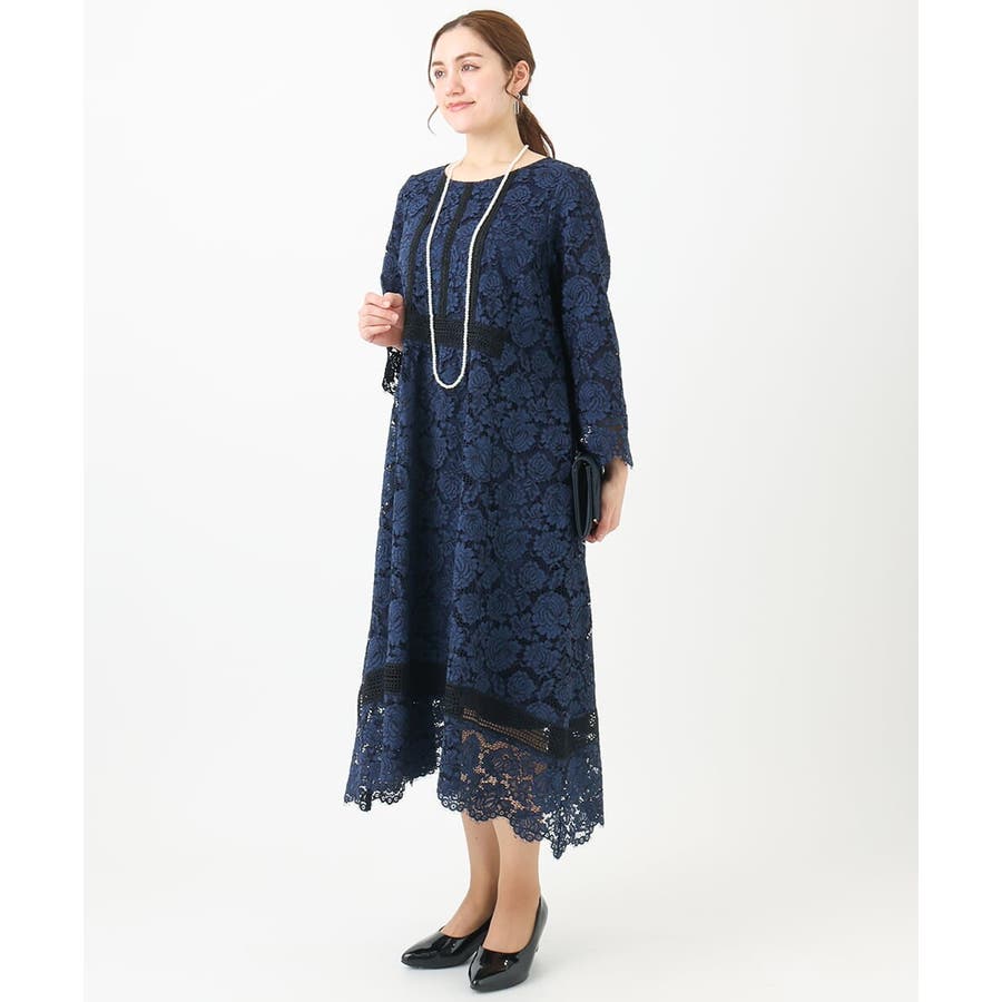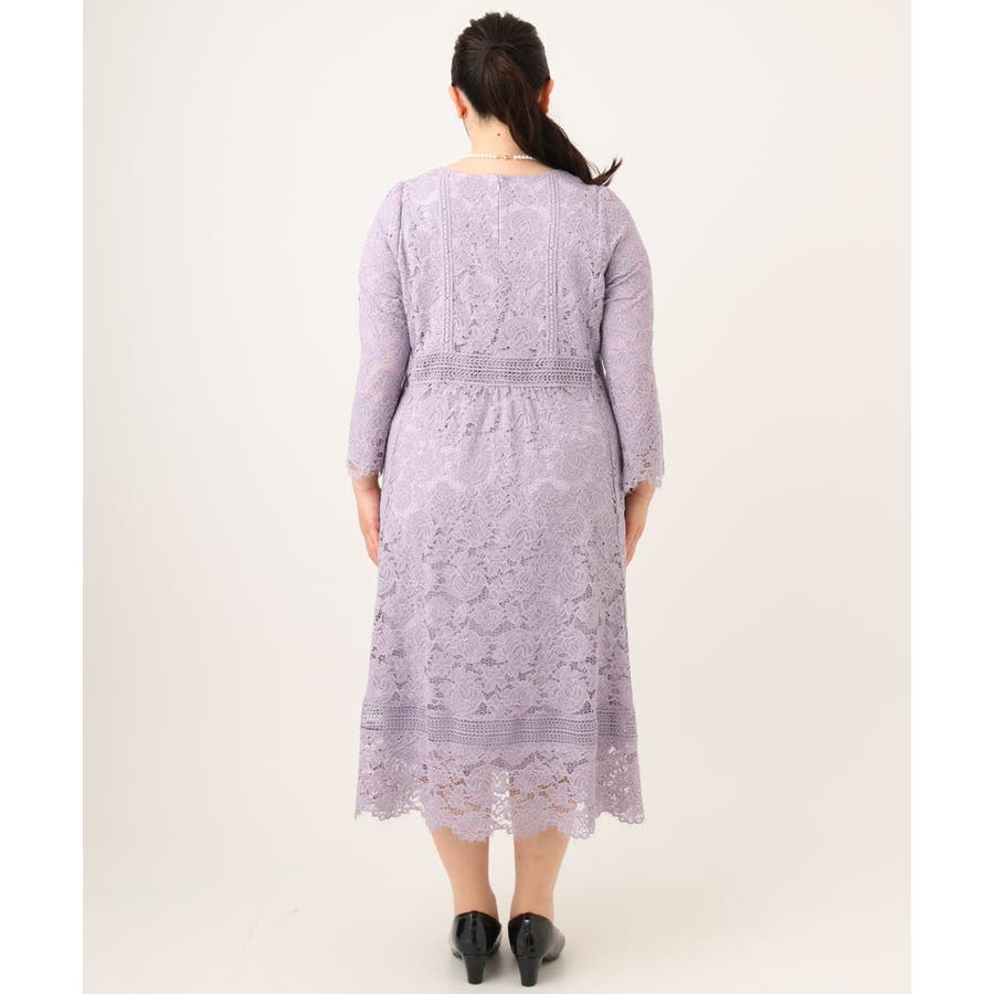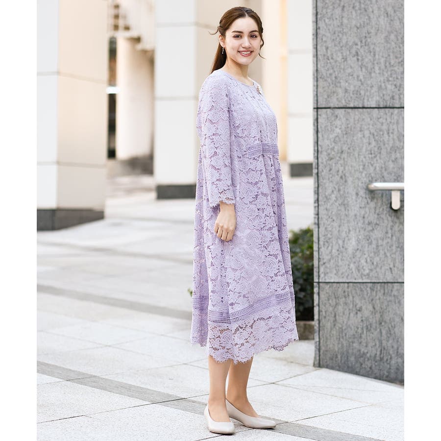 緩やかなイレヘムが大人かわいいレースのオケージョンドレス。