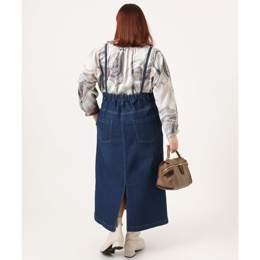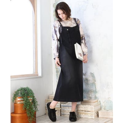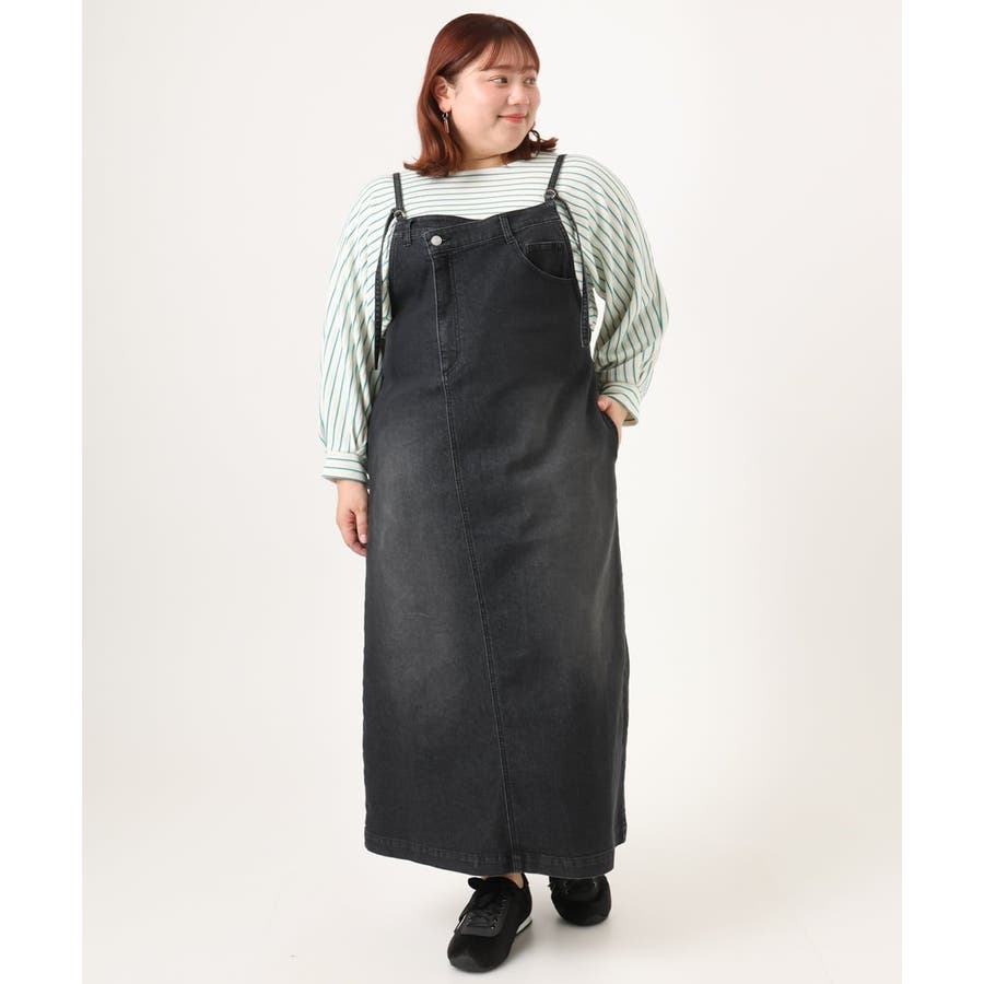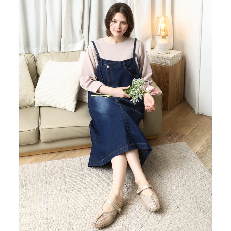 リメイク風ディテールが目を引く、カジュアルなキャミドレタイプのデニムジャンパースカート。