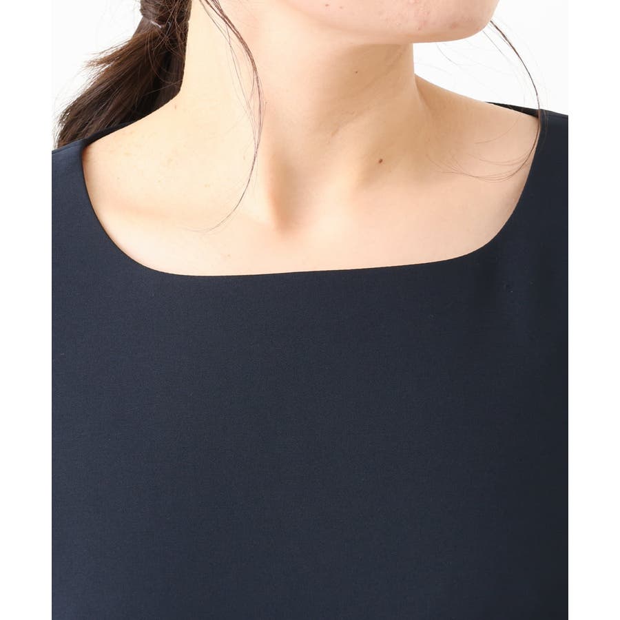 ジャケットと合わせてもすっきり決まる緩やかなスクエアネックライン。