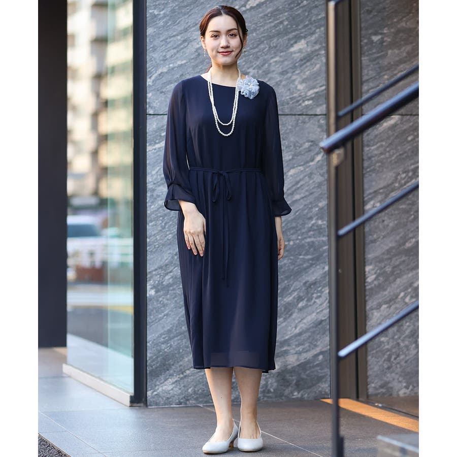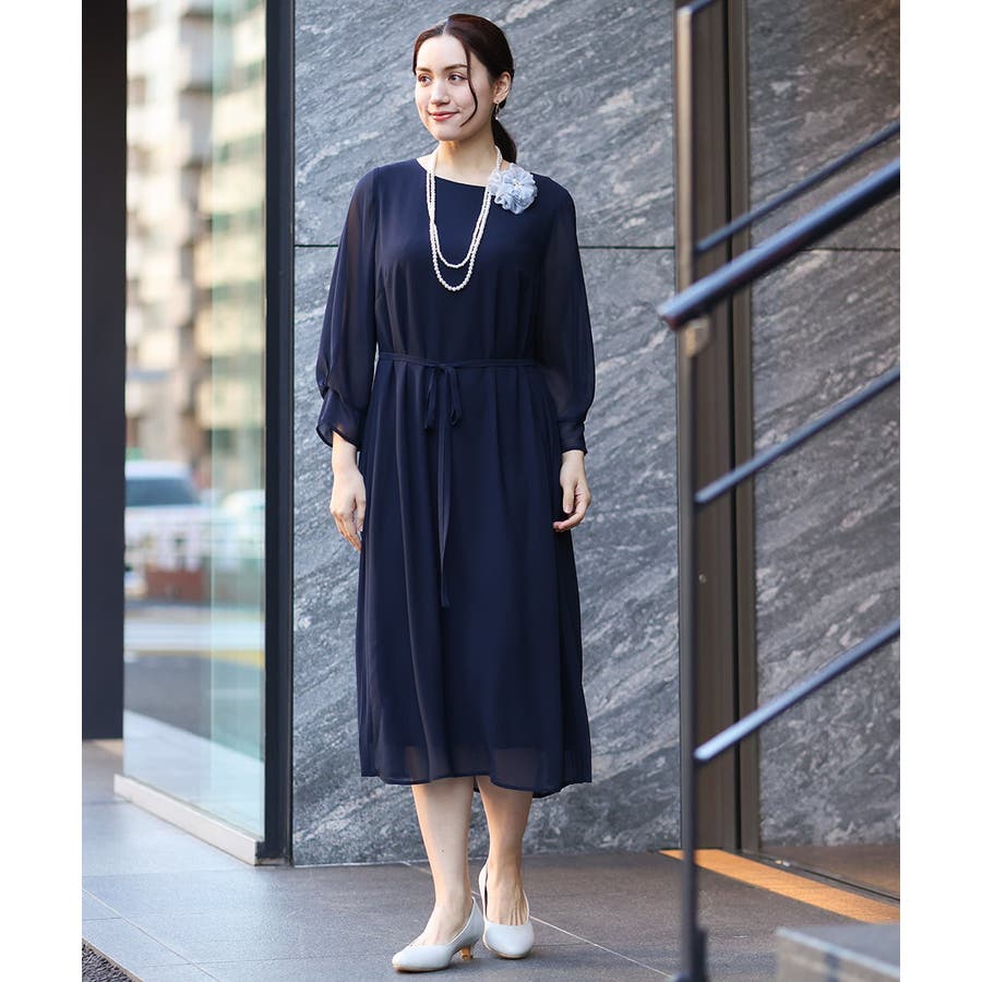 オケージョンシーンから、お呼ばれ、通期まで幅広く活躍する上品な雰囲気のジョーゼットドレスです。