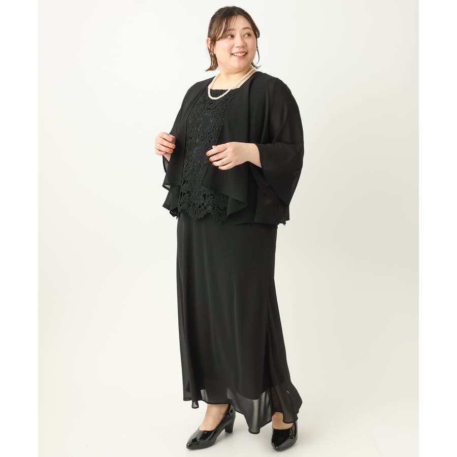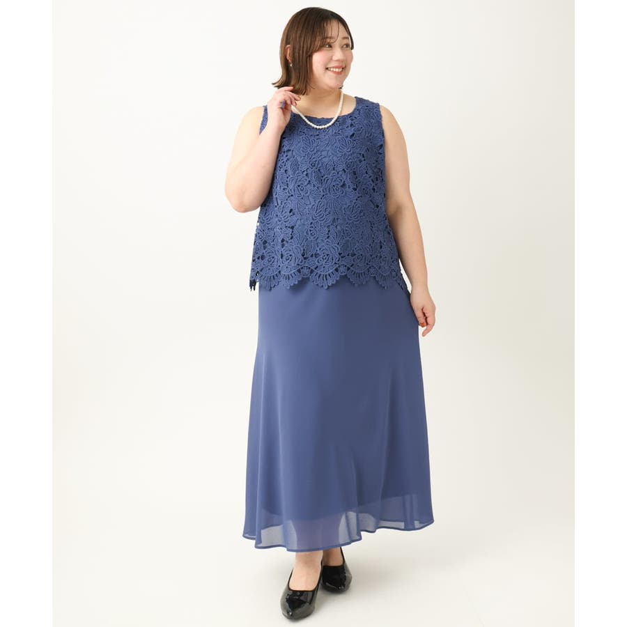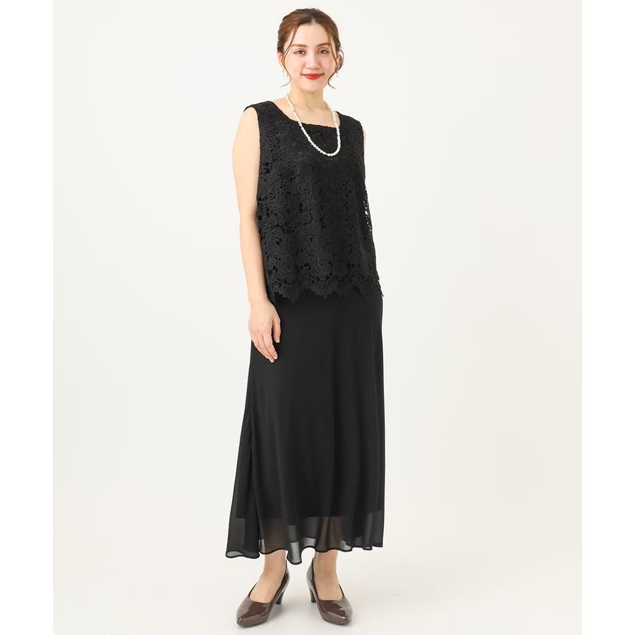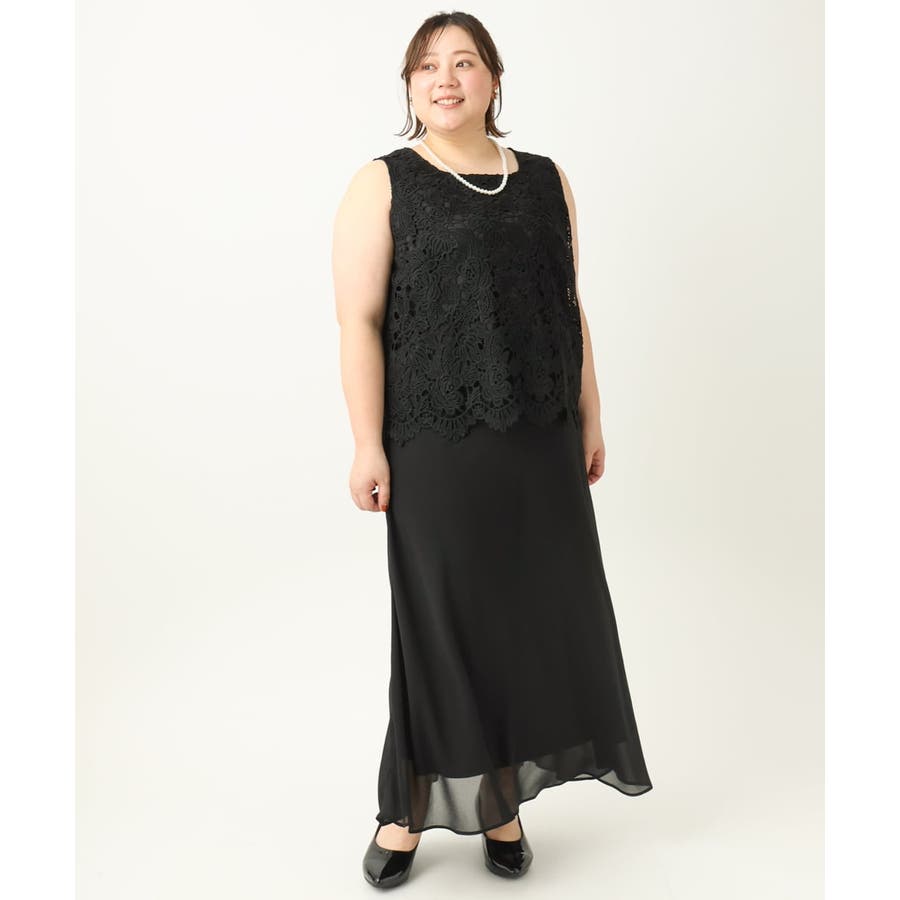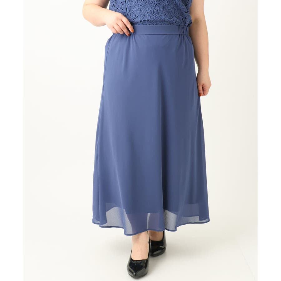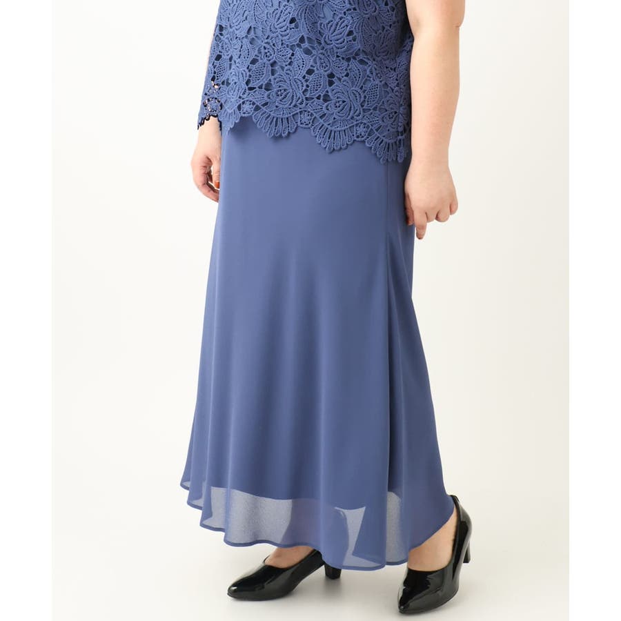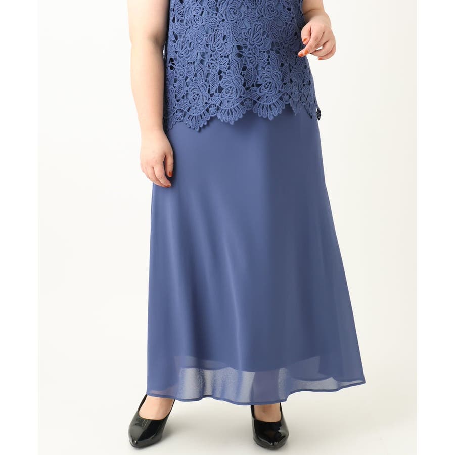 【大きいサイズ】レースブラウス×ジョーゼットスカートセットアップ