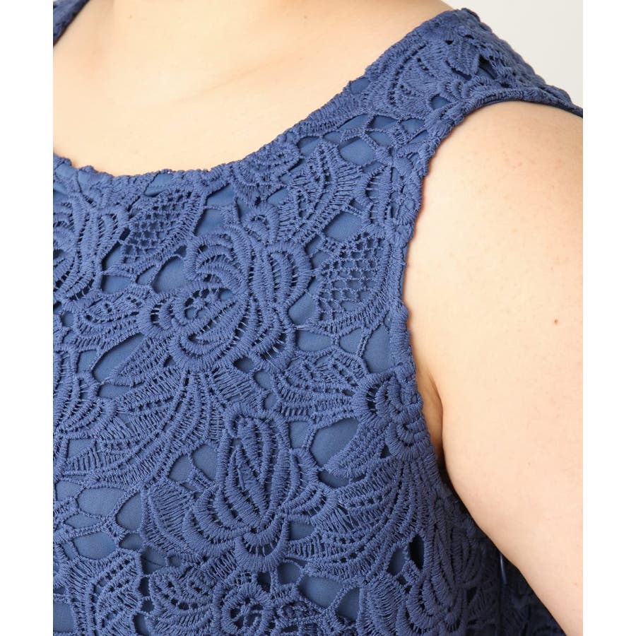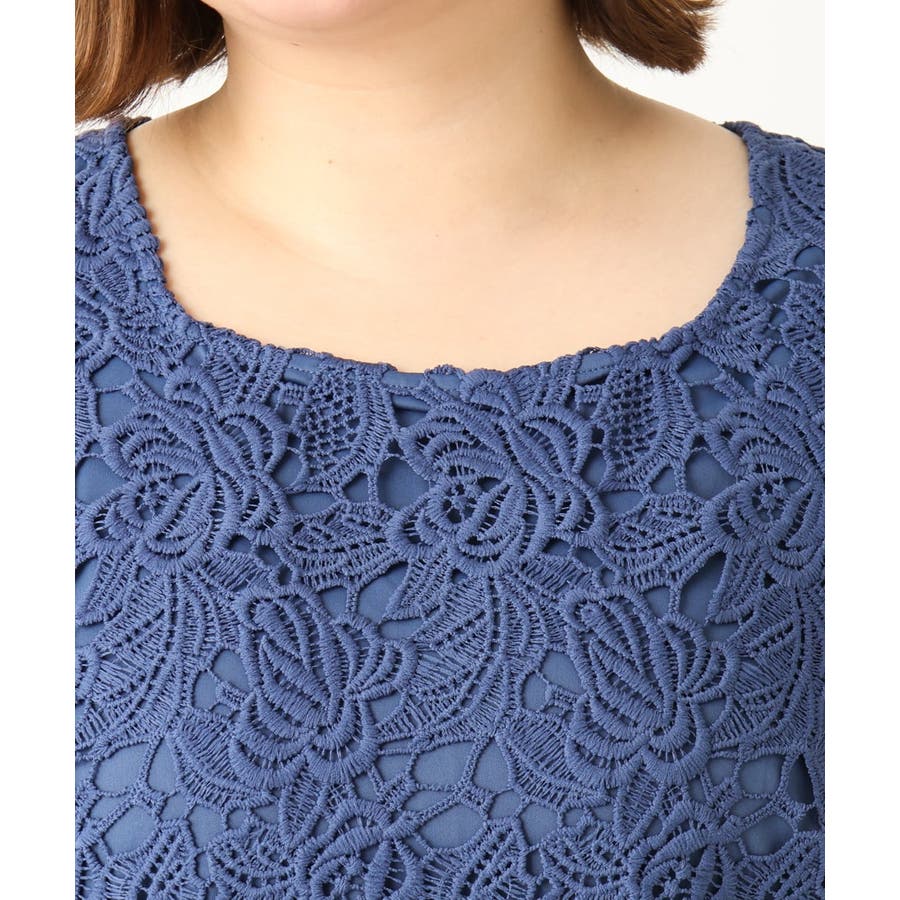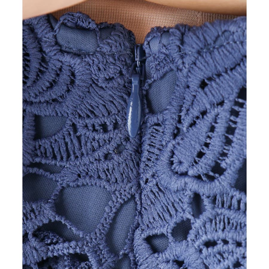 繊細で凹凸のある刺繍のケミカルレースと、程よい透け感の落ち感のきれいなポリエステルジョーゼット生地を使用しています。