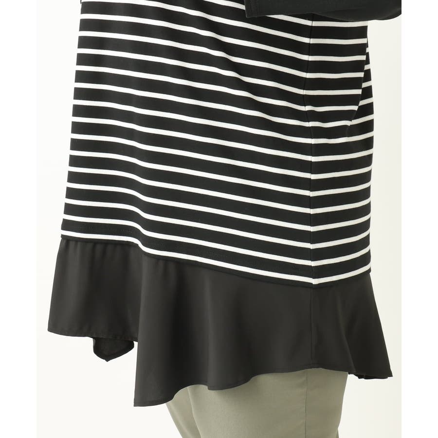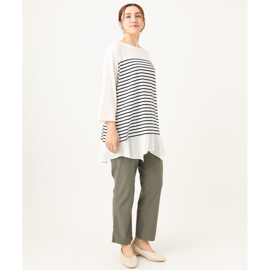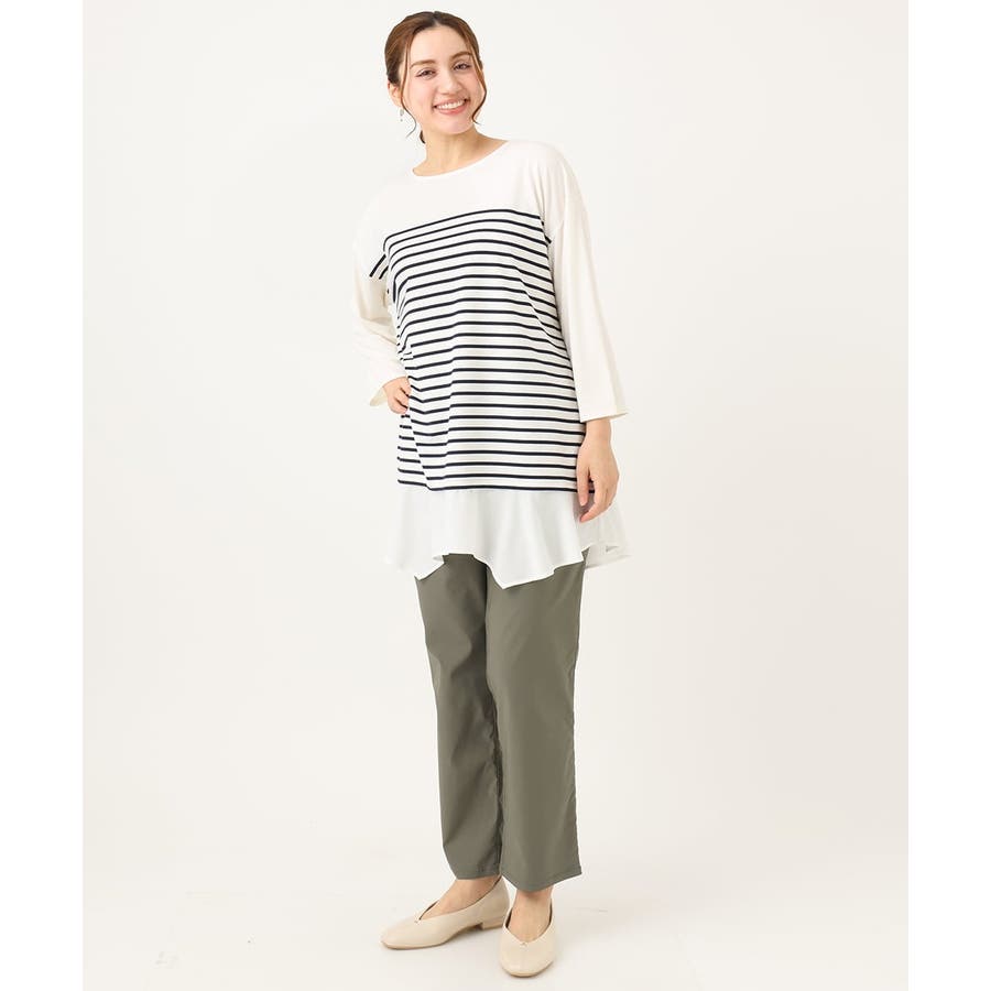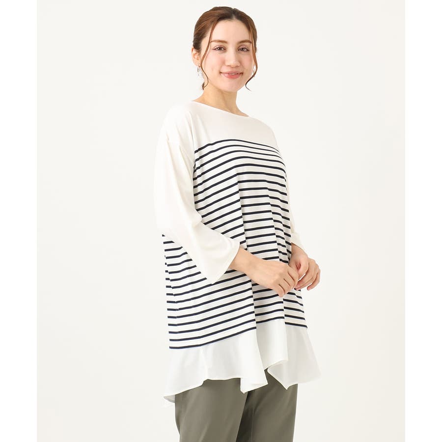 重ね着風の裾のフレアがかわいいパネルボーダーチュニック。