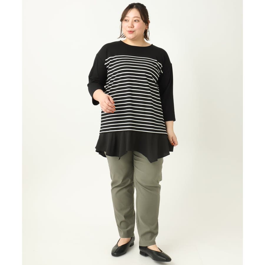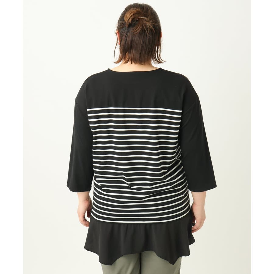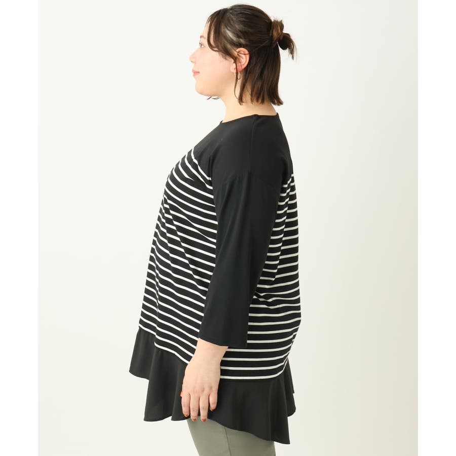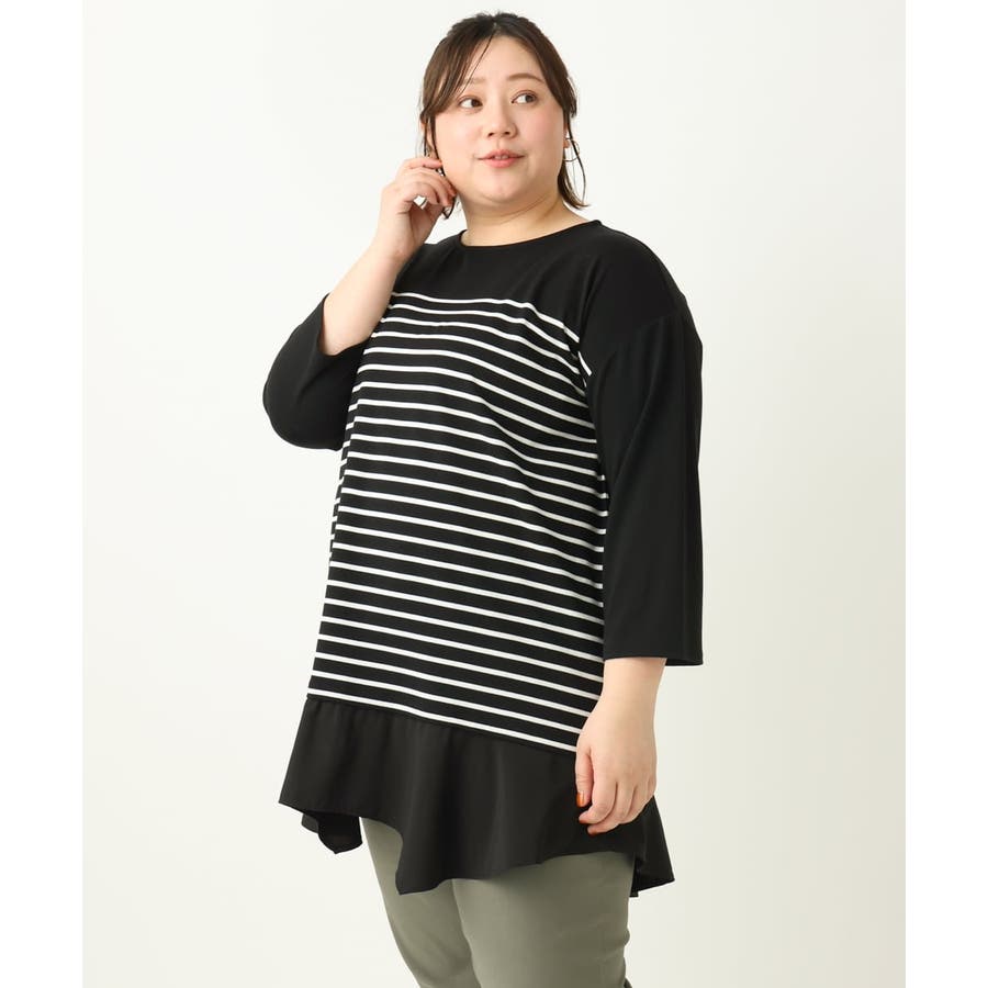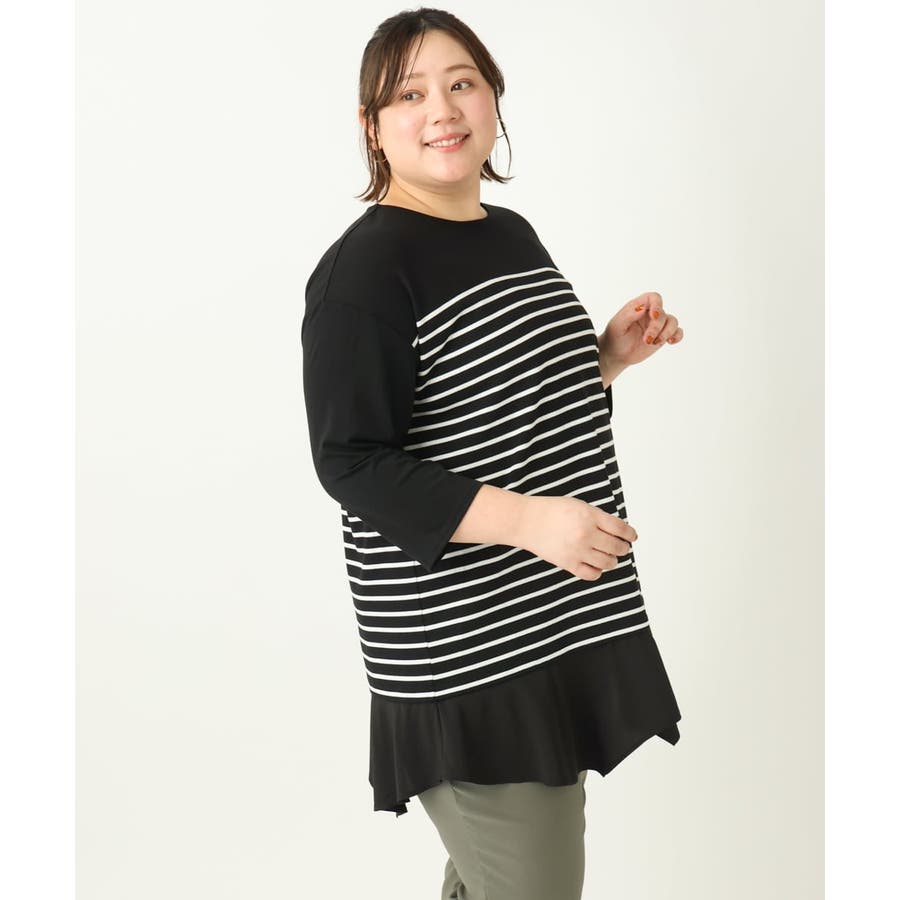 重ね着風の裾のフレアがかわいいパネルボーダーチュニック。