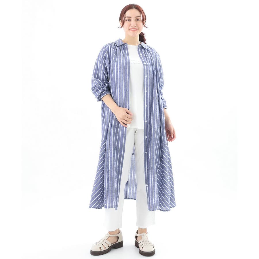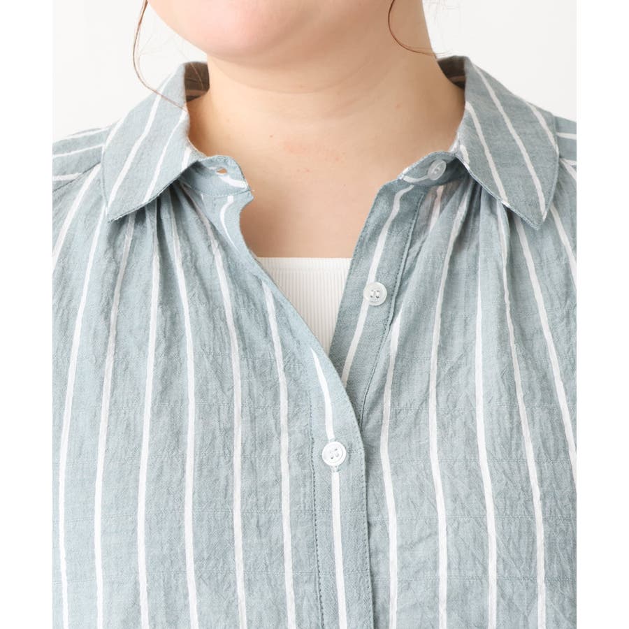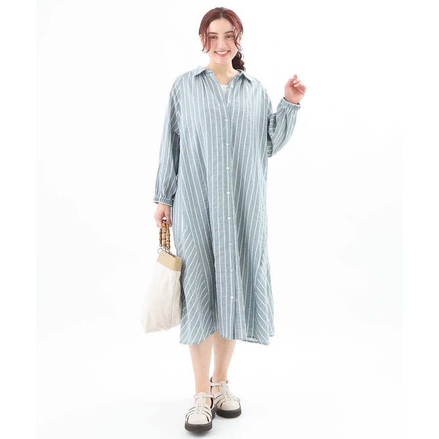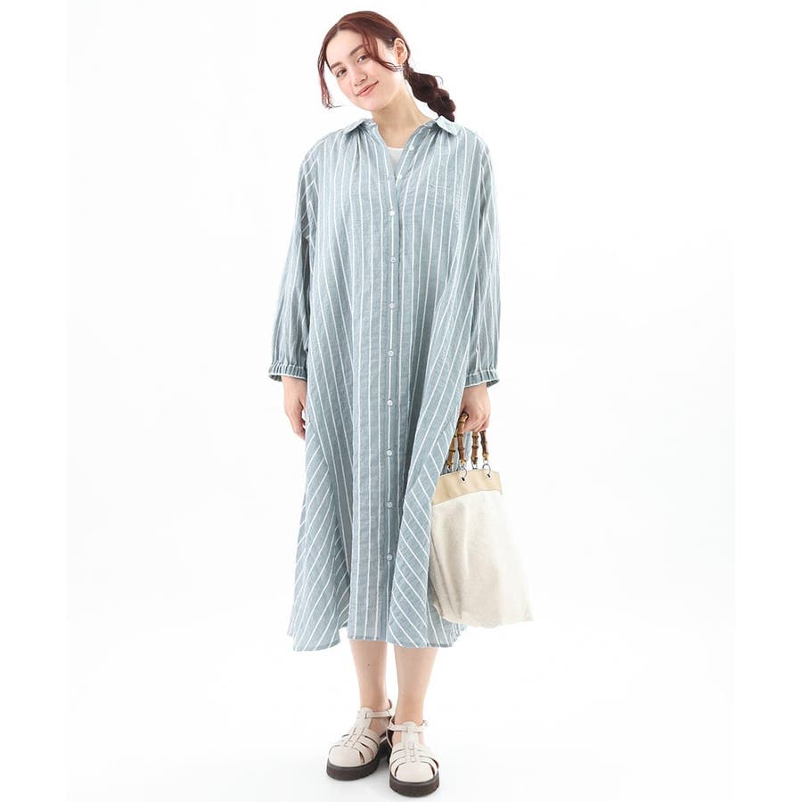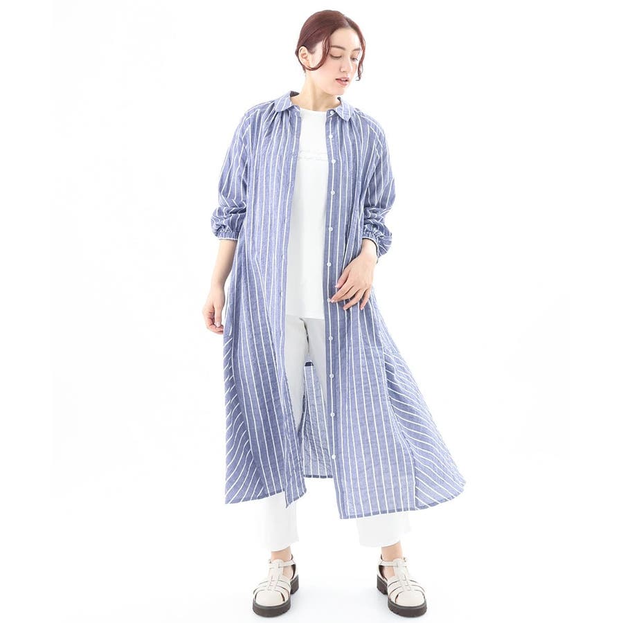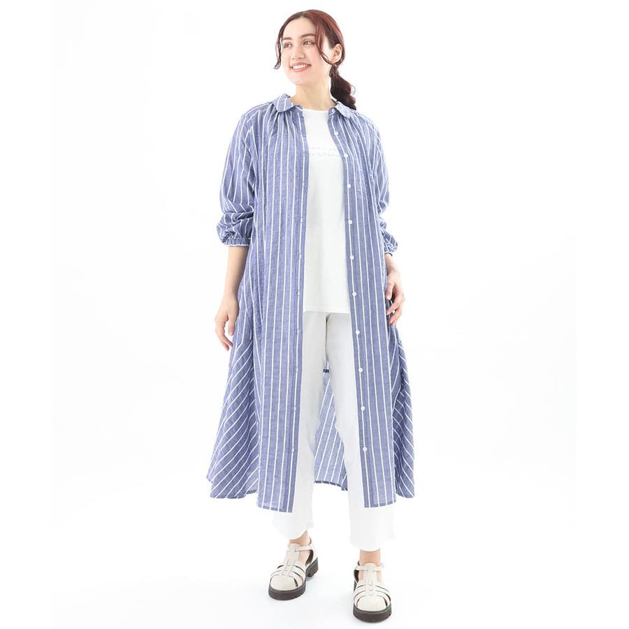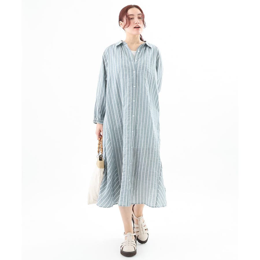 シャーリングが程よくカジュアルなコットンシャツワンピース。