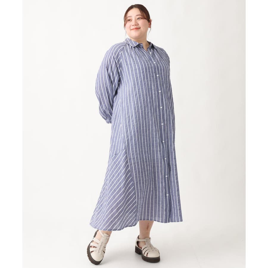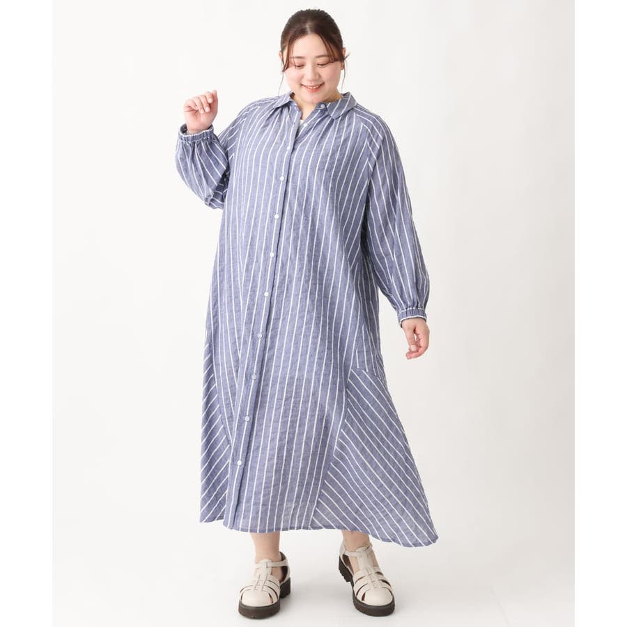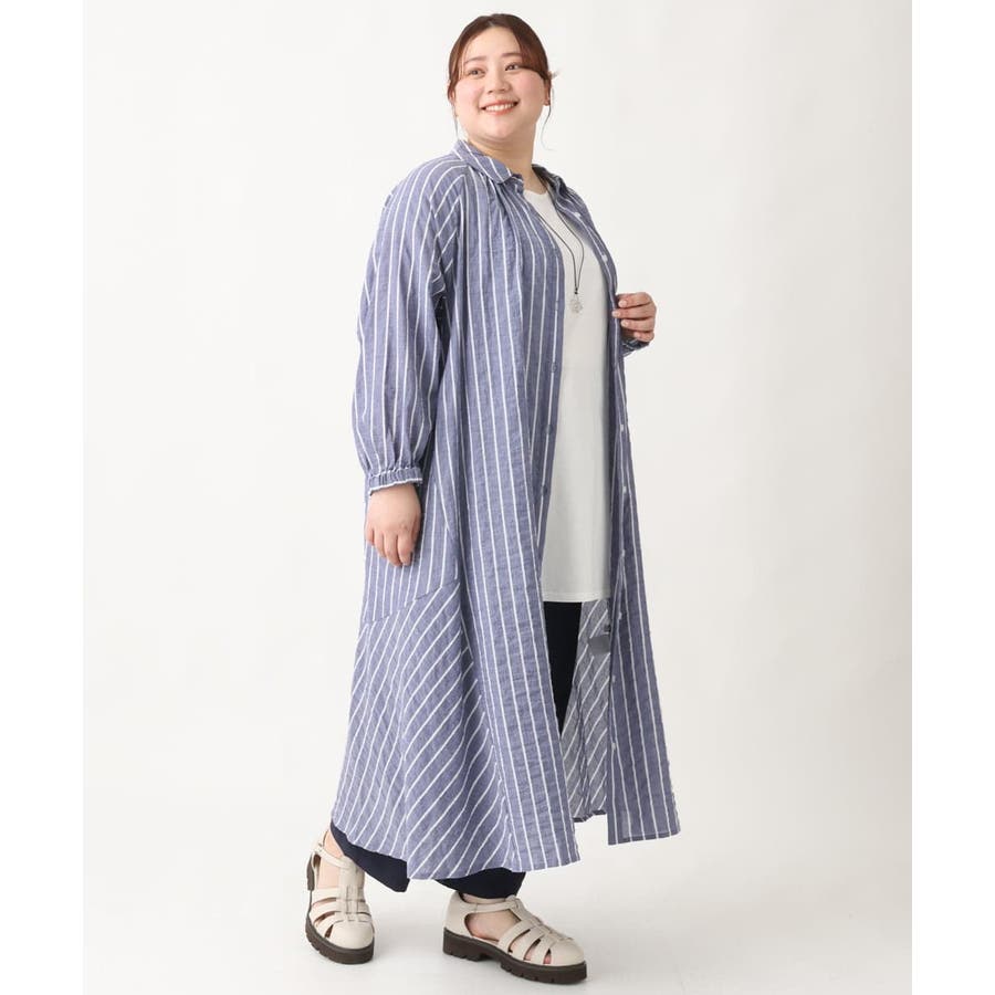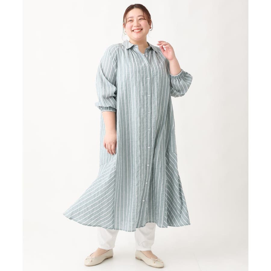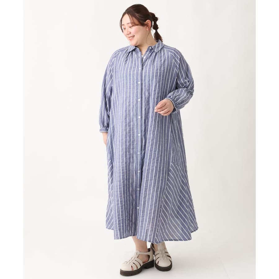 【大きいサイズ】シャーリングコットンワンピース
