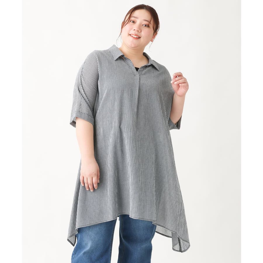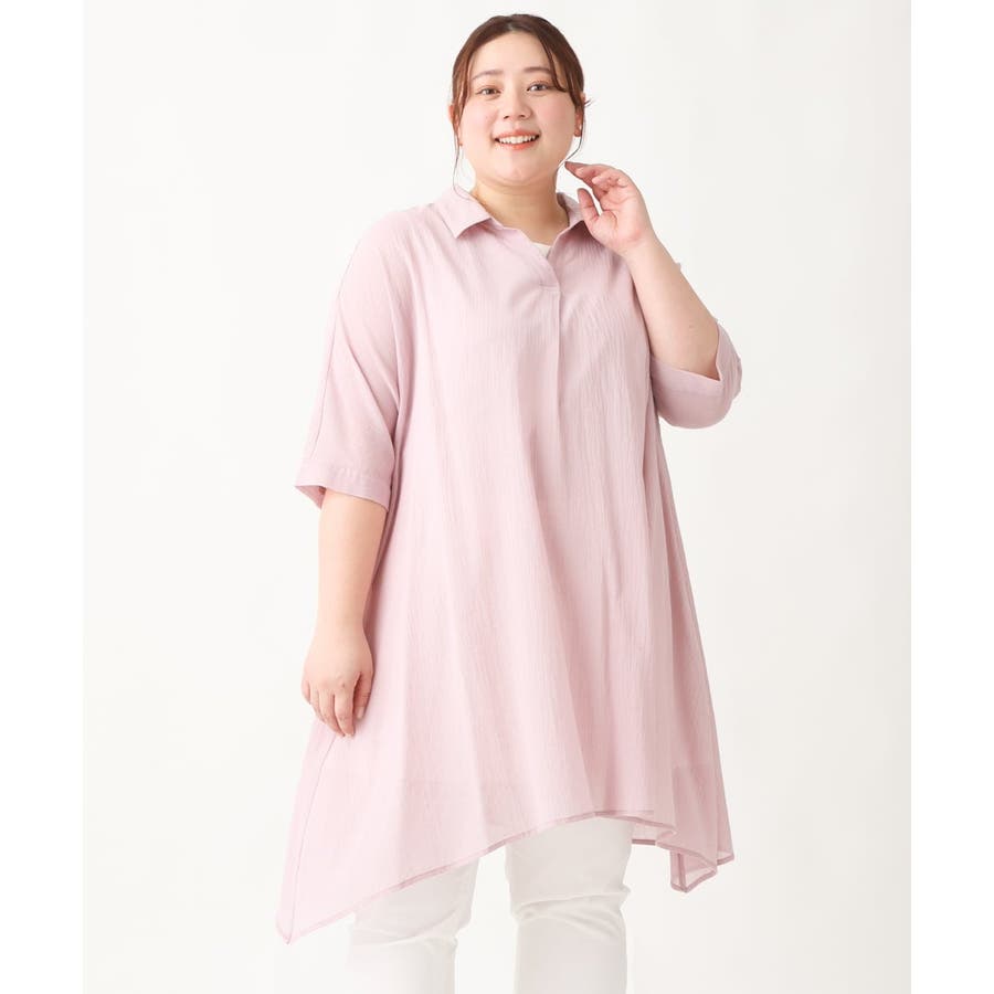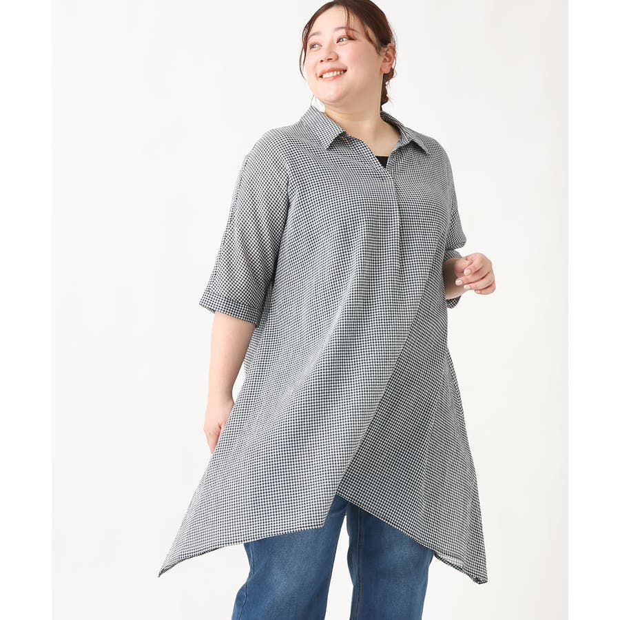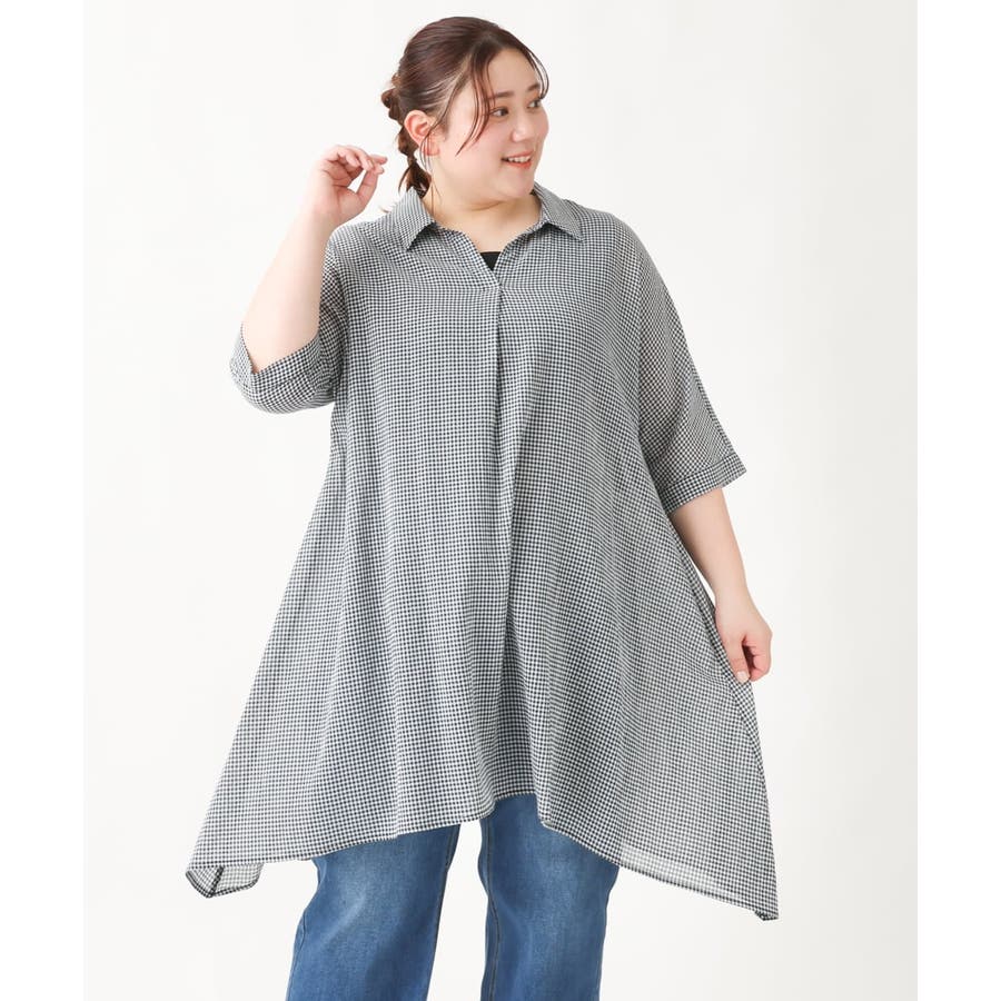 【大きいサイズ】コットンイレヘムシャツチュニック