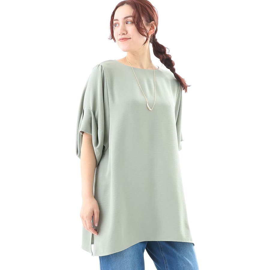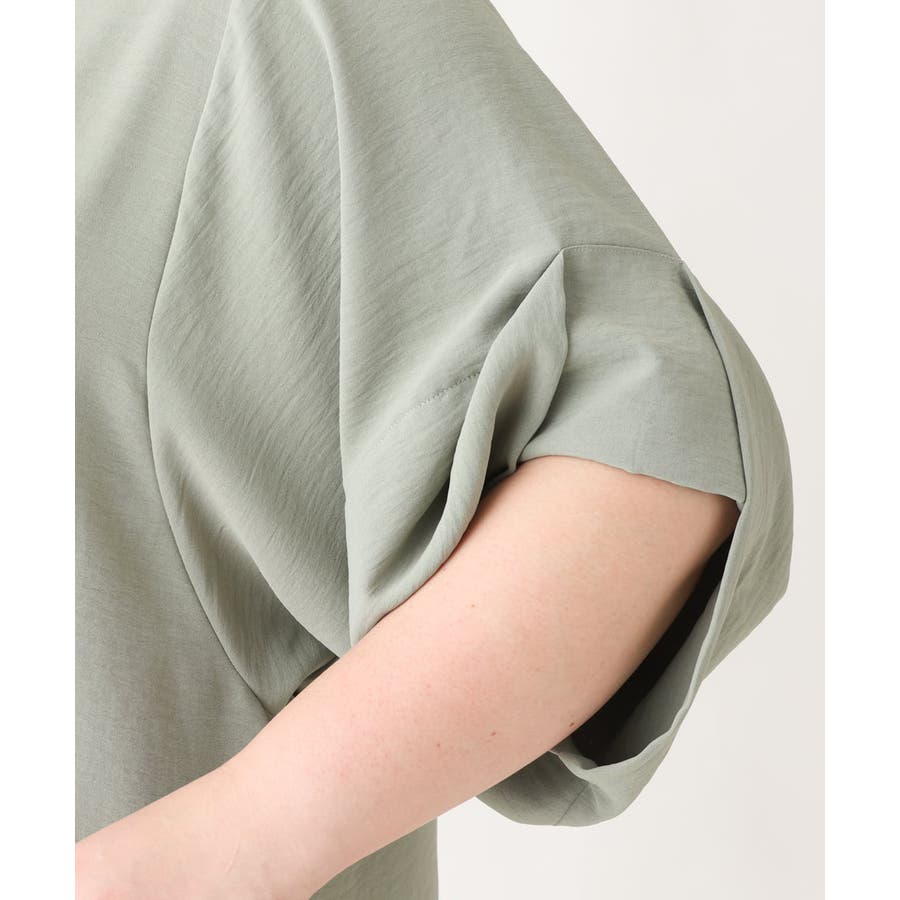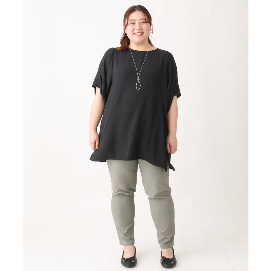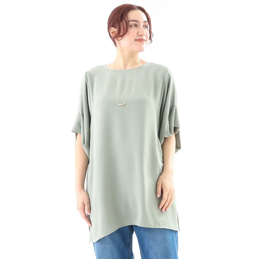 【カーキ(36)】【大きいサイズ】ワイドスリーブチュニック