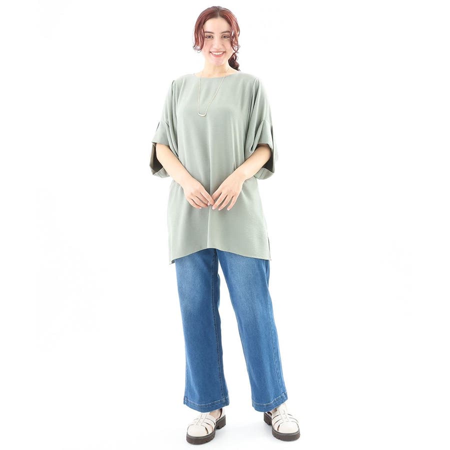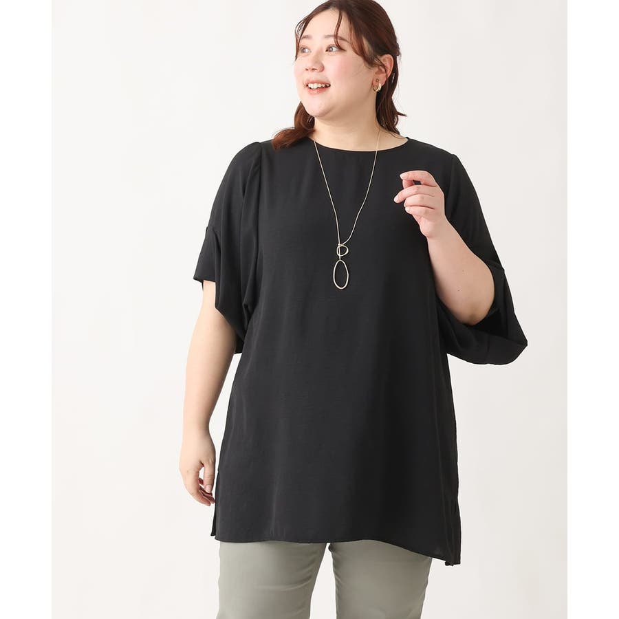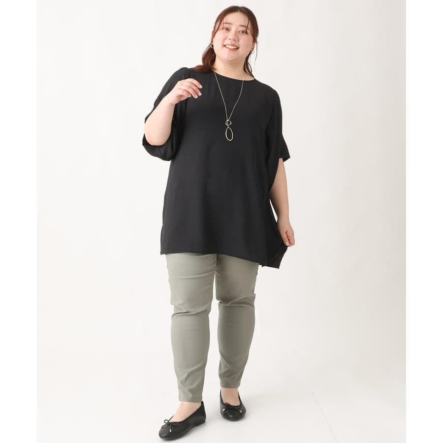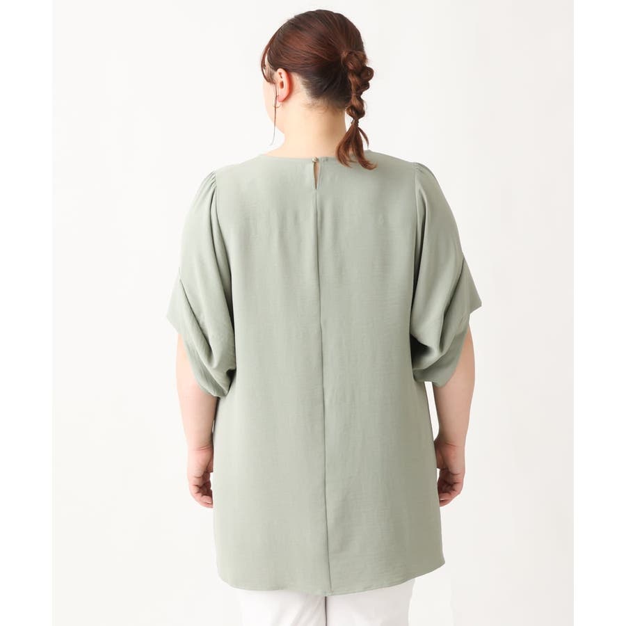 【カーキ(36)】【大きいサイズ】ワイドスリーブチュニック